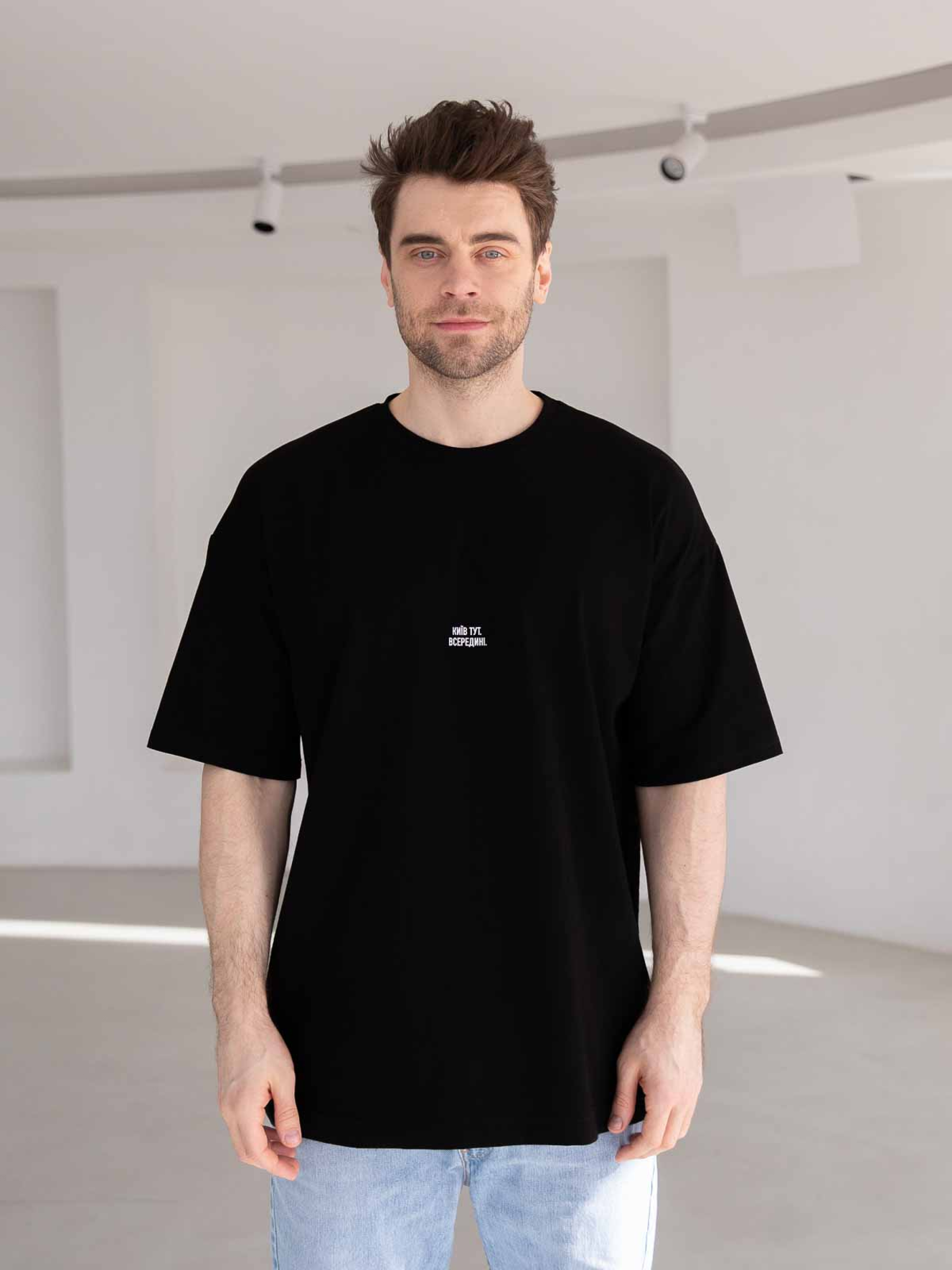 Базовая мужская футболка oversize подарит комфорт на протяжении всего года. Она позволяет коже дышать и очень приятна на ощупь. На футболку нанесен авторский принт «Киев здесь. Внутри», выполненный термопленкой. Детали и крой: - oversize - спущенная линия плеча - удлиненная - авторский принт «Киев здесь. Внутри» Как ухаживать: - можно стирать в машине в стандартном режиме (температура - до 40°C) - не отбеливайте - не используйте искусственную сушку - лучше сушить, предварительно развесив - не используйте химчистку Материал: трикотажное полотно кулирная гладь Сезон: всесезонное Состав: 95% хлопок 5% эластан Рост модели: 182 Параметры модели: 98-86-105 Размер изделия на модели: M/L Замеры изделия Ширина по груди S/M(46-48) - 61см, M/L(48-50) - 65см, XL/XXL(52-54) - 69см; Длина рукава+ширина плеча - S/M(46-48) - 45,5см, M/L(48-50) - 47см, XL/XXL(52-54) - 49,5см; Длина изделия по переду S/M(46-48) - 79см, M/L(48-50) - 82см, XL/XXL(52-54) - 86см;
