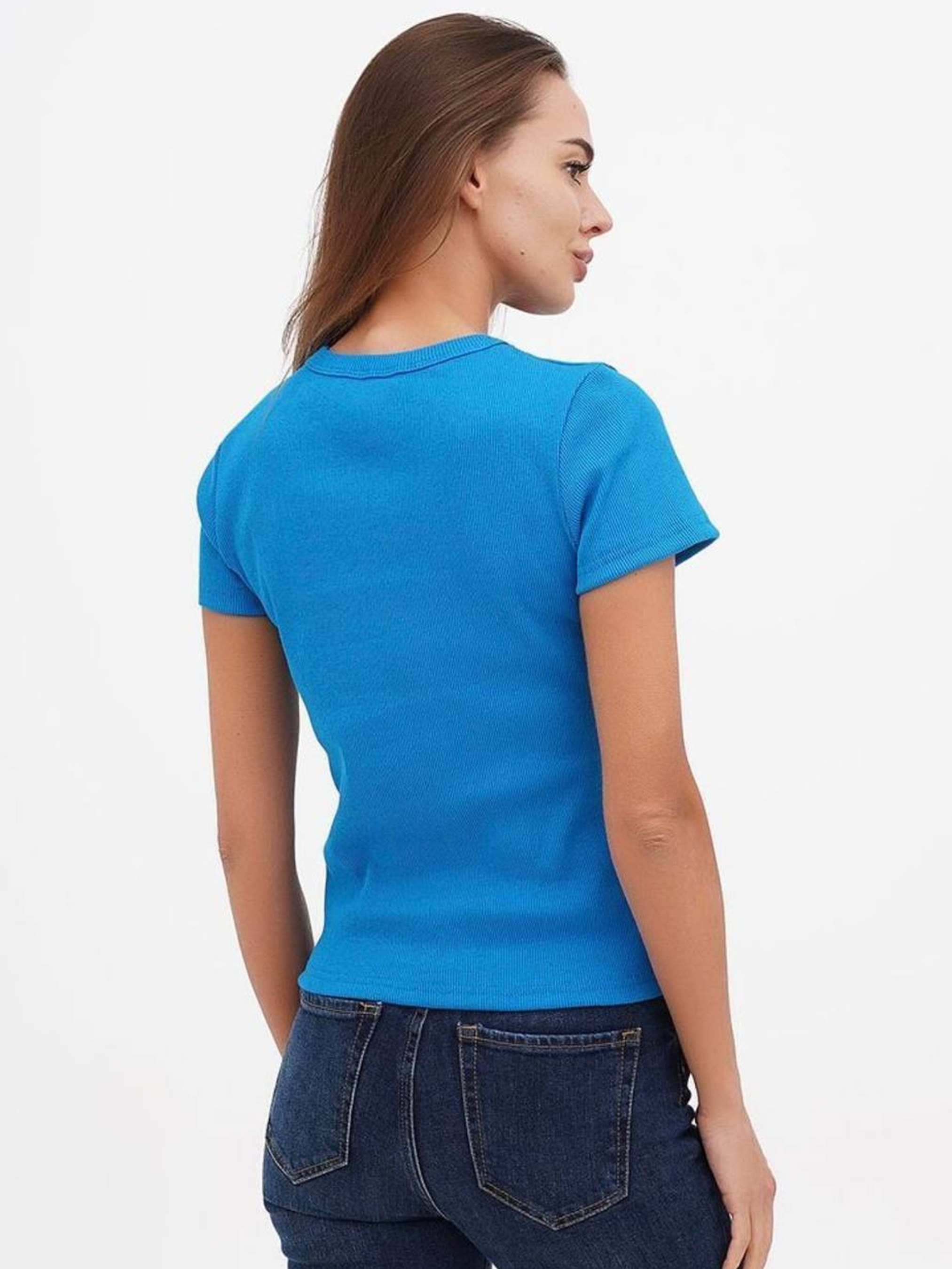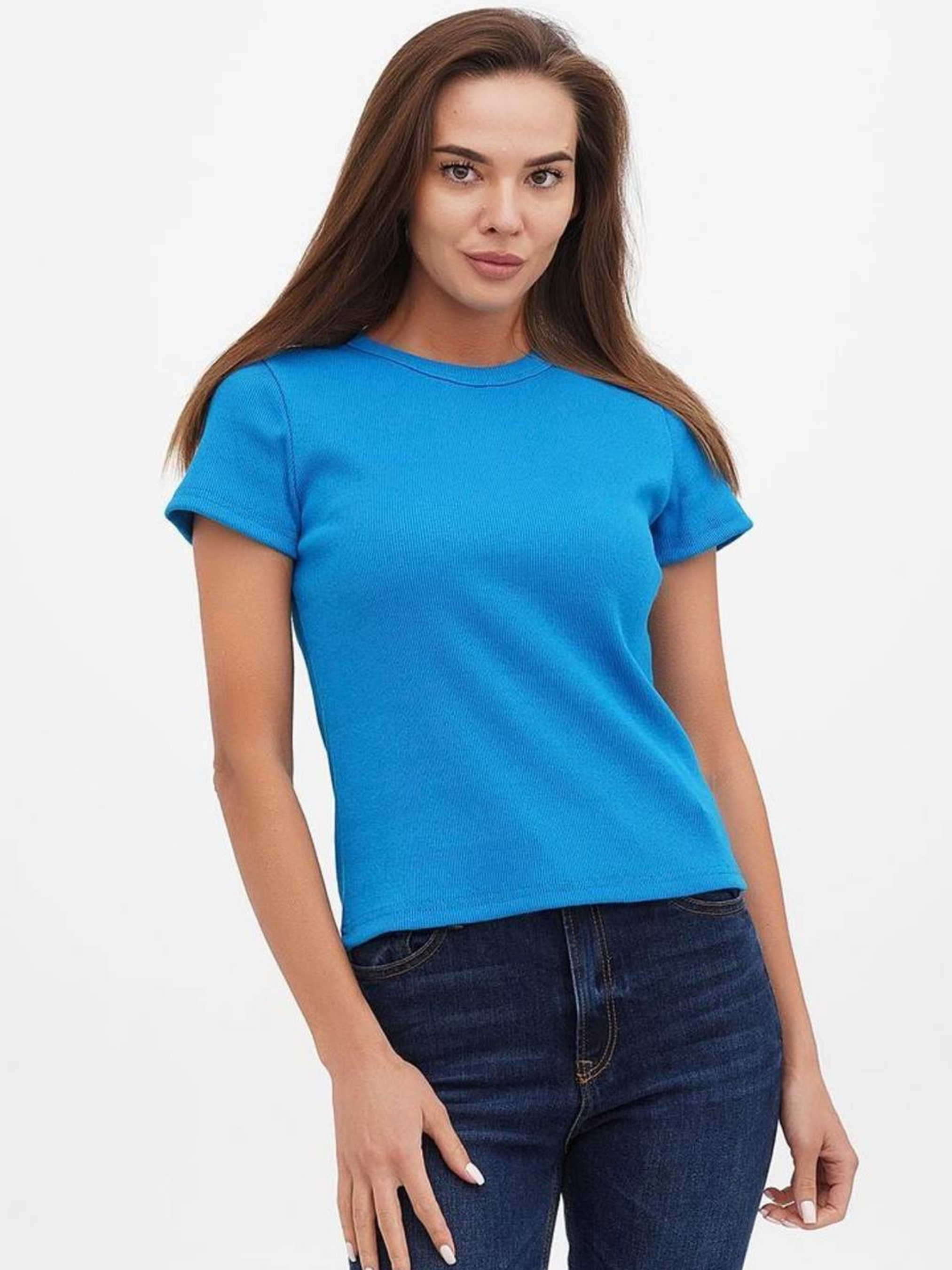Футболка женская базовая "рубчик" бирюзовый модель Wm298