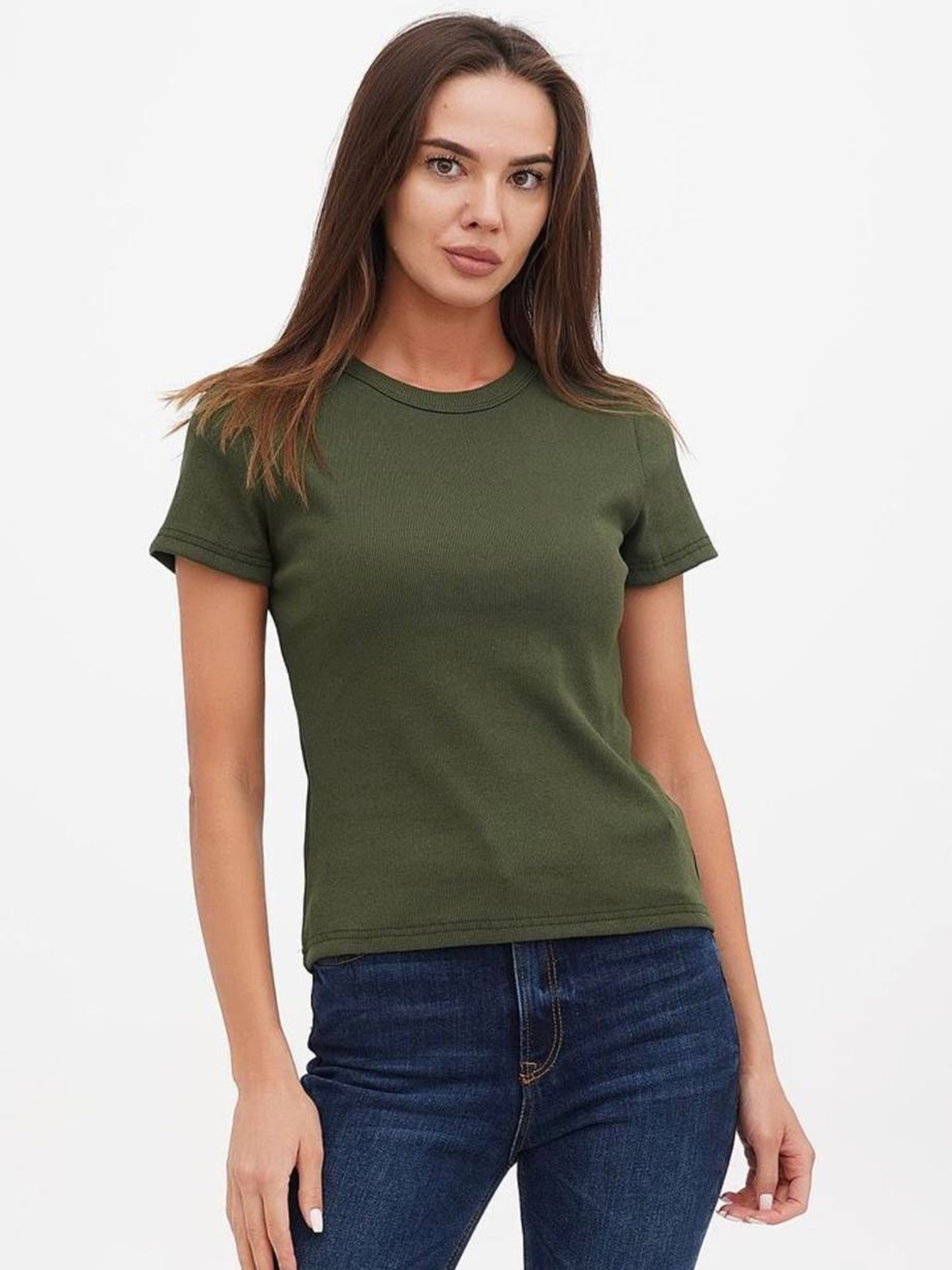 Футболка женская базовая "рубчик" олива модель Wm303