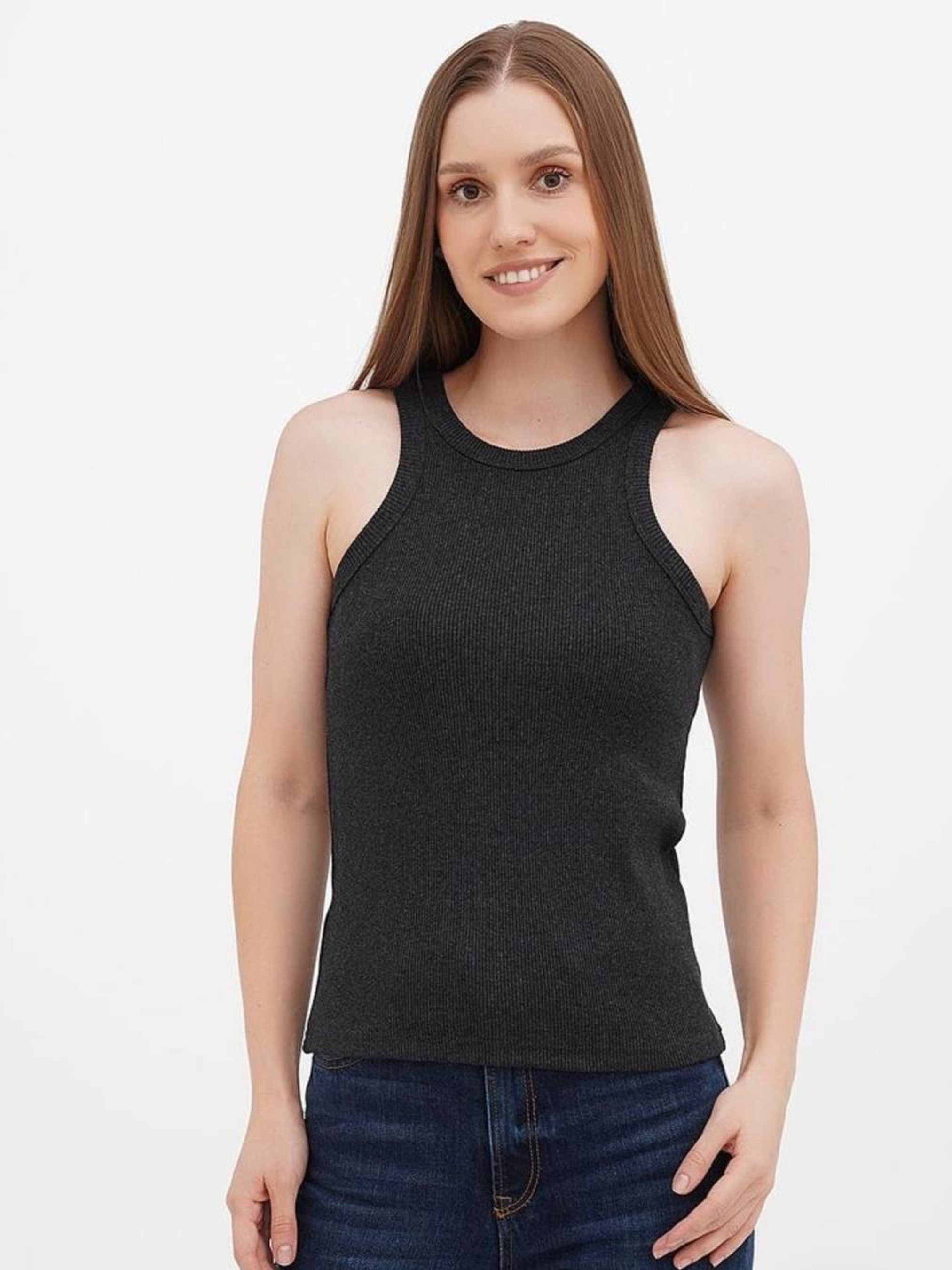Майка женская базовая "рубчик" графит модель Wm311
