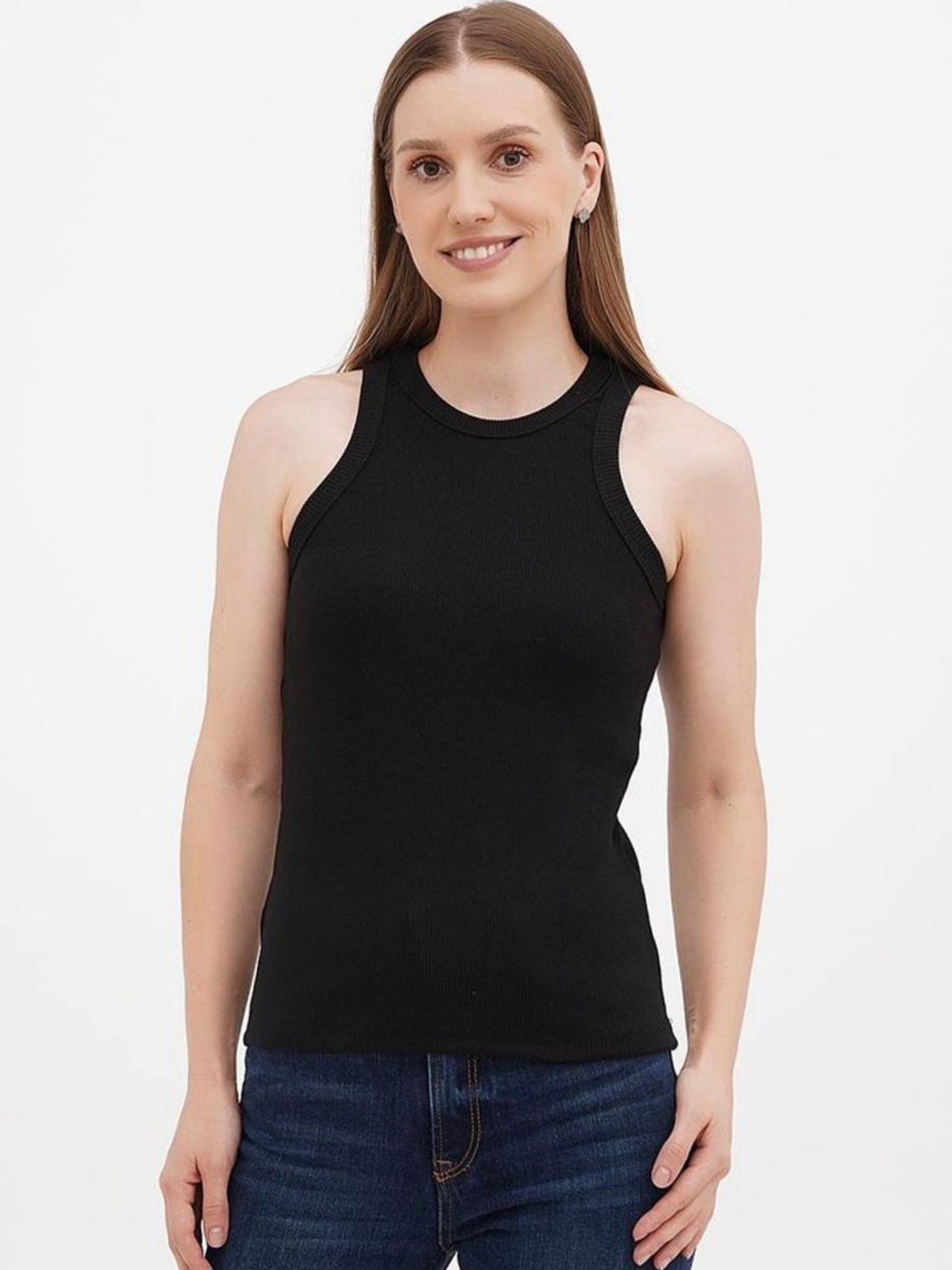 Майка женская базовая "рубчик" черная модель Wm328