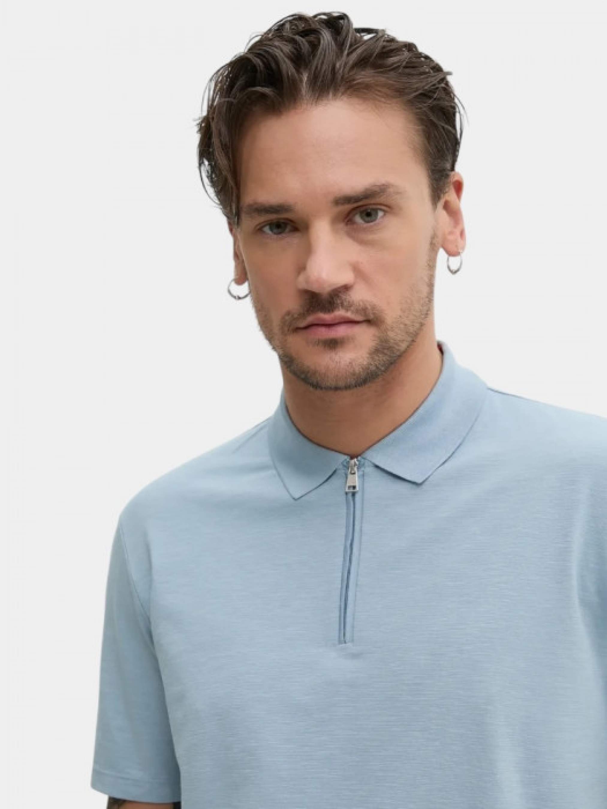 Поло от HUGO Menswear в стандартном покрое с принтованным логотипом и фактурным трикотажем. Изготовлено из дышащей хлопковой смеси, по меньшей мере на 60% из хлопка, выращенного по принципам регенеративного земледелия, способствующего сохранению природной среды, улучшению качества почвы и воды и поддержанию биоразнообразия. Оснащен воротником с плоской вязкой, короткими рукавами без манжет, застежкой на молнию и имеет стандартную длину. Рост модели: 188 см, на модели размер М.М.