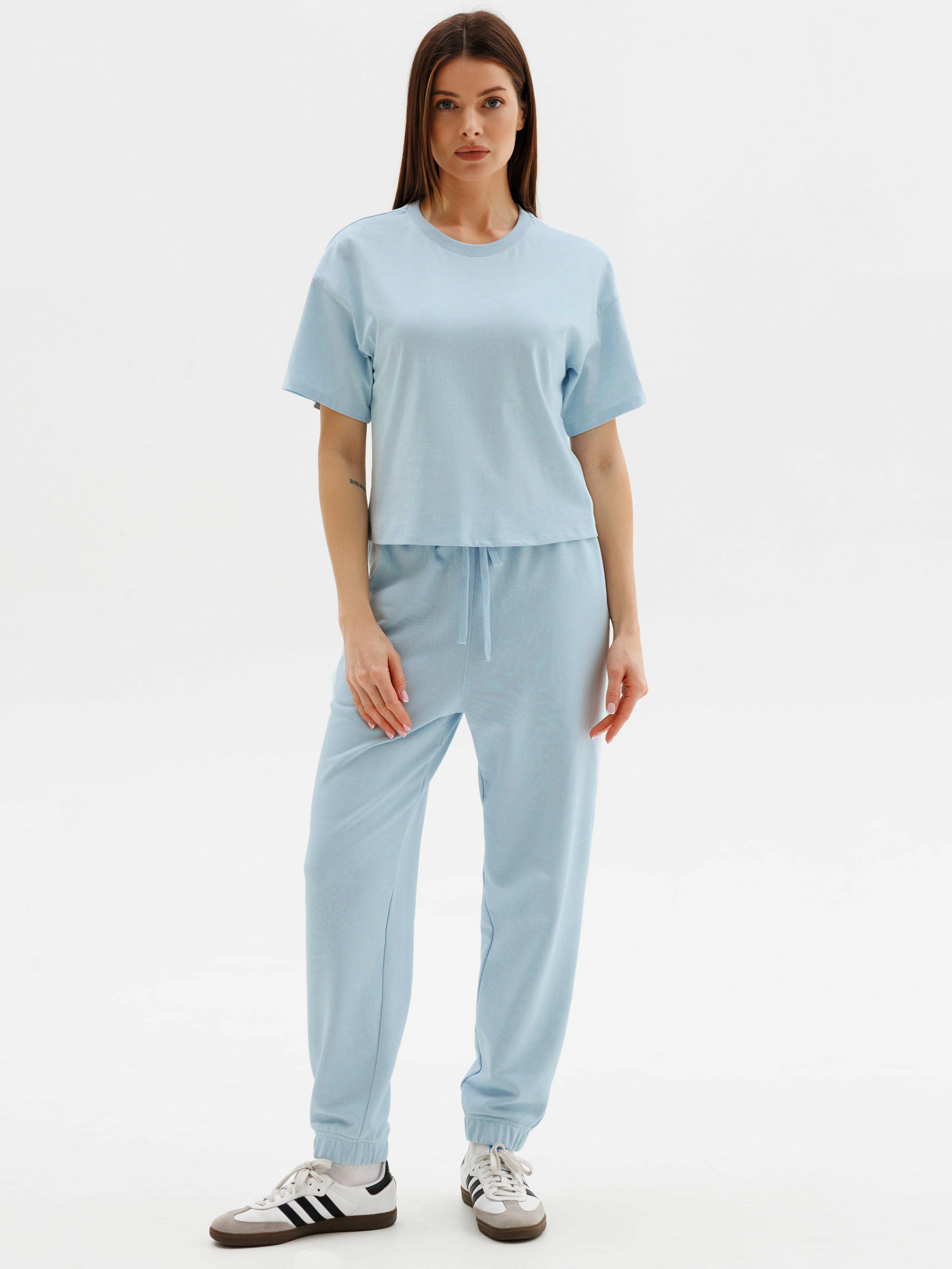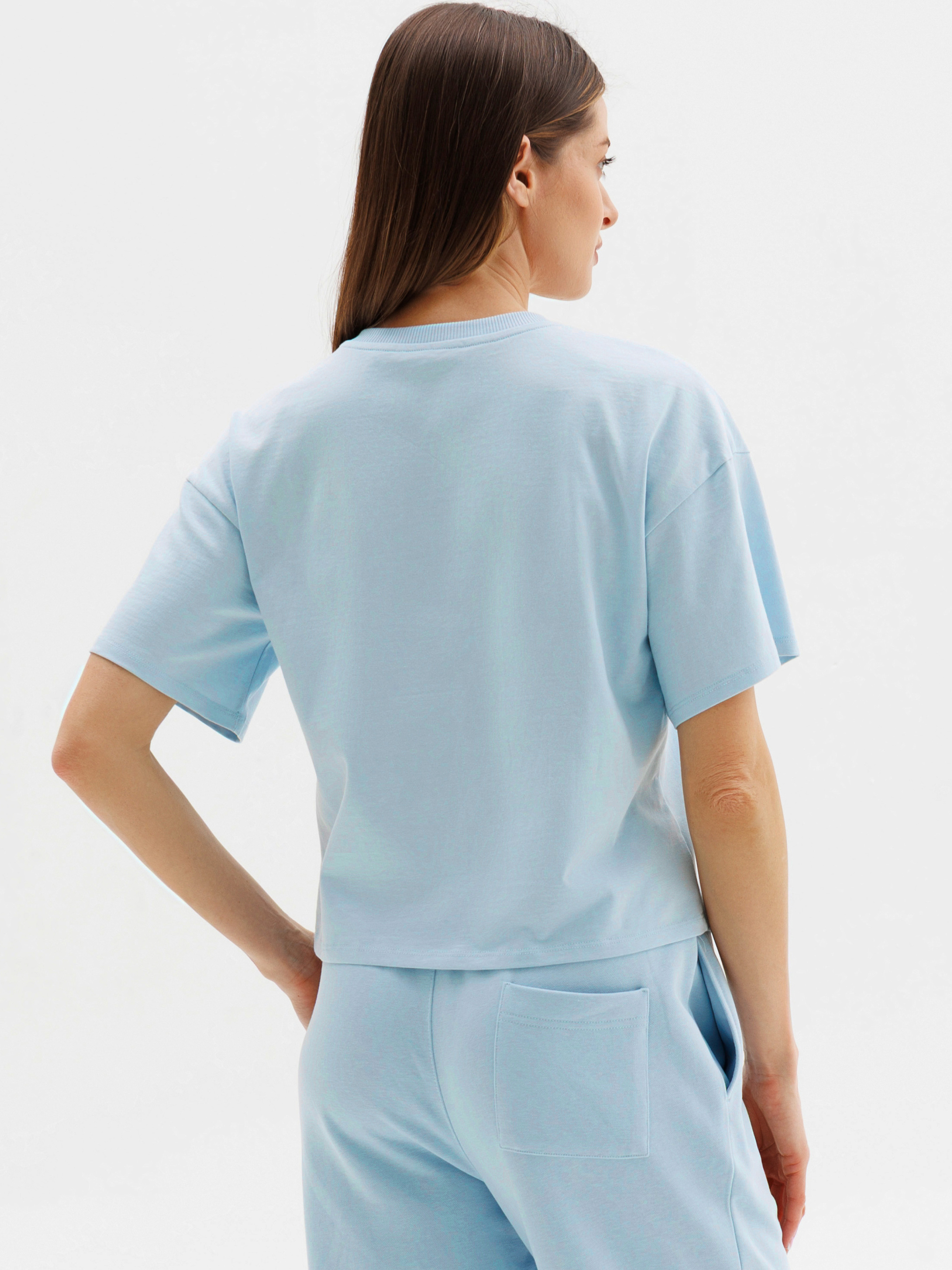 100% cotton. Універсальна базова модель у сучасному дизайні та привабливих кольорах: ніжно-блакитний, класичний молочний, яскравий салатовий та стильний синій. Завдяки натуральній тканині ця жіноча футболка дарує приємні тактильні відчуття та забезпечує комфорт упродовж усього дня. Модель має вільний, лаконічний крій із коротким рукавом і класичну горловину - ідеально для повсякденних образів. Футболка чудово підходить для дому, прогулянок, активного відпочинку чи занять спортом, легко комбінується з будь-яким одягом – шортами, штанами або джинсами. Футболка створена для жінок, які цінують комфорт та стиль у щоденному житті та бажають доповнити свій базовий гардероб дійсно універсальною та якісною річчю.