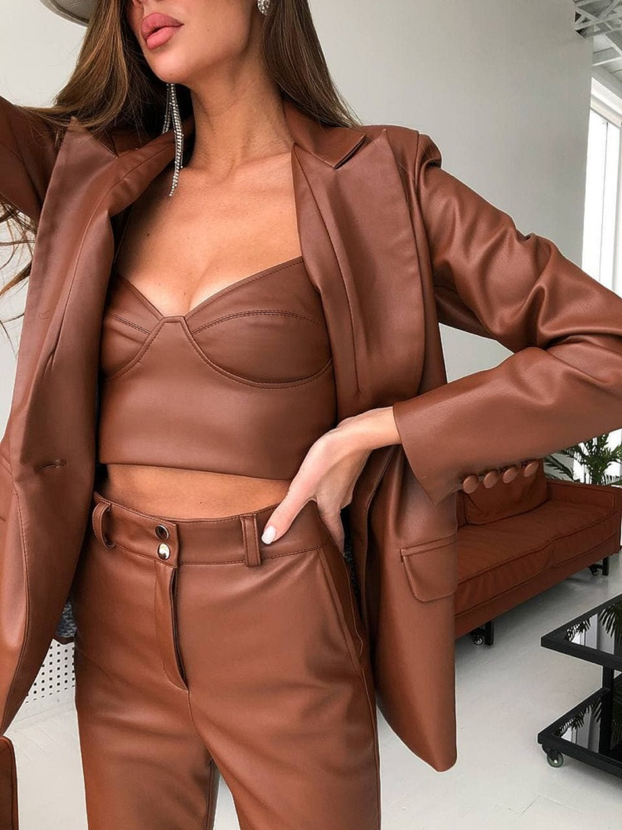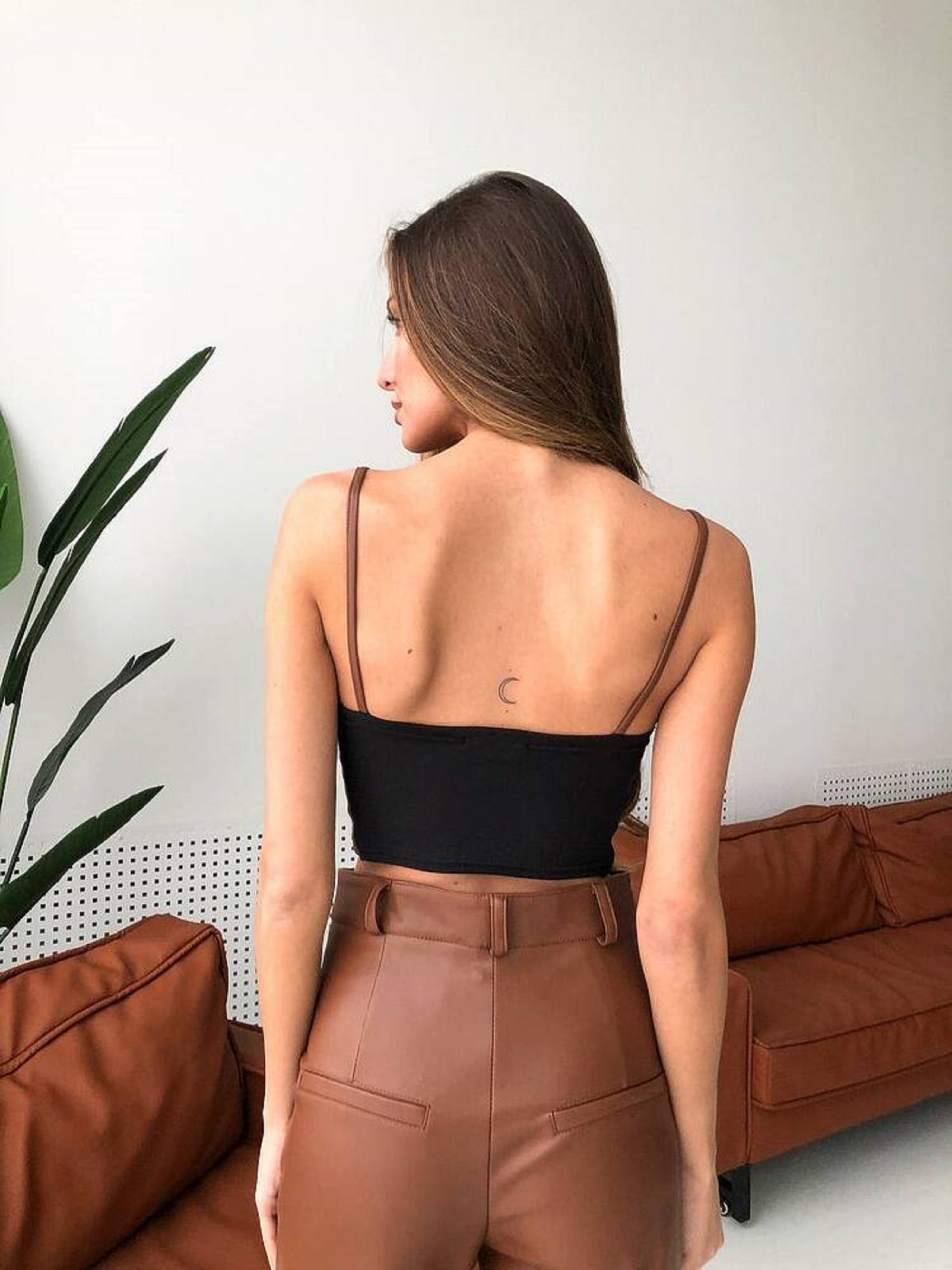 Жіночий топ з екошкіри FUROR на бретелях, Світло-коричневий Milirud (mil392) модель mil392-koricq