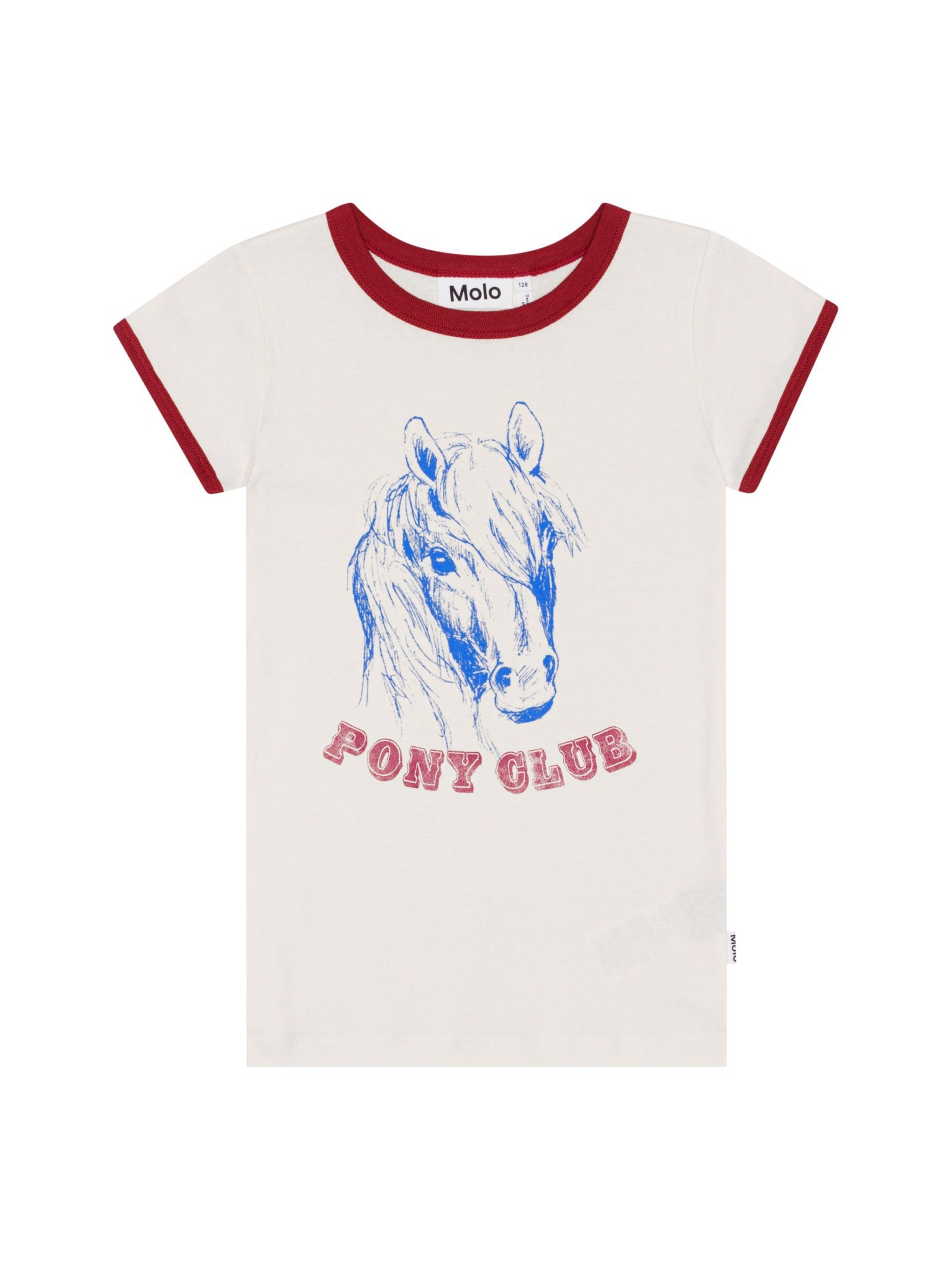 Футболка Molo "Rhiannon Pony Club". Особенности: материал – organic cotton*; бордовая тесьма на шее и рукавах гармонично сочетается с надписью "Pony Club" спереди; сертифицировано GOTS** – изготовлено из сертифицированных органических материалов. *Organic cotton (органический хлопок) – хлопок, выращиваемый без использования вредных химикатов и губительного воздействия на природные ресурсы планеты. **Сертификация GOTS гарантирует, что продукт не содержит опасных химикатов (сертификат GOTS Ecocert Greenlife, №197496). Продукция производится в соответствии с самыми строгими социальными и экологическими стандартами на протяжении всего процесса производства.