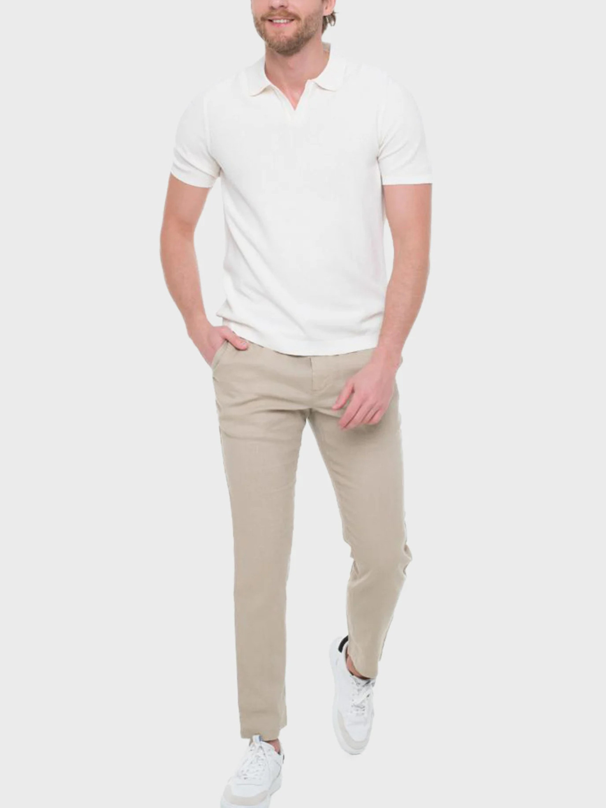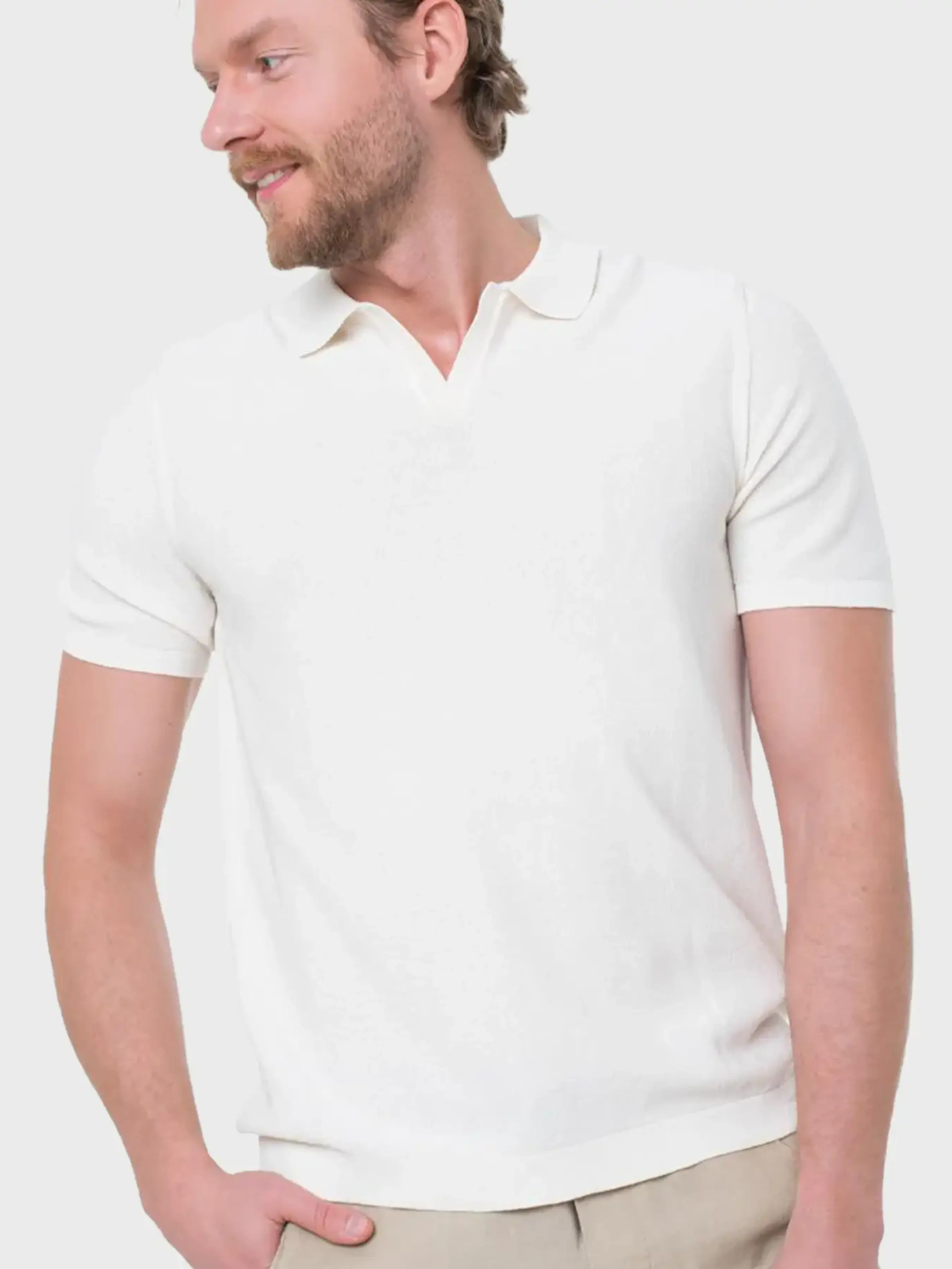 Универсальное мужское поло цвета слоновой кости — идеальный выбор для теплого сезона. Модель выполнена из 100% натурального хлопка, что обеспечивает дышащий комфорт и мягкость на каждый день. Короткий рукав и лёгкий трикотаж делают эту вещь удобной как для прогулок, так и для неформальных встреч. Отсутствие застёжек и классический отложной воротник создают минималистичный и аккуратный образ.