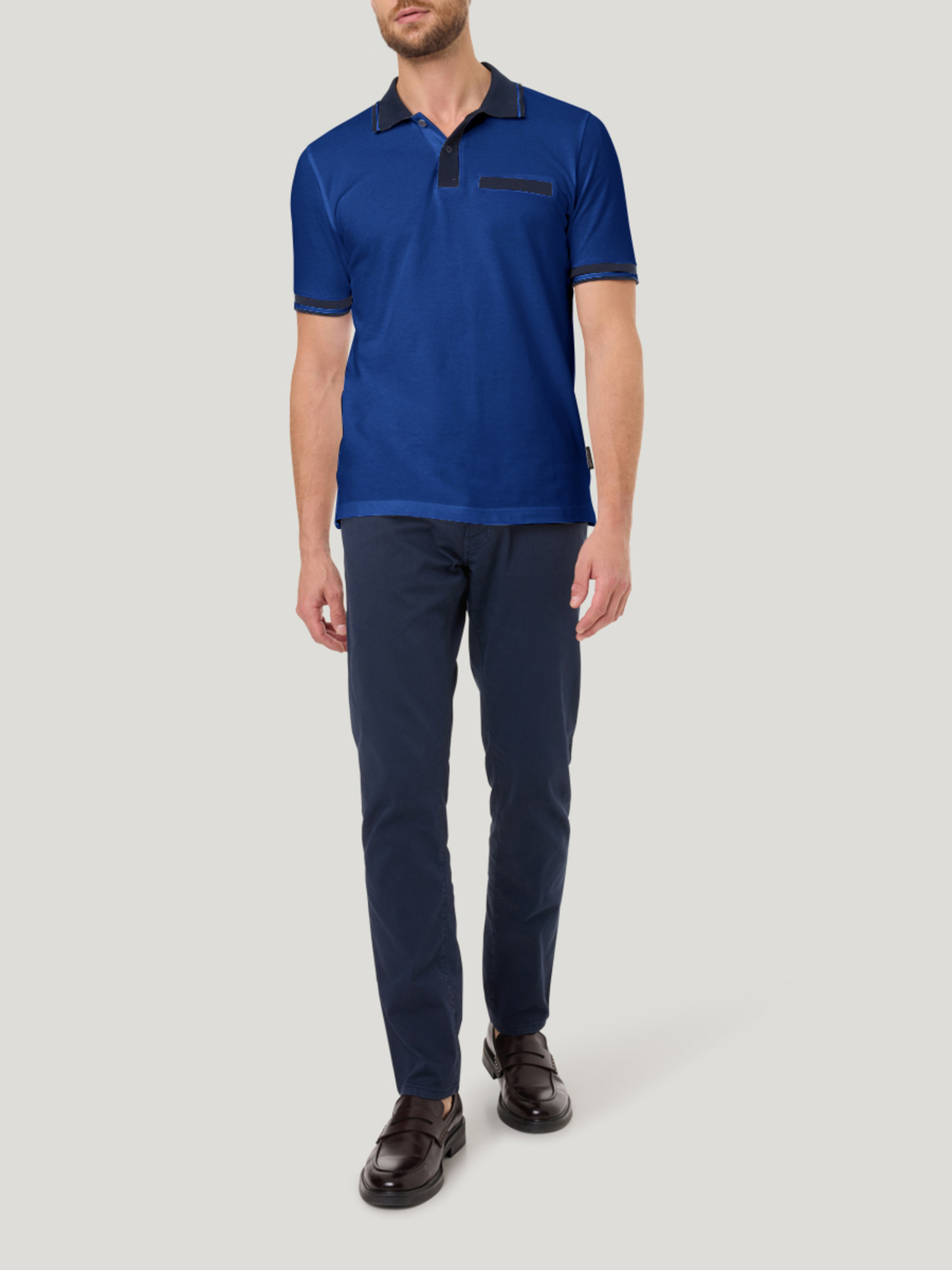 Мужское поло с контрастными манжетами — это стильная и элегантная вещь, которая сочетает в себе классический и современный элементы. Изготовлено из мягкого, дышащего хлопка. Основной цвет придает поло утончённость и универсальность, позволяя сочетать его с различной одеждой. Контрастные манжеты на рукавах, добавляют интересный акцент и подчеркивают детали. Поло также имеет классическую застежку на 2 пуговицы, что позволяет регулировать степень открытости воротника. Такая модель идеально подходит как для повседневных образов, так и для более формальных встреч в сочетании с брюками или джинсами.