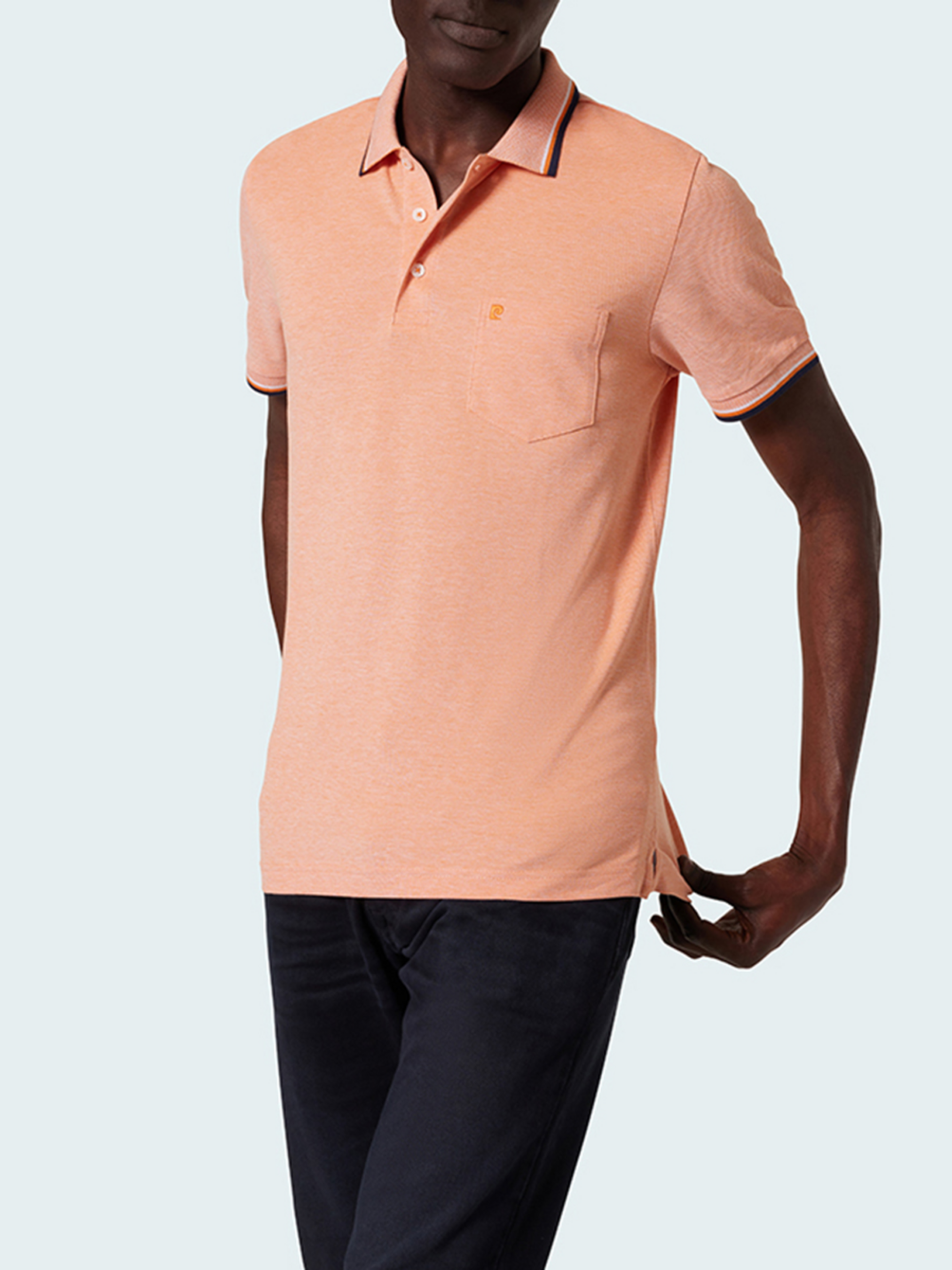 Оранжевое поло Pierre Cardin — это классика, которая сочетает в себе элегантный стиль и современную функциональность. Модель имеет минималистичный дизайн с нагрудным карманом, что делает ее универсальной для различных ситуаций, от неформальных встреч до ежедневной носки. Основные характеристики: Классический крой: Поло имеет стандартный прямой крой, что обеспечивает удобную и комфортную посадку без облегания, делая его подходящим для любого типа фигуры. Материал: Состав: 94% хлопок, 6% эластан. Этот состав обеспечивает мягкость и приятное прикосновение хлопка, а эластан придает изделию эластичность и помогает ему сохранять форму даже после многократных стирок. Ткань хорошо «дышит», что делает поло идеальным для длительного ношения. Нагрудный карман: Практичный карман на груди с левой стороны добавляет функциональности и элегантности изделию. Это удобный элемент для хранения мелочей или просто как стильный акцент. Воротник и манжеты: Классический трикотажный воротник с мягким покрытием для комфорта. Эластичные манжеты на рукавах не позволяют ткани сбиваться и придают поло аккуратный вид. Застежка: 3 пуговицы на груди, позволяющие регулировать посадку и придающие классический вид. Логотип Pierre Cardin: Вышитый на левой стороне груди, логотип бренда подчеркивает высокое качество и премиум стиль этого поло. Дизайн и цвет: Цвет: Яркий оранжевый — это выразительный цвет, который привлекает внимание и добавляет энергии вашему образу. Идеально подходит для тех, кто хочет добавить цвета и стильного акцента в повседневный вид.