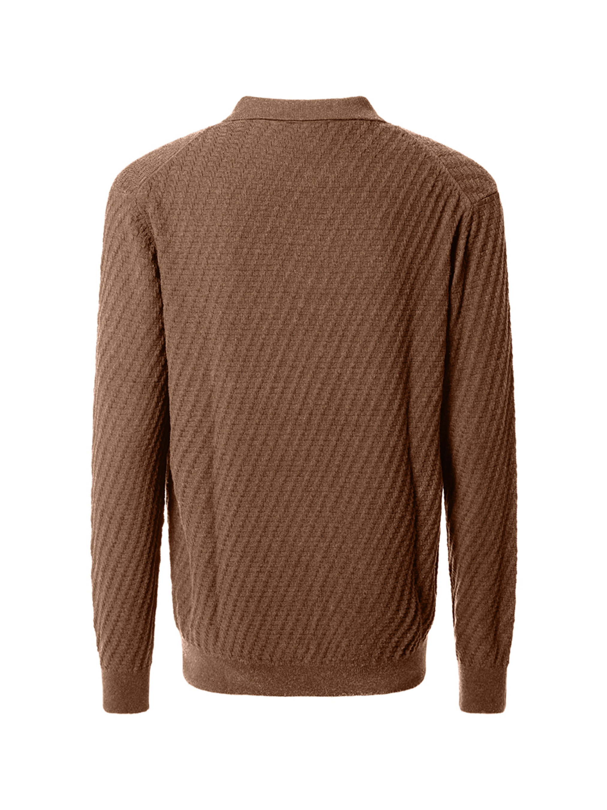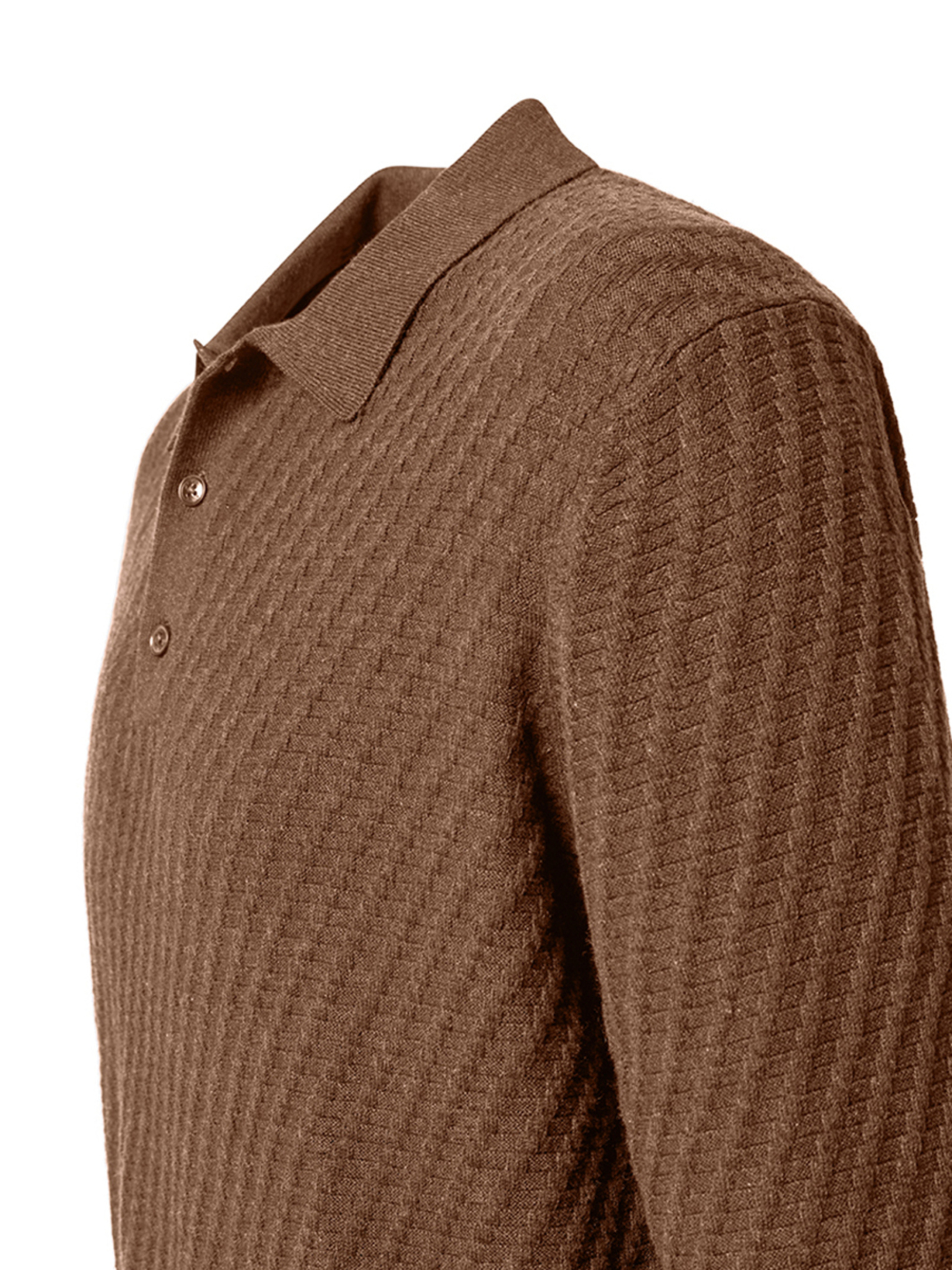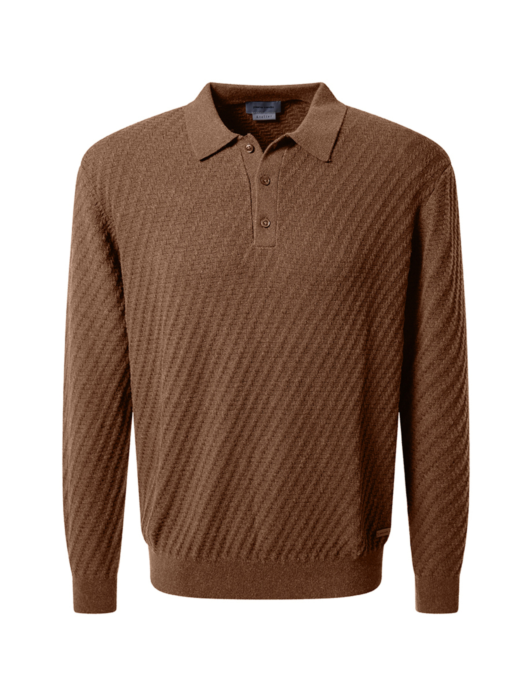 Это поло объединяет благородную сдержанность и изысканную фактуру. Модель выполнена из мягкого трикотажа из натурального хлопка с добавлением кашемира, что придаёт ткани нежность и комфорт. Геометрический узор в виде ромбов создаёт эффект вязаного плетения, добавляя образу глубины и утончённости. Отложной воротник, три контрастные пуговицы и эластичные манжеты на рукавах и внизу подчеркивают классический силуэт. Фирменный логотип Pierre Cardin, аккуратно нашитый внизу изделия, завершает образ французской элегантности. Характеристики: Бренд: Pierre Cardin Цвет: бежевый Состав: 95% хлопок, 5% кашемир Рукав: длинный Воротник: отложной Застёжка: три контрастные пуговицы Узор: трикотажное плетение с геометрическим орнаментом в виде ромбов Детали: манжеты на рукавах и внизу, фирменный логотип Pierre Cardin Сезон: Осень/Зима 2025 Преимущества: Мягкий и приятный материал с добавлением кашемира Стильный узор ромбов, придающий фактурность и глубину Отличная посадка благодаря эластичным манжетам Классический крой с элегантными акцентами Премиальное качество и утончённый стиль Pierre Cardin