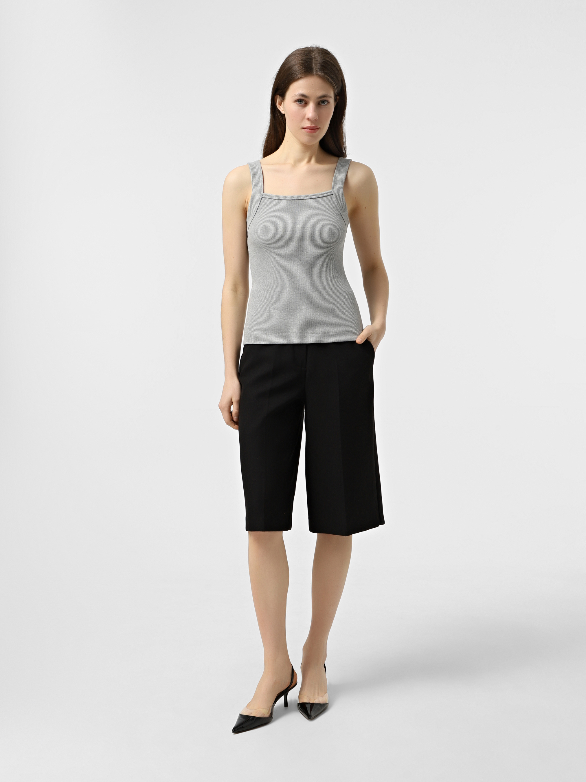 Майка в рубчик ТМ Promin - только высококачественные натуральные ткани. Состав: Хлопок - 95%, Эластан - 5% Цвет: Серый меланж