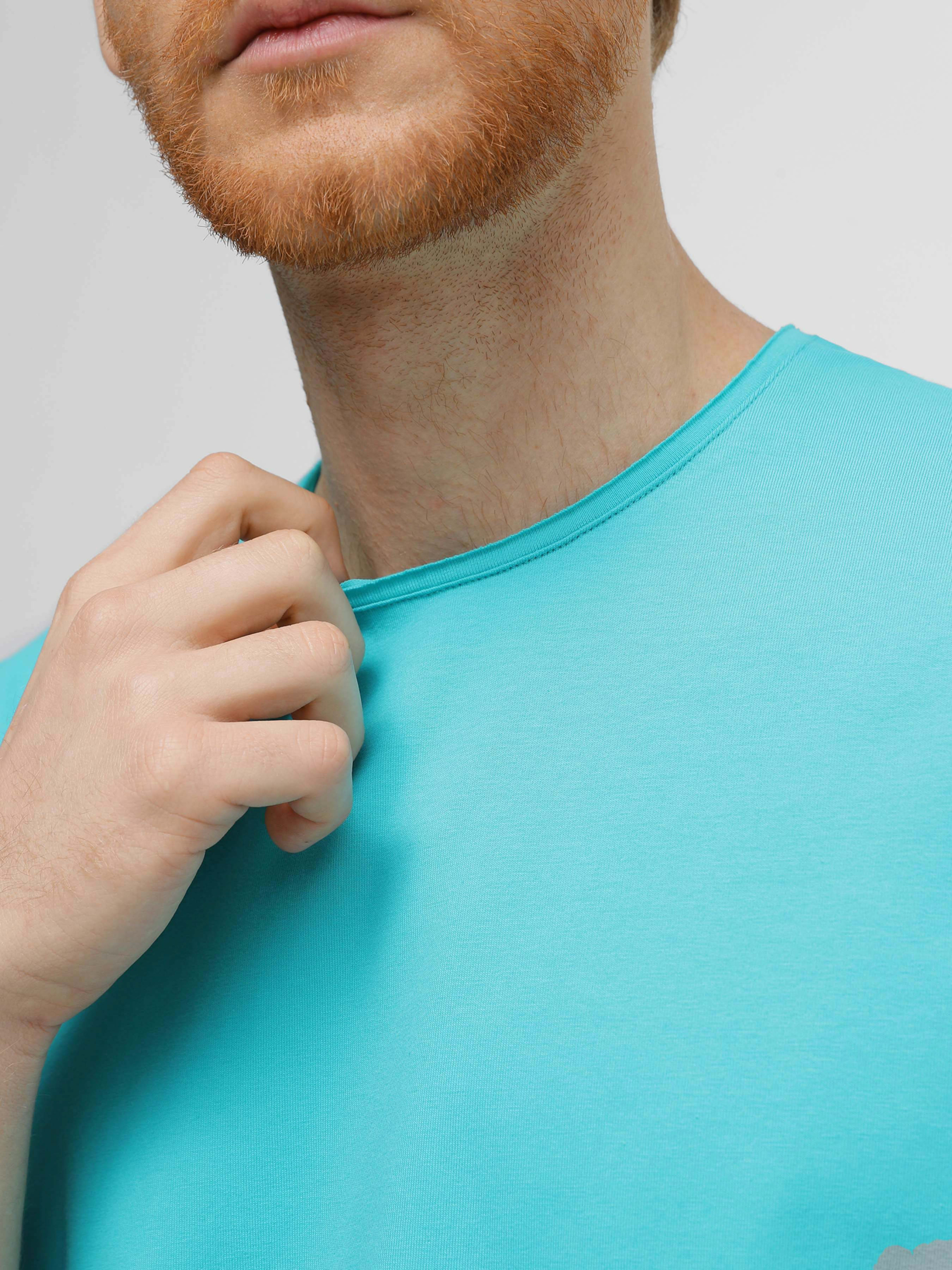 Футболка с необработанными краями ТМ Promin - только высококачественные натуральные ткани. Состав: хлопок - 95%, эластан - 5% Цвет: Бирюзовый