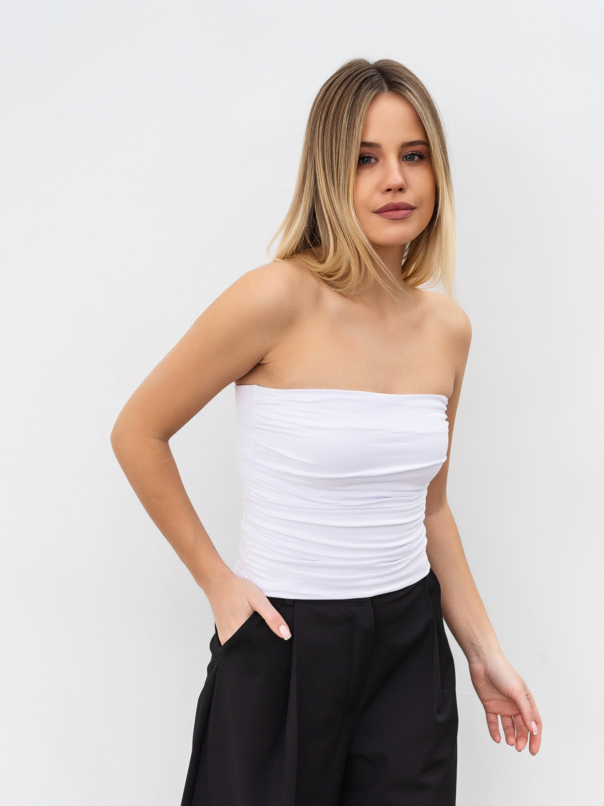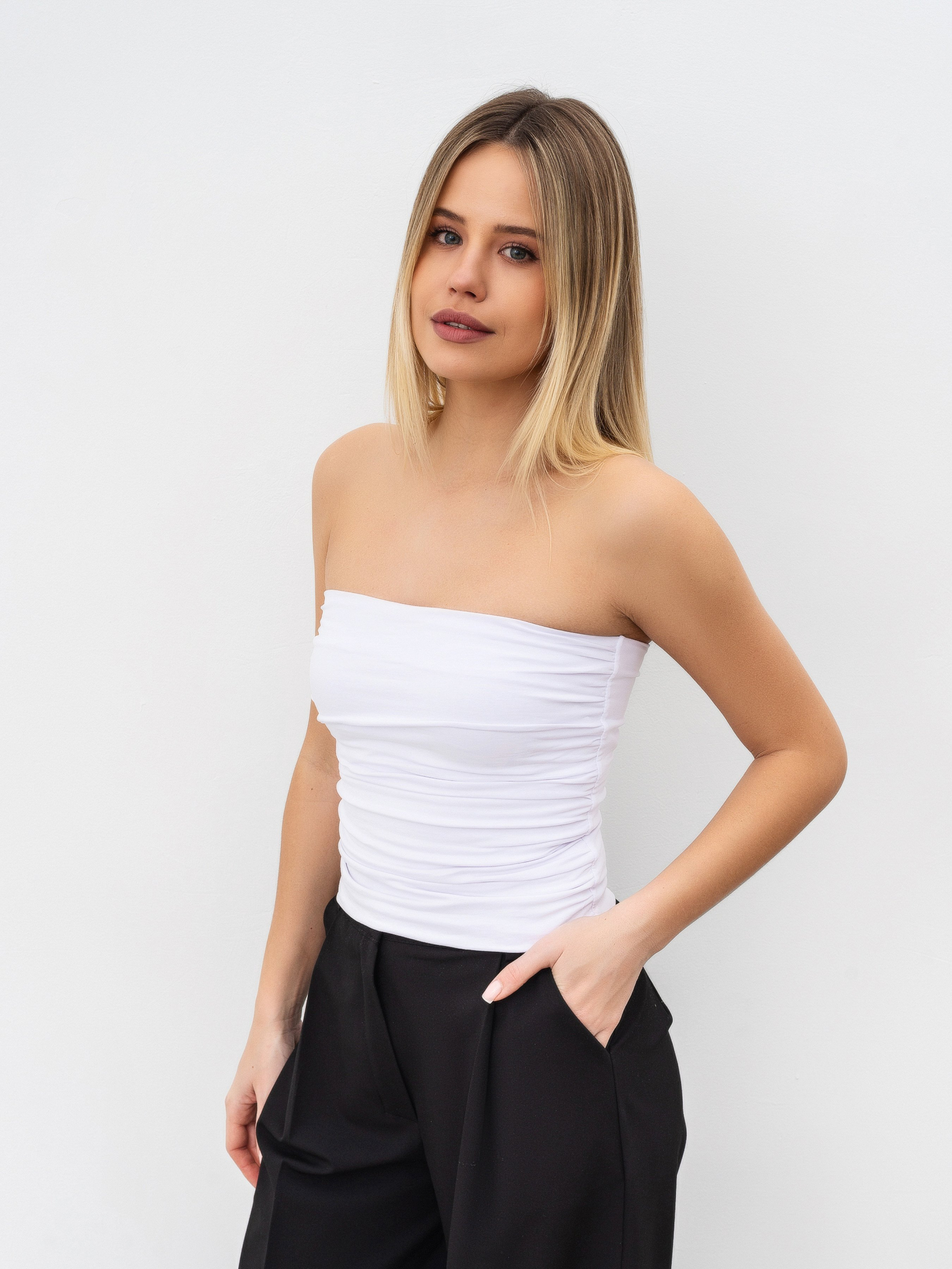 Топ-бондо из хлопка. Спереди двойная ткань, верхний слой с актуальной драпировкой. Изготовлен из качественного плотного хлопка с примесью эластана, чтобы ткань могла немного тянуться. Такой фасон топа-бондо прекрасно комбинируется с любым базовым низом, а также его легко добавить к вечернему образу. Подбирайте полный образ с бондо в разделах "Юбки" "Брюки" "Джинсы" XS|S: Длина по спине : 29 см; Полуобхват груди : 30 см; Полуобхват талии : 26 см, S|M: Длина по спине : 30 см; Полуобхват груди : 32 см; Полуобхват талии : 28 см, M|L: Длина по спине : 31 см; Полуобхват груди : 35 см; Полуобхват талии : 30 см, L|XL: Длина по спине : 31 см; Полуобхват груди : 37 см; Полуобхват талии : 32 см.