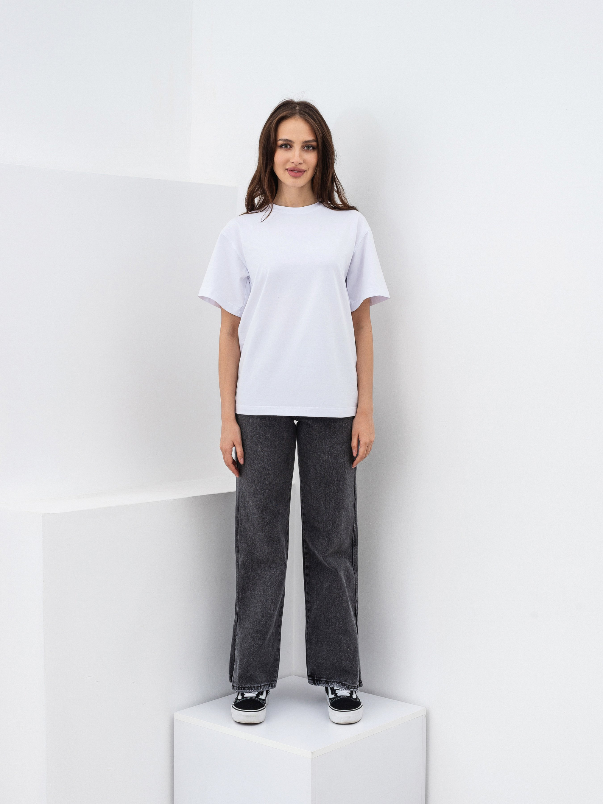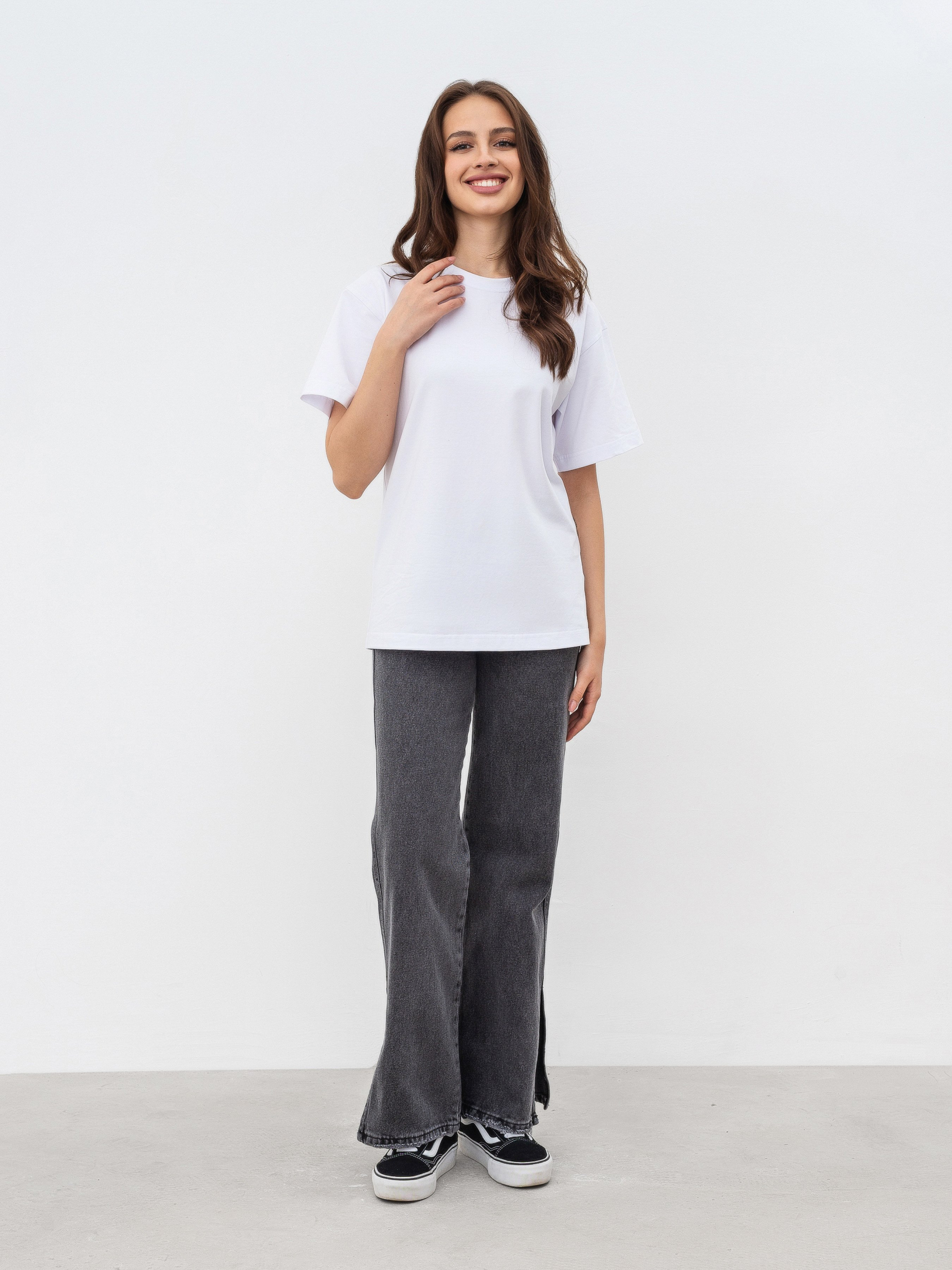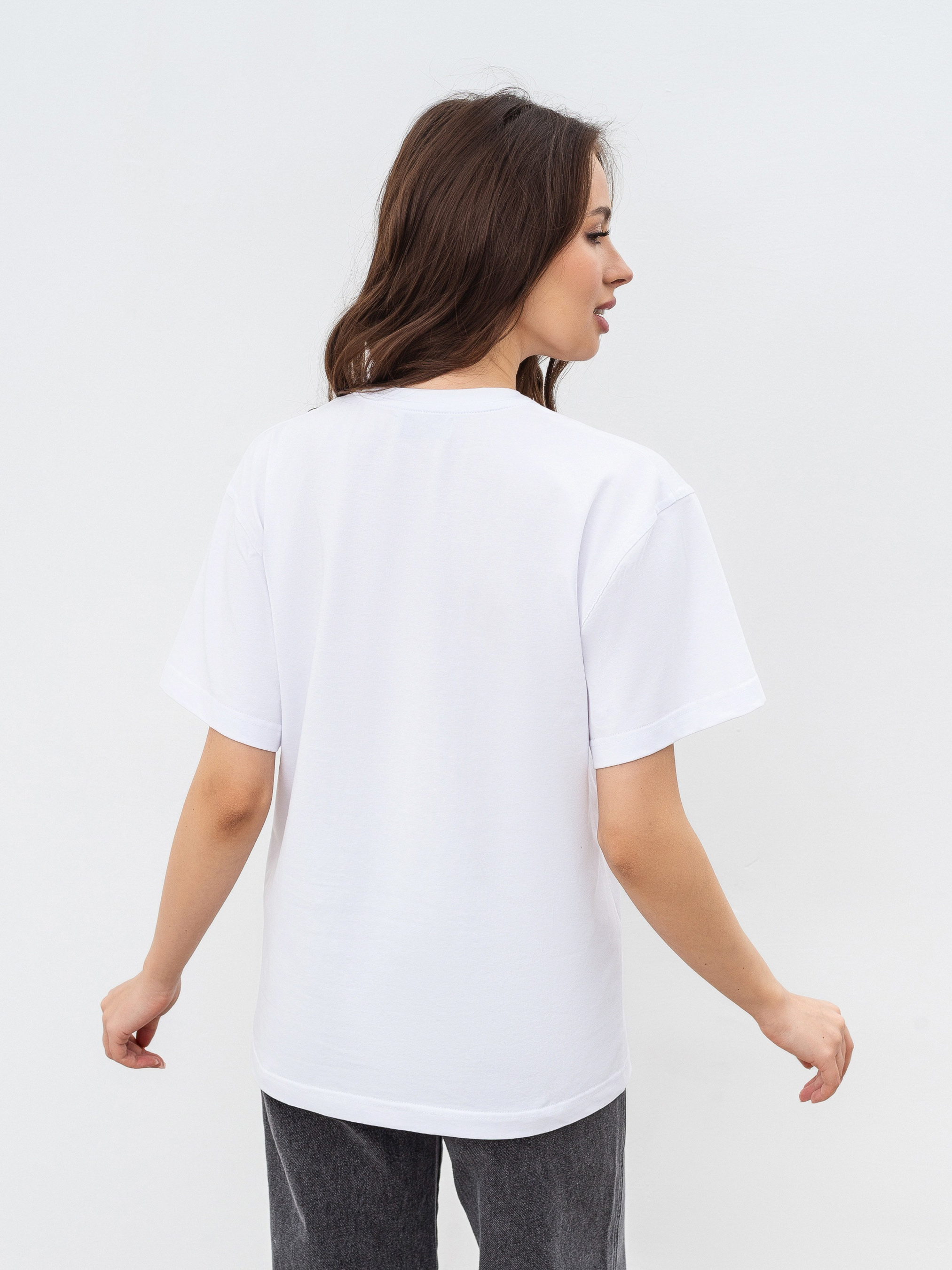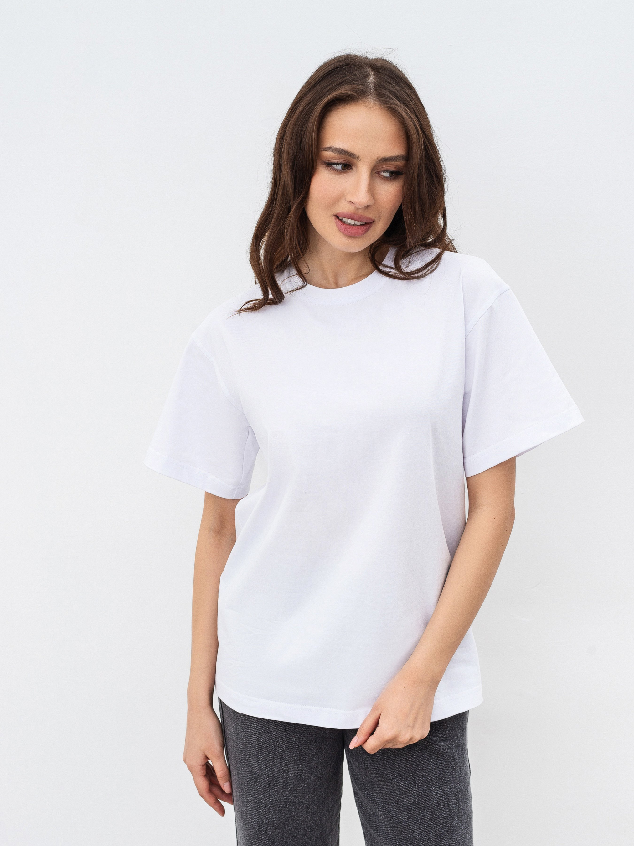 Идеальная базовая футболка на все случаи жизни в 6 цветах. Фасон оверсайз. Выполнена из мягкого и приятного материала кулир (50% хлопок, 47% вискоза, 3% эластан). Хорошо держит форму. За счет качественно обработанных швов, широких рукавов и плотного материала выглядит качественно и дорого. Можно сочетать абсолютно со всем джинсами, классическими брюками, юбками, шортами, леггинсами. Будет служить идеальной базой для многослойных образов на весенне-осенний сезон и совершенным верхом на лето. Прослужит вам много сезонов подряд. Советуем брать сразу в нескольких цветах ;) Советуем выбрать вариант футболки Petite девушкам невысокого роста или высоким девушкам, которые хотят более короткий вариант футболки. Цвет изделия на фотографии может отличаться от реального цвета товара, что связано с особенностями цветопередачи на мониторе, настройками фотоаппаратуры или другими факторами. Длина по спине : 63 см Длина рукава : 20 см Полуобхват груди : 48 см Плечи : 47 см Ширина по низу : 49 см