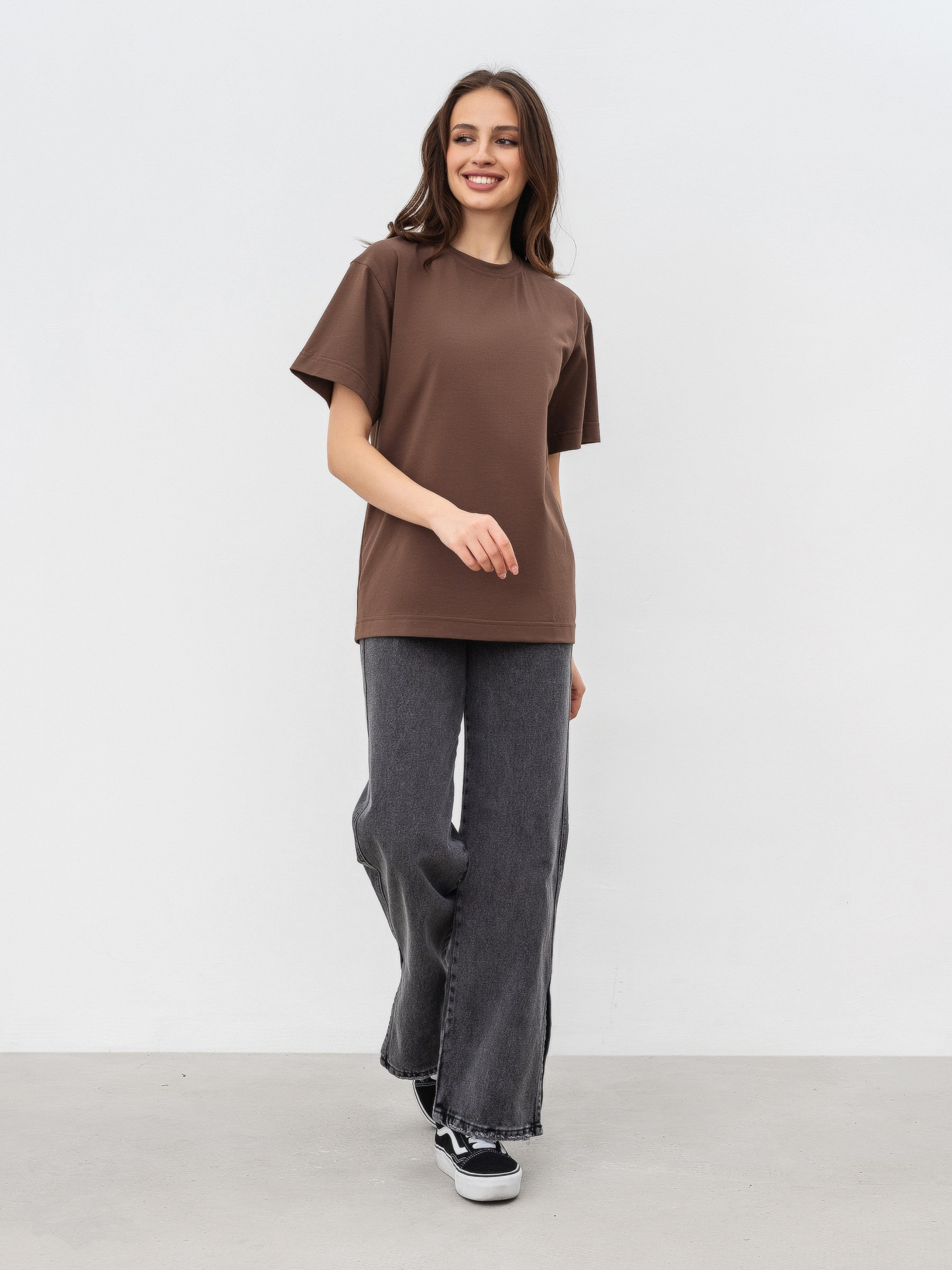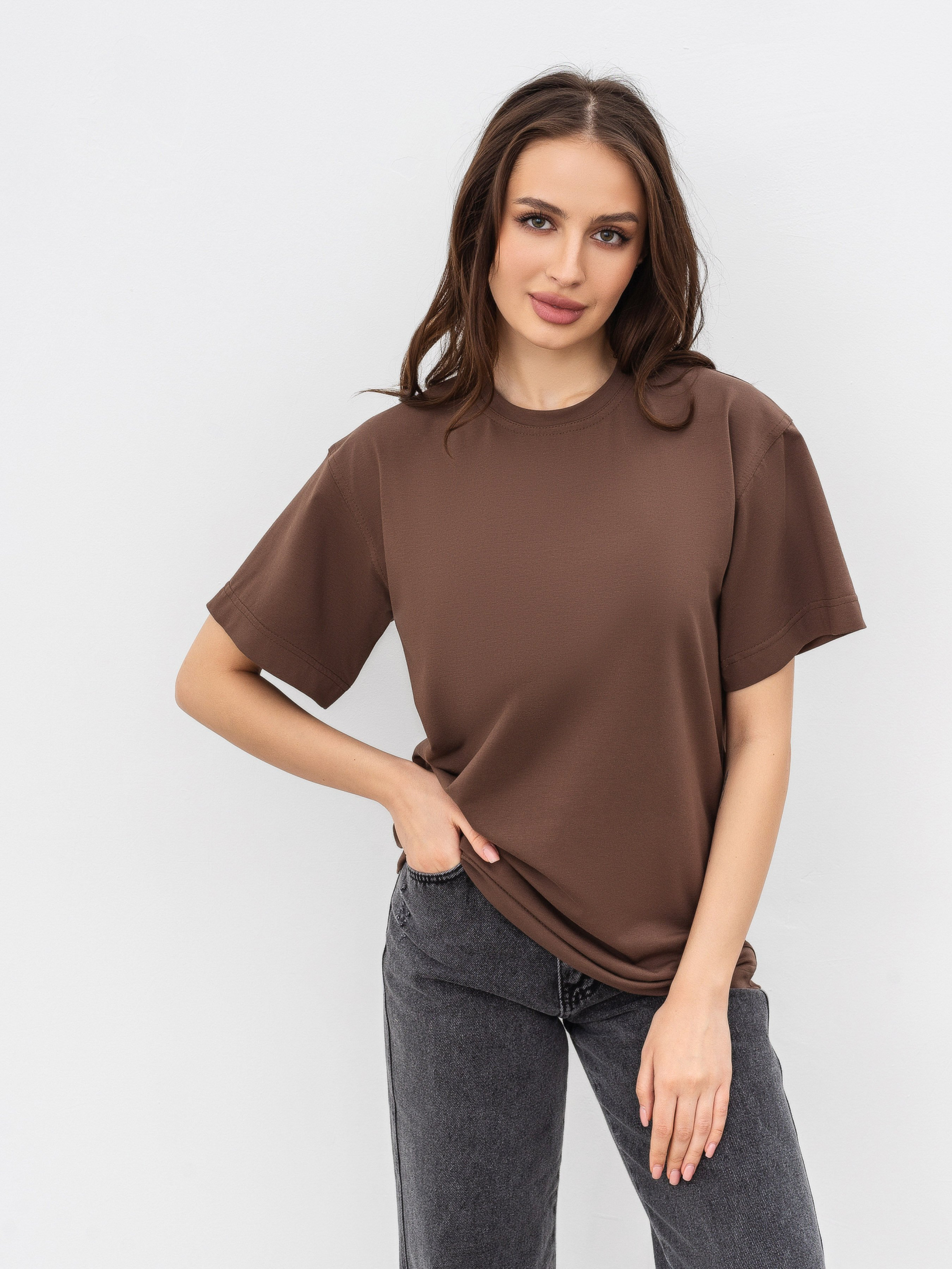 Идеальная базовая футболка на все случаи жизни в 6 цветах. Фасон оверсайз. Выполнена из мягкого и приятного материала кулир (50% хлопок, 47% вискоза, 3% эластан). Хорошо держит форму. За счет качественно обработанных швов, широких рукавов и плотного материала выглядит качественно и дорого. Можно сочетать абсолютно со всем джинсами, классическими брюками, юбками, шортами, леггинсами. Будет служить идеальной базой для многослойных образов на весенне-осенний сезон и совершенным верхом на лето. Прослужит вам много сезонов подряд. Советуем брать сразу в нескольких цветах ;) Советуем выбрать вариант футболки Petite девушкам невысокого роста или высоким девушкам, которые хотят более короткий вариант футболки. Цвет изделия на фотографии может отличаться от реального цвета товара, что связано с особенностями цветопередачи на мониторе, настройками фотоаппаратуры или другими факторами. Длина по спине : 63 см Длина рукава : 20 см Полуобхват груди : 48 см Плечи : 47 см Ширина по низу : 49 см