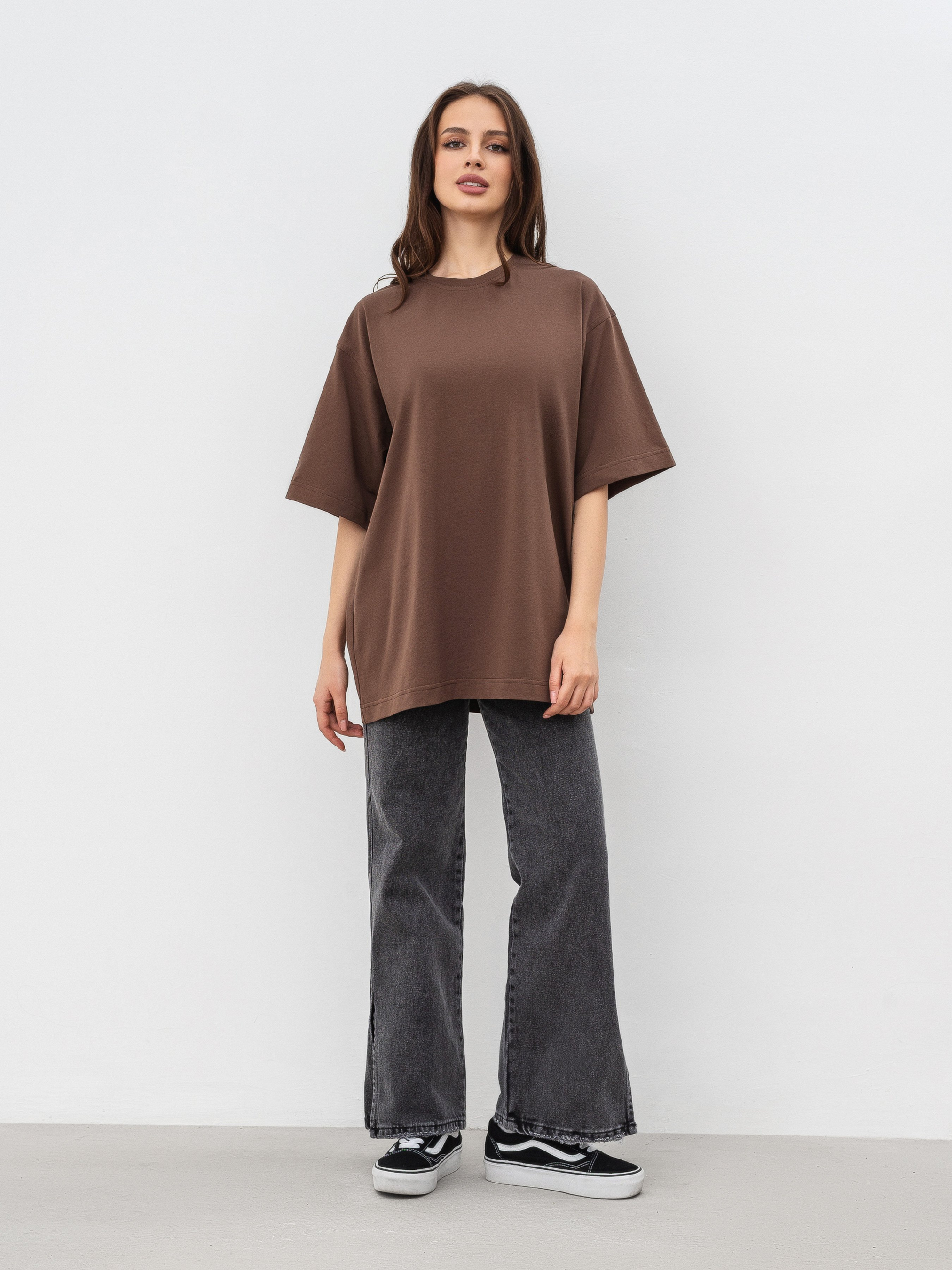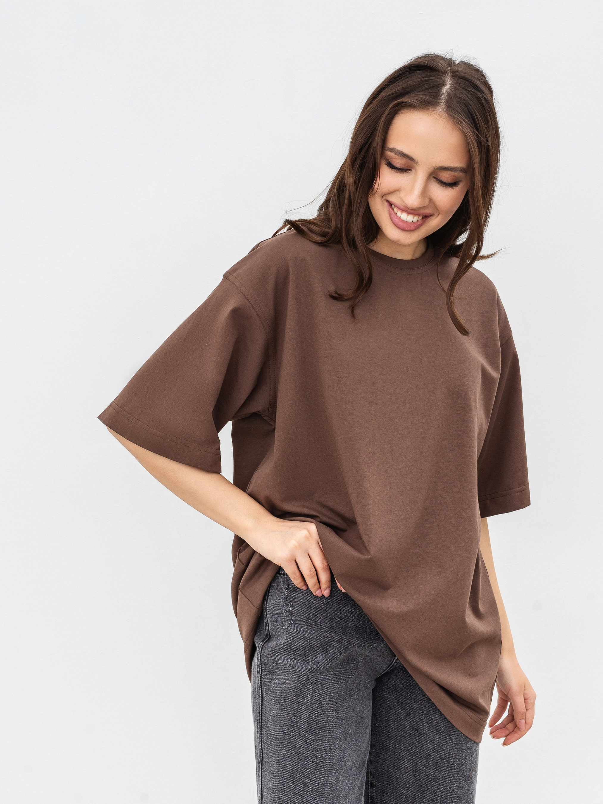 Идеальная базовая футболка на все случаи жизни в 6 цветах. Фасон - оверсайз. Выполнена из мягкого и приятного материала кулир (50% хлопок, 47% вискоза, 3% эластан). Хорошо держит форму. За счет качественно обработанных швов, широких рукавов и плотного материала выглядит качественно и дорого. Можно сочетать абсолютно со всем - джинсами, классическими брюками, юбками, шортами, леггинсами... Будет служить идеальной базой для многослойных образов на весенне-осенний сезон и совершенным верхом на лето. Прослужит вам много сезонов подряд. Советуем брать сразу в нескольких цветах ;) Советуем выбрать вариант футболки Tall девушкам высокого роста. Цвет изделия на фотографии может отличаться от реального цвета товара, что связано с особенностями цветопередачи на мониторе, настройками фотоаппаратуры или другими факторами. Длина по спине : 72 см Длина рукава : 26 см Полуобхват груди : 58 см Плечи : 53 см Ширина по низу : 57 см