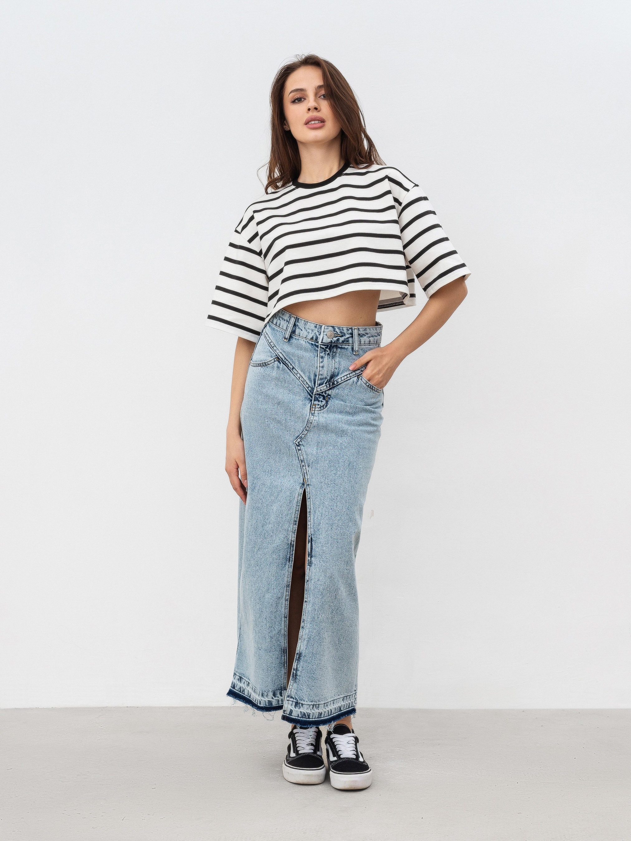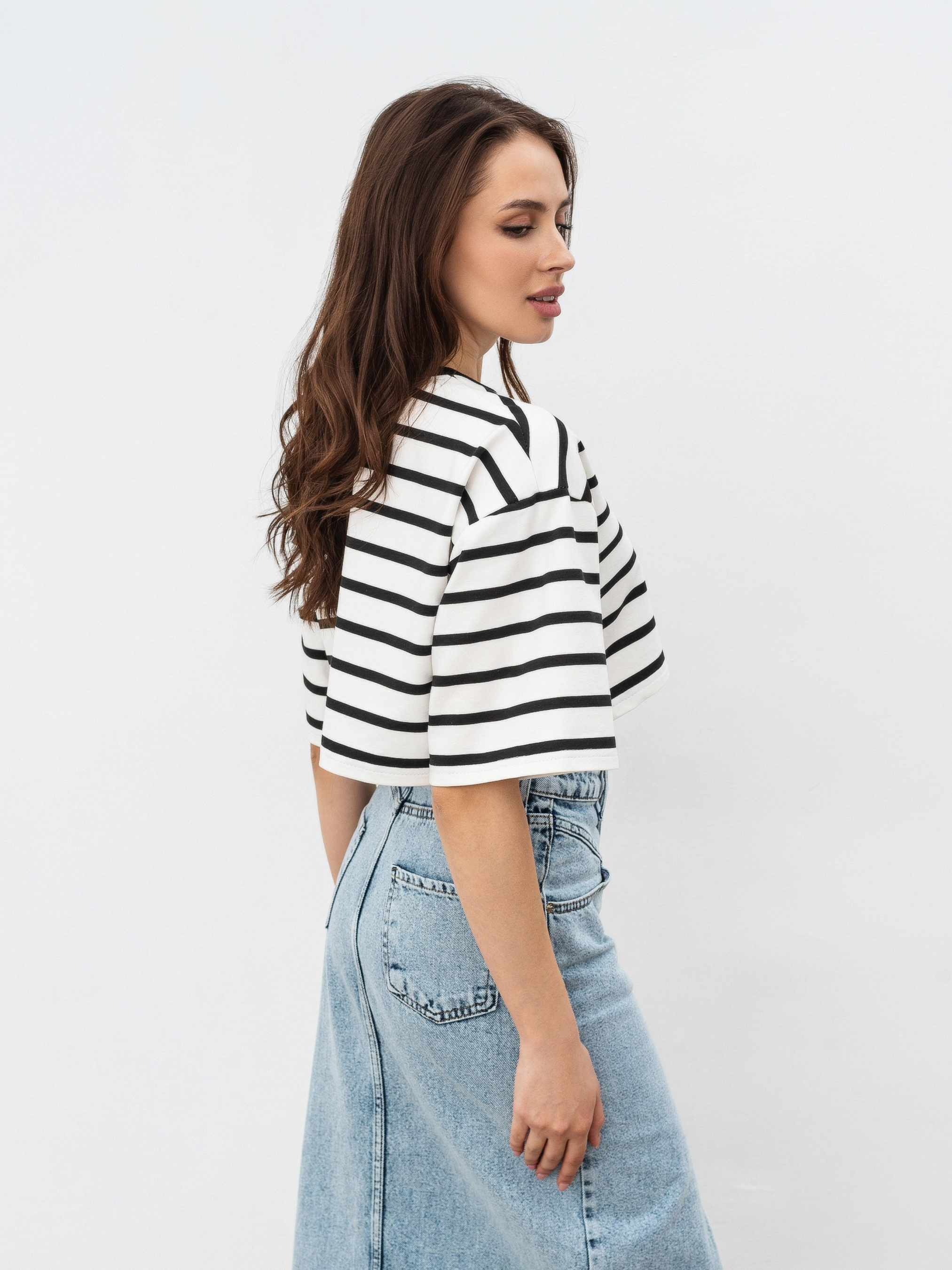 Укороченная модель футболки в полоску свободного кроя. Мягкая и приятная для тела. Выполнена из трикотажа двунитки (в составе 80% хлопка, 20% полиэстера). Этот материал плотнее хлопка, хорошо держит форму и минимально мнется. Подходит на температуру до 25-27 градусов. За счет кроя хорошо подчеркивает талию и визуально уменьшает руки. Прекрасно сочетается с джинсами и юбками с высокой посадкой (например, джинсы "Таллинн", "Хартум", юбки "Найроби", "Ватерлоо"). В весенне-осенний сезон будет очень хорошо смотреться в комбинации с тренчем "Авеста" и косухами "Берлин", "Твист". Цвет изделия на фотографии может отличаться от реального цвета товара, что связано с особенностями цветопередачи на мониторе, настройками фотоаппаратуры или другими факторами.