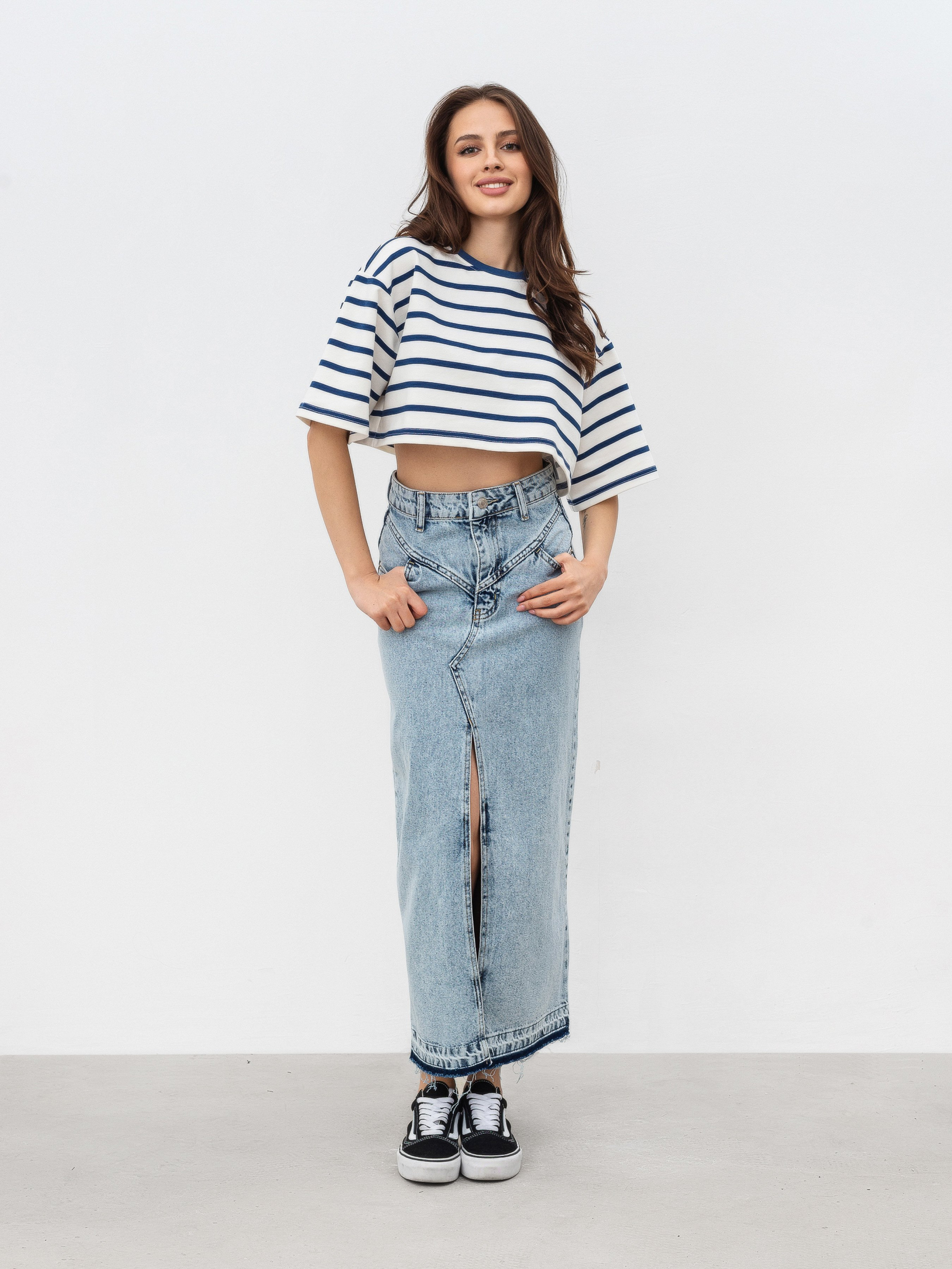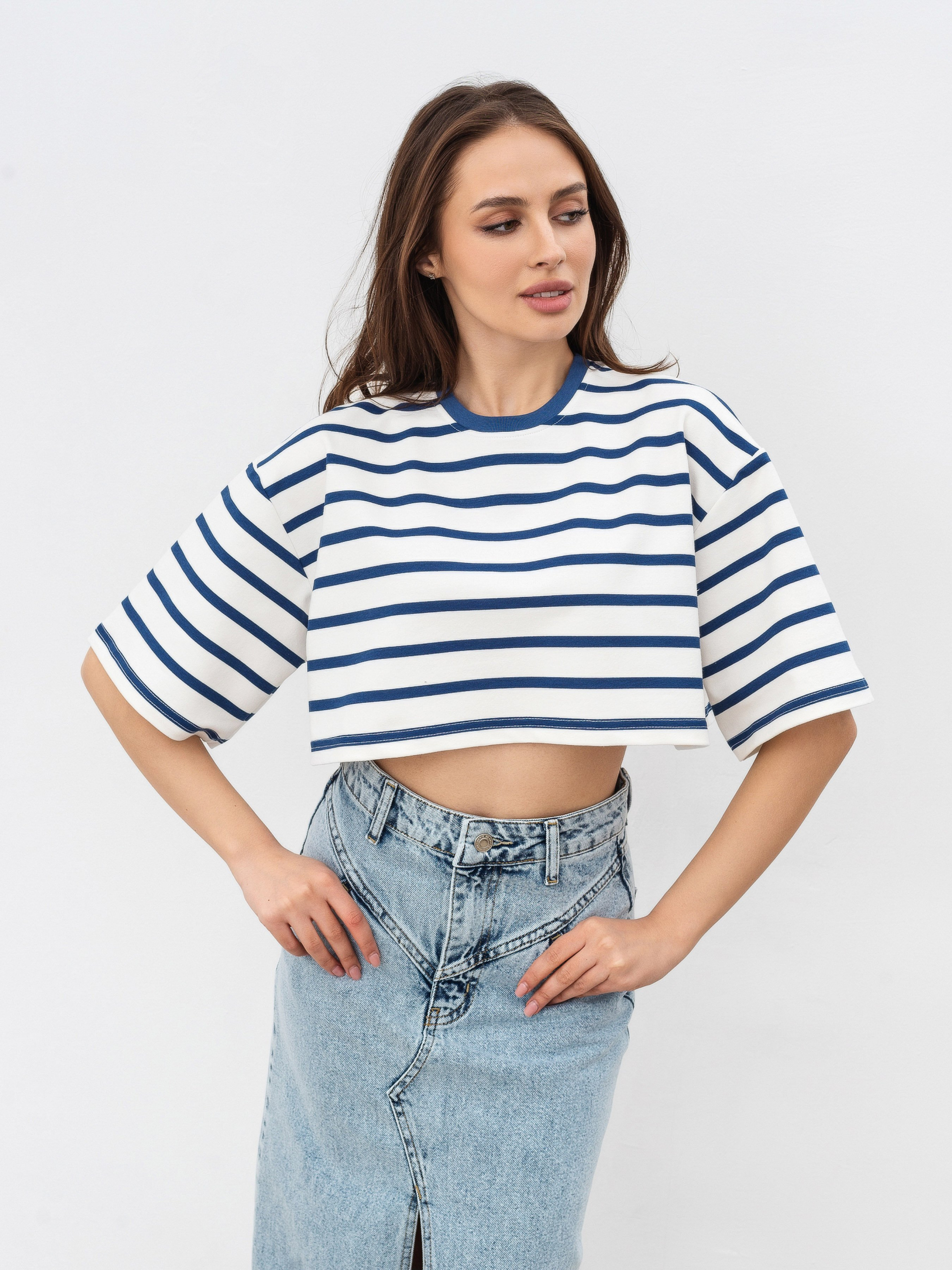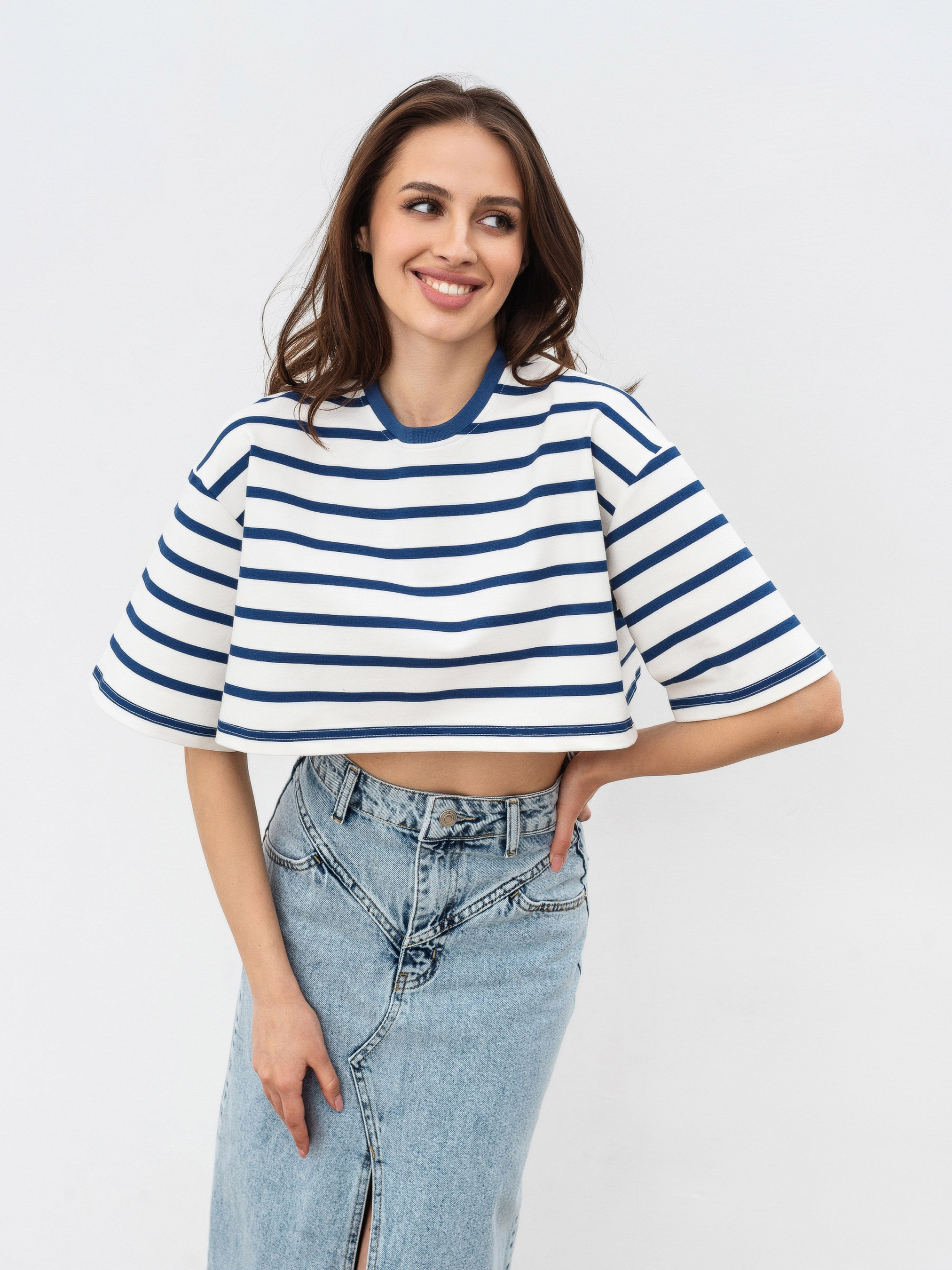 Укороченная модель футболки в полоску свободного кроя. Мягкая и приятная для тела. Выполнена из трикотажа двунитки (в составе 80% хлопка, 20% полиэстера). Этот материал плотнее хлопка, хорошо держит форму и минимально мнется. Подходит на температуру до 25-27 градусов. За счет кроя хорошо подчеркивает талию и визуально уменьшает руки. Прекрасно сочетается с джинсами и юбками с высокой посадкой (например, джинсы "Таллинн", "Хартум", юбки "Найроби", "Ватерлоо"). В весенне-осенний сезон будет очень хорошо смотреться в комбинации с тренчем "Авеста" и косухами "Берлин", "Твист". Цвет изделия на фотографии может отличаться от реального цвета товара, что связано с особенностями цветопередачи на мониторе, настройками фотоаппаратуры или другими факторами.