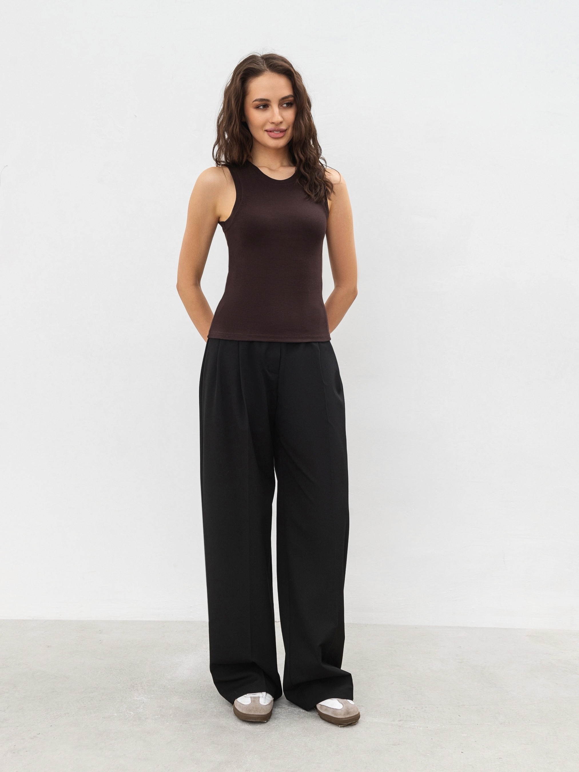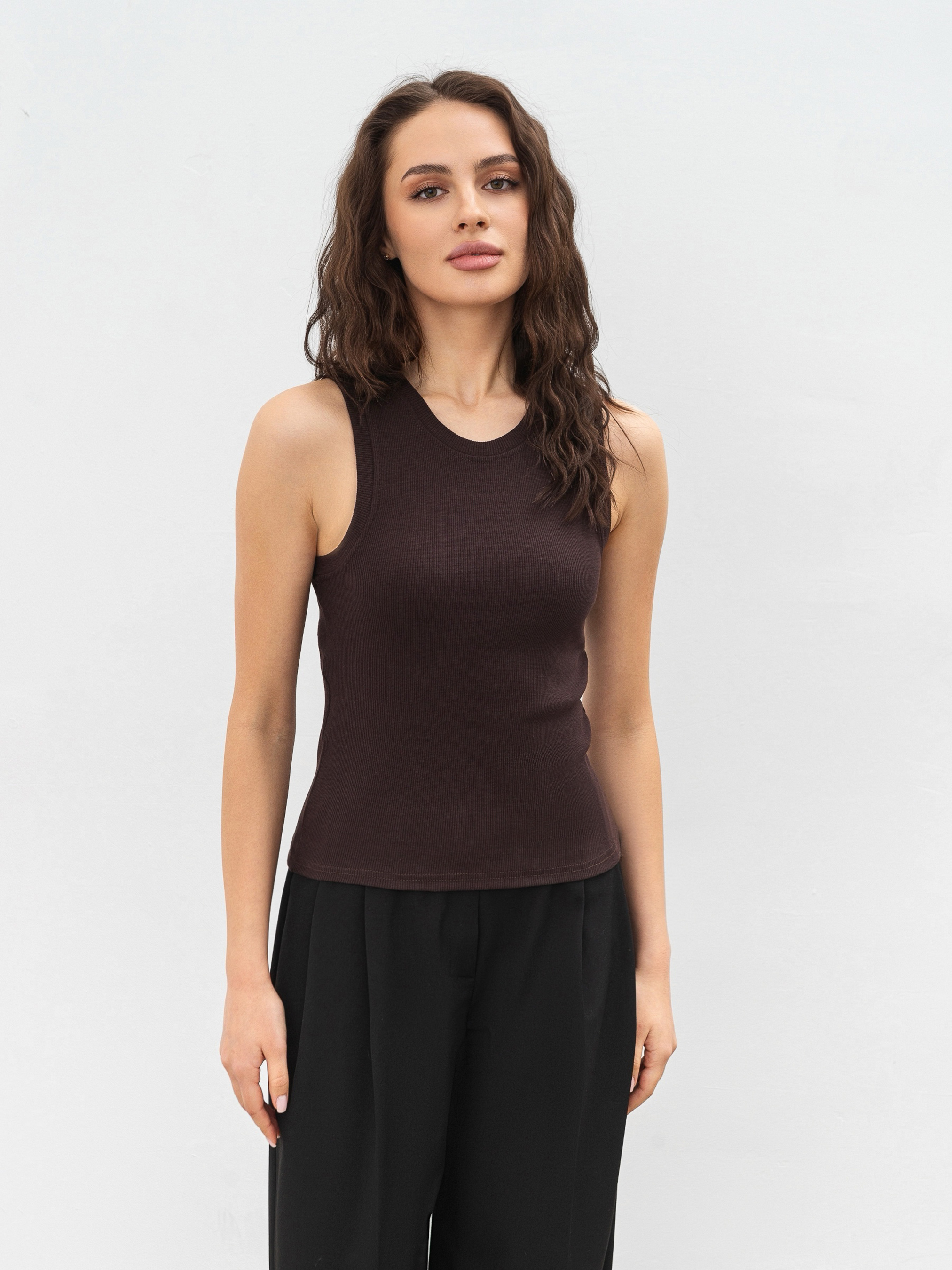 Майка Скейл - универсальная модель, которая дополнит любой гардероб. Благодаря приталенному крою она хорошо садится по фигуре, а горловина добавляет элегантности. Материал - трикотаж рубчик, который хорошо тянется и приятен к телу. Натуральный хлопок в составе обеспечивает комфорт, а эластан помогает сохранять форму даже после многочисленных стирок. Модель представлена в пяти базовых цветах, которые легко комбинируются с другими вещами. Носите, как самостоятельную вещь, или сочетайте с жакетом, кардиганом или рубашкой - эта майка станет основой для стильных повседневных образов. ХС-С Длина по спине: 50 см Полуобхват груди: 27 см Плечи: 25 см Полуобхват талии: 25 см С-М Длина по спине: 52 см Полуобхват груди: 30 см Плечи: 26 см Полуобхват талии: 27 см М-Л Длина по спине: 54 см Полуобхват груди: 31 см Плечи: 27 см Полуобхват талии: 28 см Л-ХЛ Длина по спине: 55 см Полуобхват груди: 34 см Плечи: 28 см Полуобхват талии: 30 см