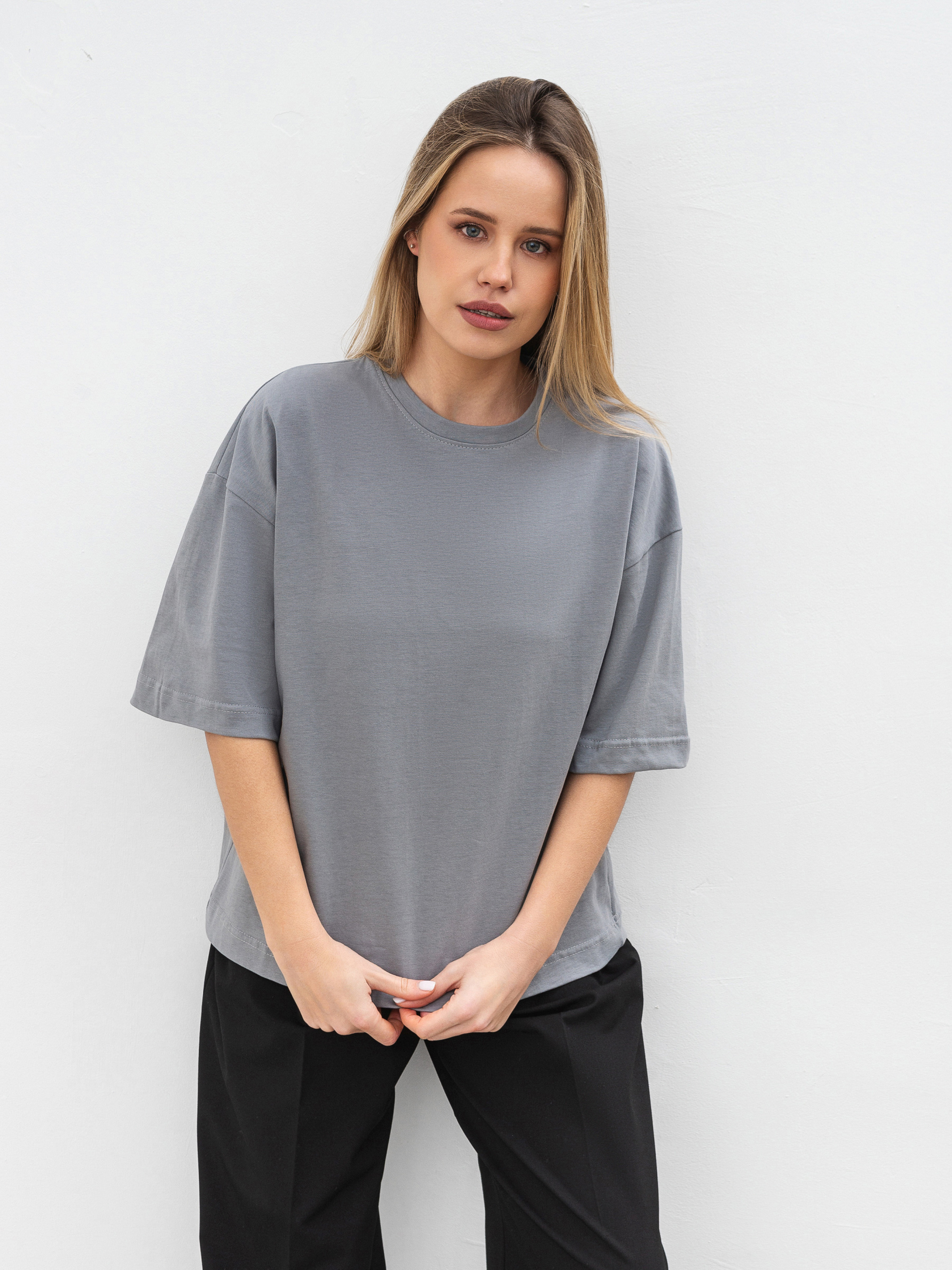 Простой, но стильный базовый элемент - футболка Бейсик станет незаменимой частью любого гардероба. Модель изготовлена из мягкого трикотажа кулир из 100% хлопка, что обеспечивает комфорт и отличную циркуляцию воздуха. Особенность этой футболки - спущенная линия плеча и прямой фасон, который подходит для разных типов фигур. Выбор длины (короткая и удлиненная модель) позволяет подобрать наиболее удобный вариант под ваш стиль. Доступная в разнообразных цветах, она без труда сочетается с другими базовыми элементами гардероба - идеальна для любой ситуации, от повседневных прогулок до более утонченных образов на выход. Длина по спине – 58 см Полуобхват груди – 55 см Полуобхват талии – 54 см Плечи – 55 см Длина рукава – 23 см
