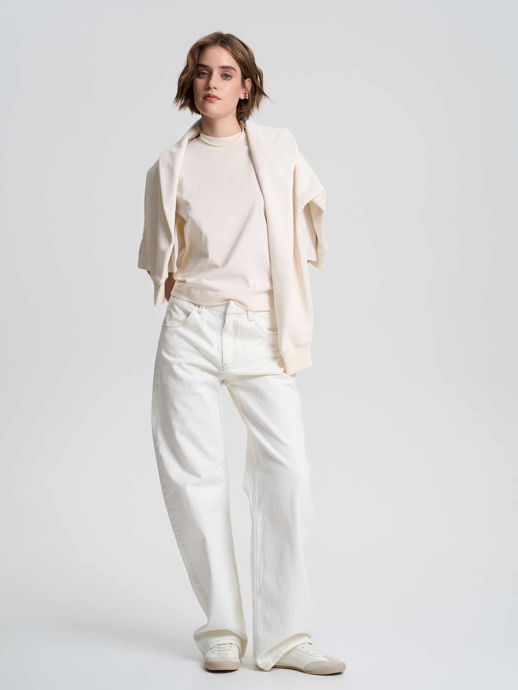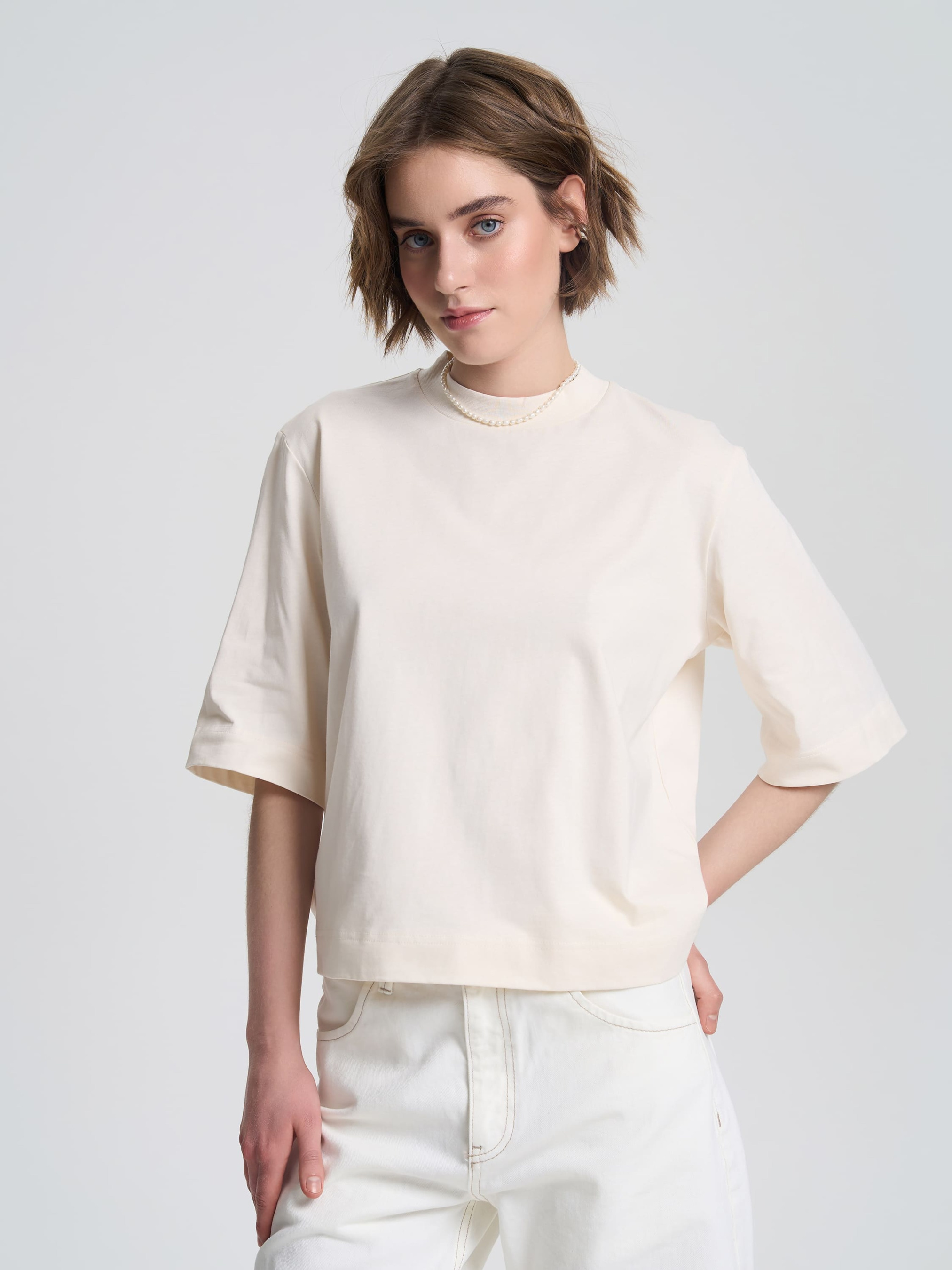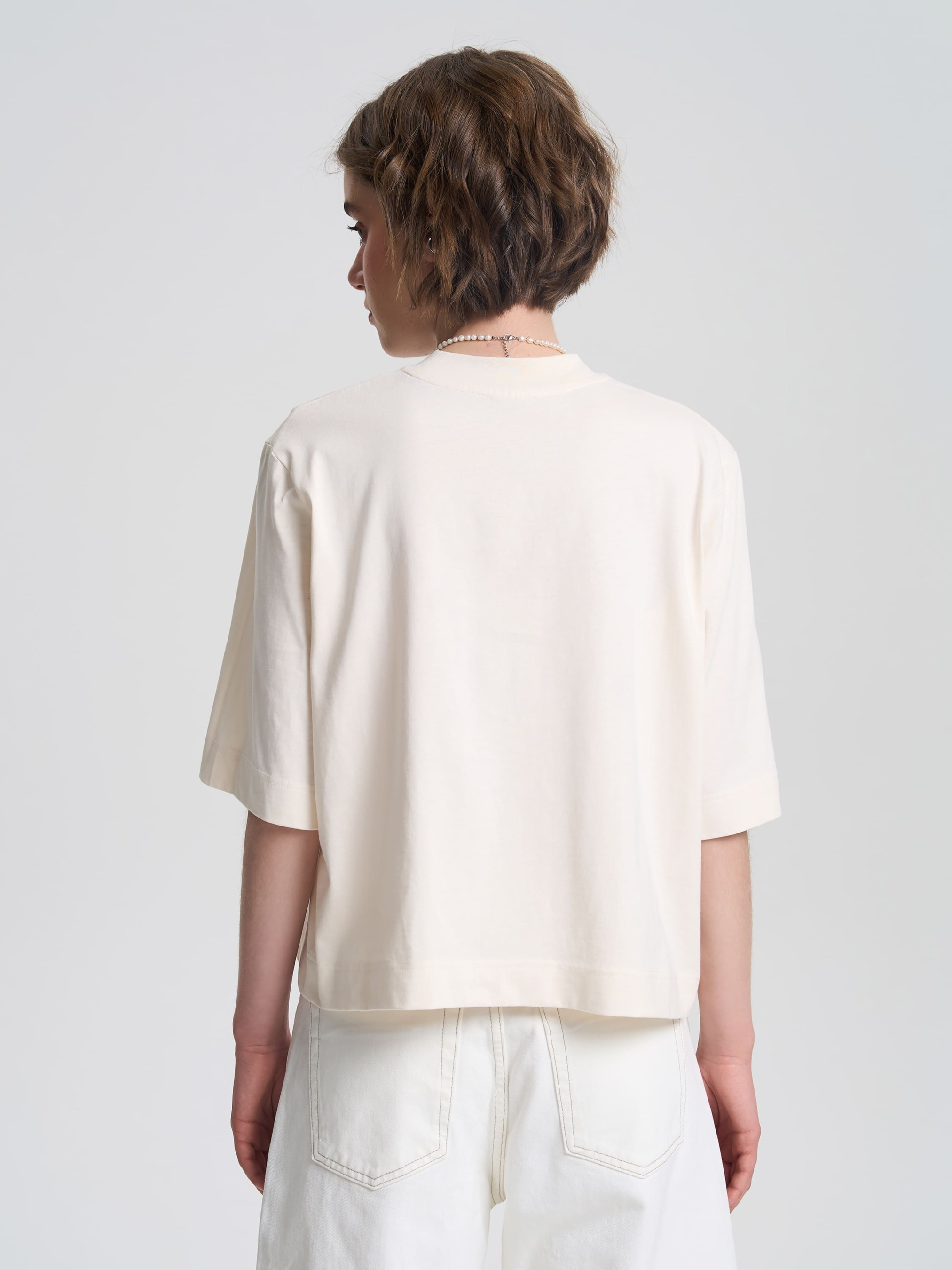 Женская футболка свободного кроя с немного укороченной длиной и удлиненными рукавами, прикрывающими локоть. Круглый вырез горловины плотно прилегает к шее, создавая лаконичный силуэт. Благодаря средней плотности ткани, футболка хорошо держит форму и комфортно чувствуется на теле. Идеальный вариант для создания стильных образов в повседневном и кэжуал-стиле. Материал Футболка изготовлена из качественного кулирного полотна 100% хлопка средней плотности (180 г/м²). Натуральный материал хорошо пропускает воздух, позволяя коже дышать и обеспечивает комфорт в течение всего дня. Благодаря своей структуре ткань приятна на ощупь и устойчива к деформациям. Рекомендации по уходу Рекомендуется стирать при температуре до 40°C в деликатном режиме, избегая отжима на высоких оборотах. Сушить в расправленном виде, вдали от прямых солнечных лучей. Гладить при средней температуре.