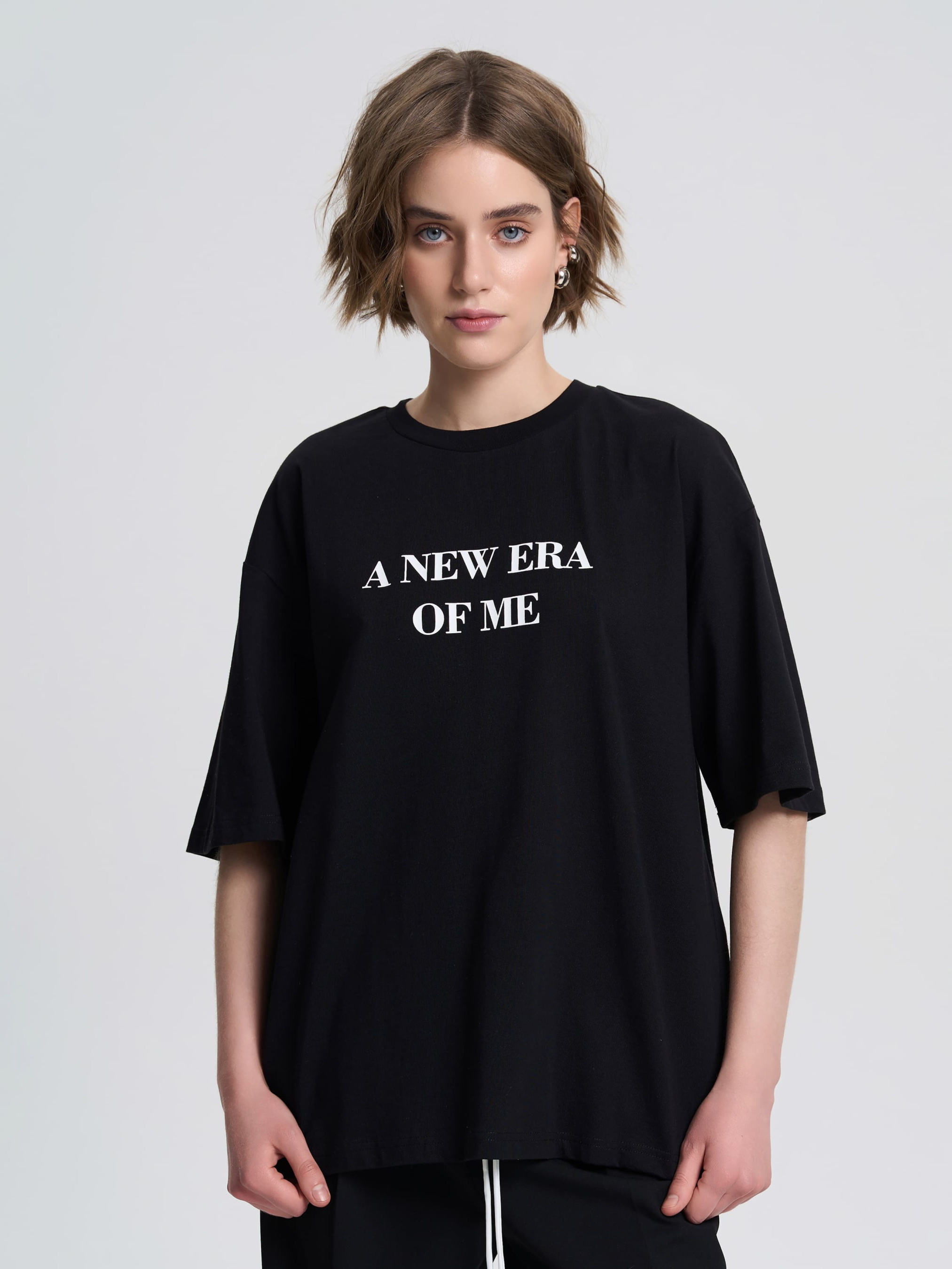 Женская футболка свободного кроя, сочетающая комфорт и современный вид. Модель с приспущенным рукавом и классическим круглым вырезом. Впереди размещена надпись "A new era of me", придающая изделию особый характер. Футболка легко сочетается с джинсами, шортами или юбками, становясь идеальным выбором для повседневных и стильных образов. Материал Тонкая, легкая ткань, приятно прилегает к телу, не электризуется. Отлично поглощает излишки влаги при активности. Обладает высокой воздухопроницаемостью, поддерживая комфортную температуру тела. Рекомендации по уходу Стирать вручную или на деликатном режиме при температуре не выше 40°C. Отжимать на низких оборотах. Сушить в хорошо проветриваемых помещениях. Не размещать под прямыми солнечными лучами или возле отопительных приборов.