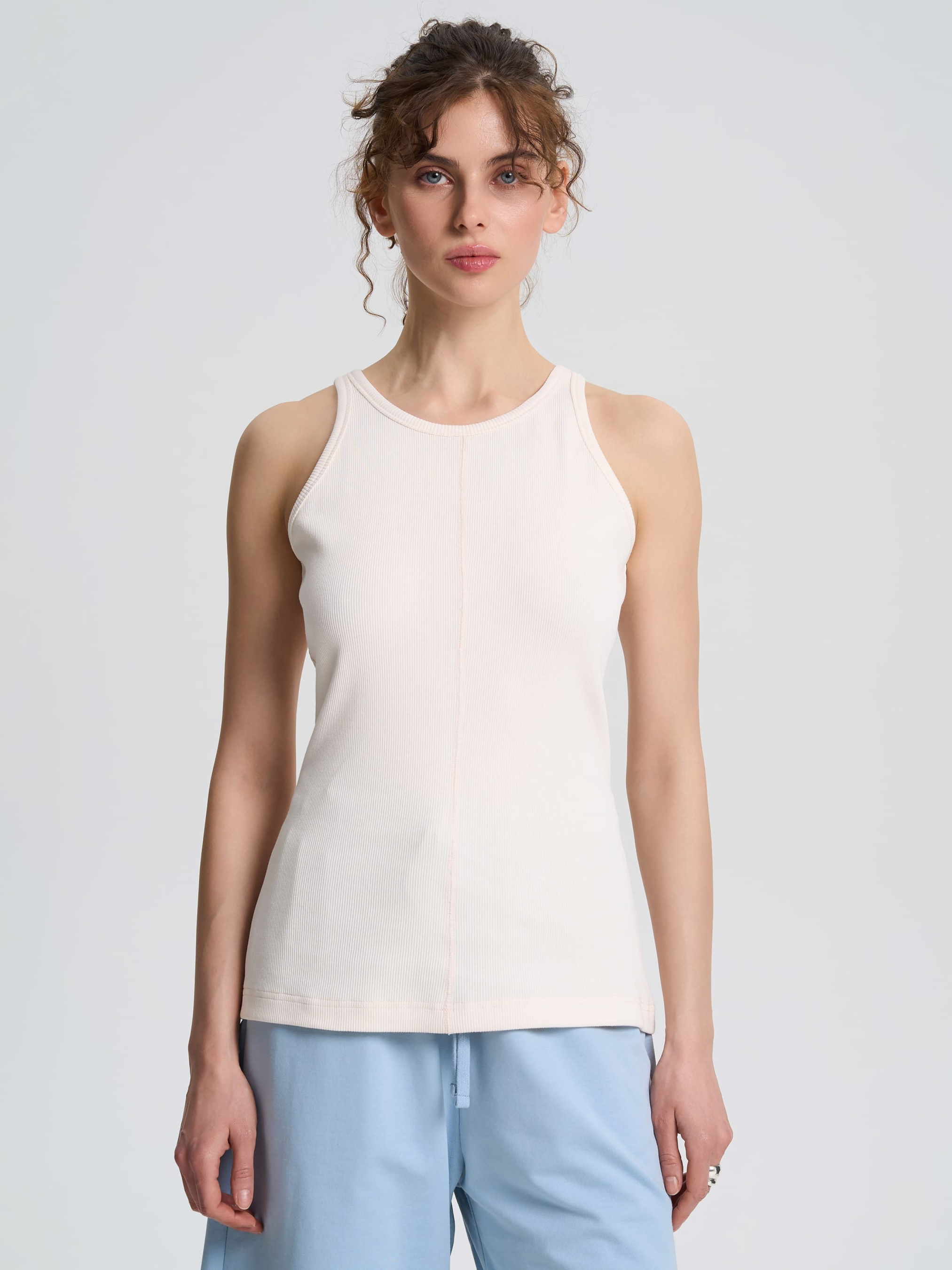 Женская майка приталенного силуэта – стильная и универсальная база для любого гардероба. Благодаря эластичному трикотажному полотну в рубчик идеально облегает фигуру, подчеркивая силуэт, но не сковывает движения. Горловина и проймы аккуратно обработаны бейкой, что обеспечивает комфорт в носке. Контрастный шов придает изделию характерный акцент. Майка прекрасно сочетается с джинсами, шортами или костюмами и подходит как для самостоятельной носки, так и для многослойных образов. Материал Изготовлена из трикотажного полотна "Ластик 2:1" (92% хлопок, 8% лайкра), майка приятная на ощупь, эластичная и хорошо держит форму. Благодаря хлопковому составу ткань пропускает воздух и обеспечивает комфорт даже в жаркую погоду, а лайкра придает упругость и износостойкость. Рекомендации по уходу Стирать при температуре до 40°C в деликатном режиме. Избегать интенсивного отжима и трения. Сушить в тени, избегая прямых солнечных лучей.