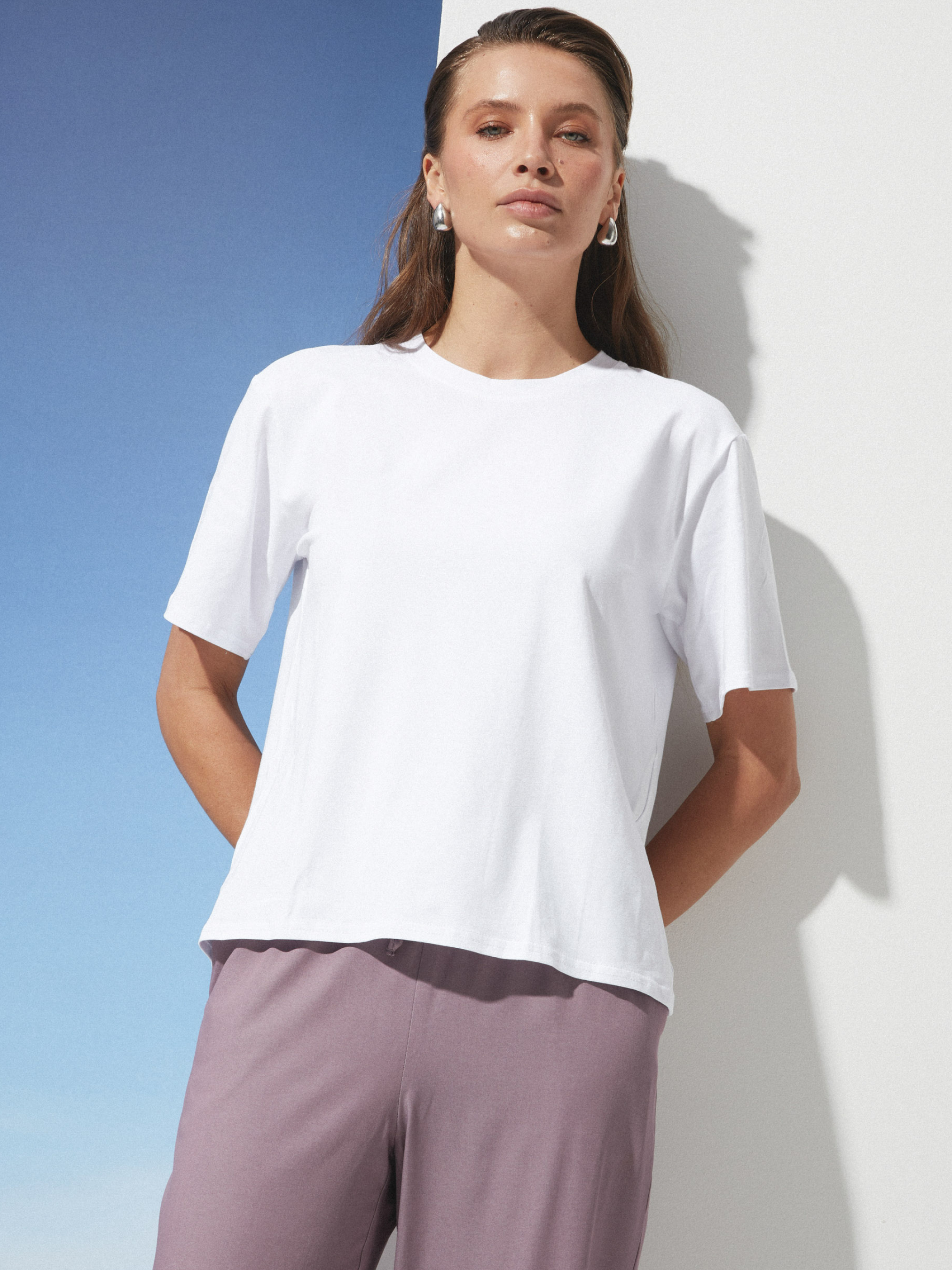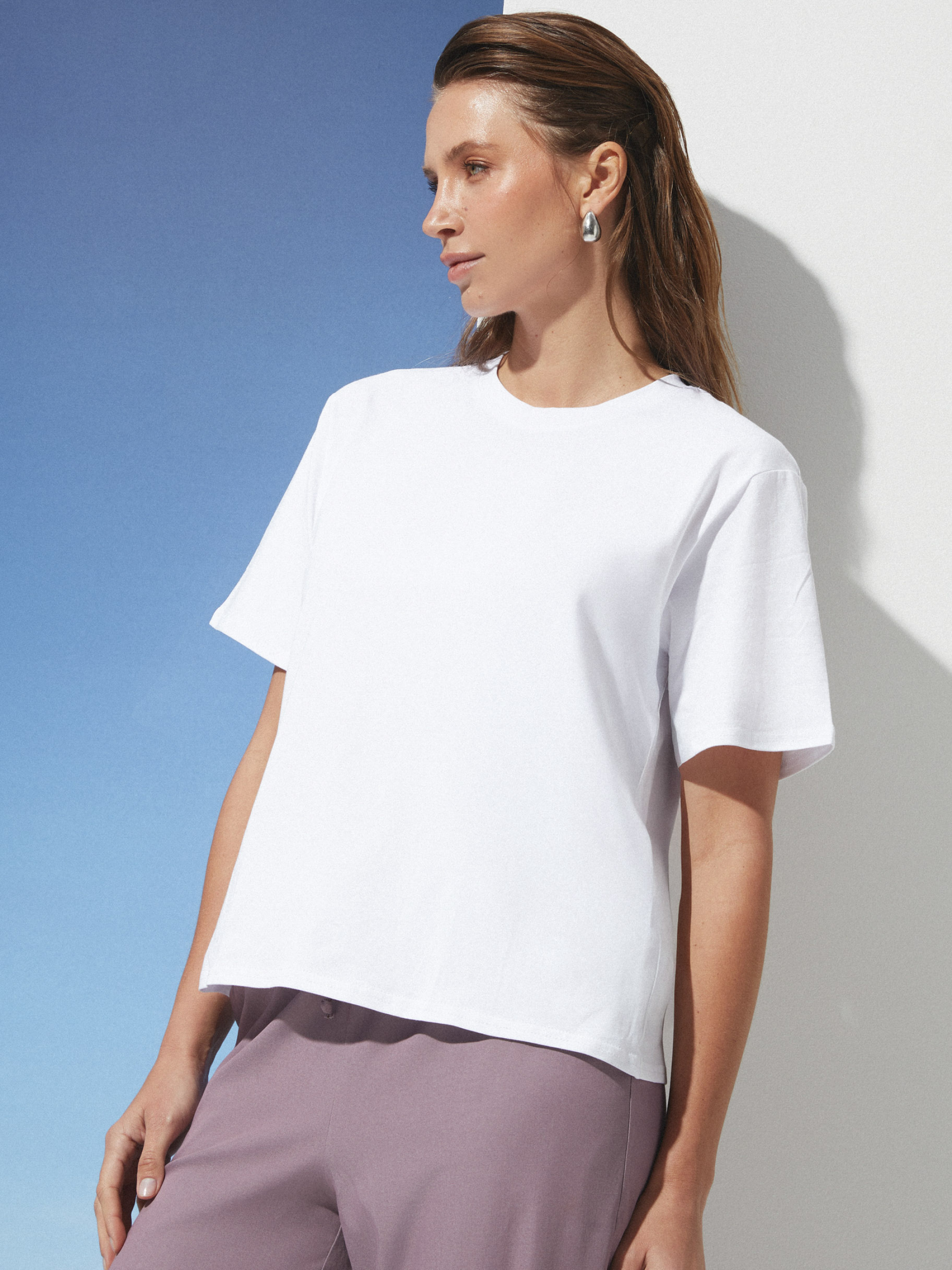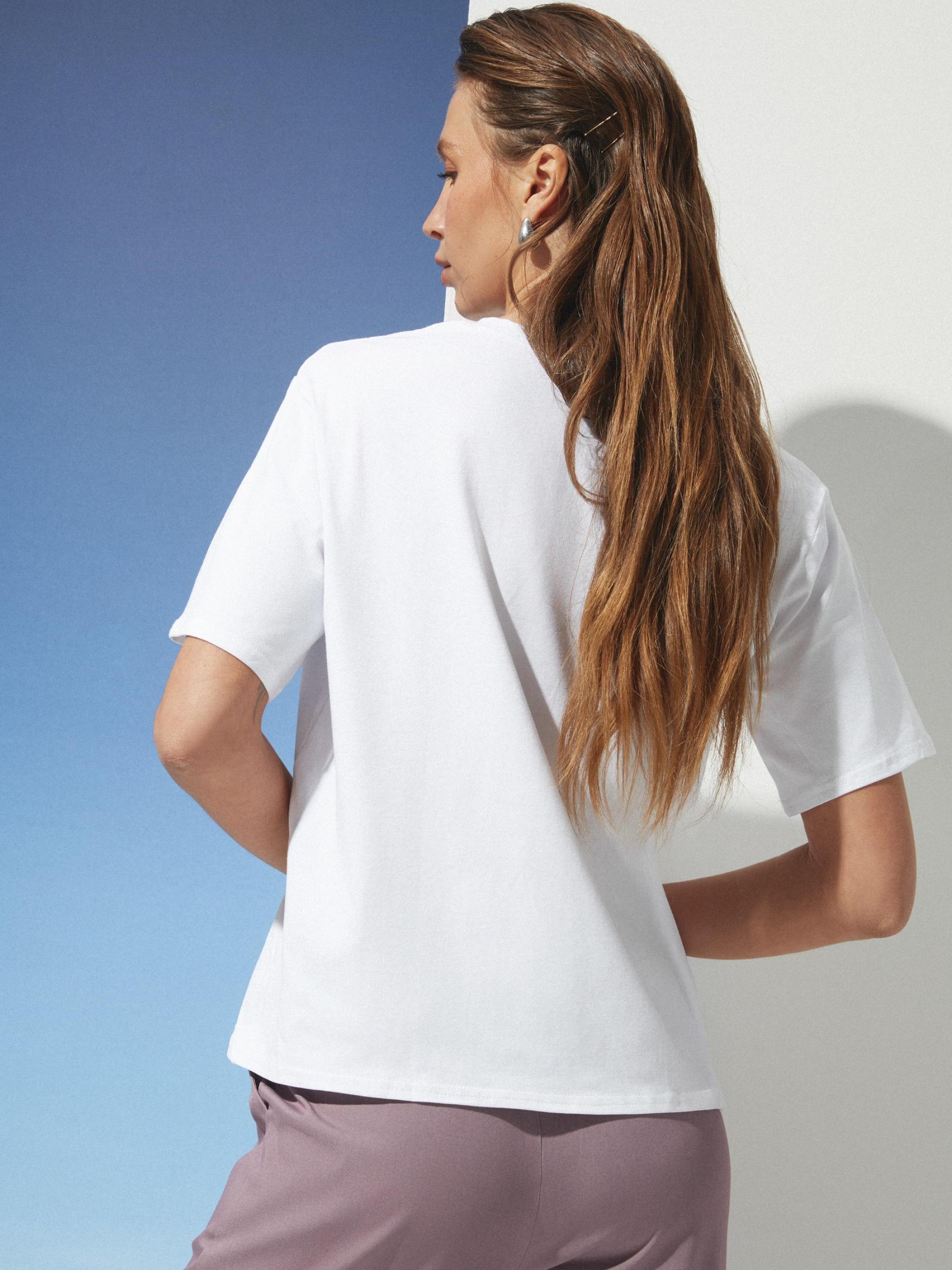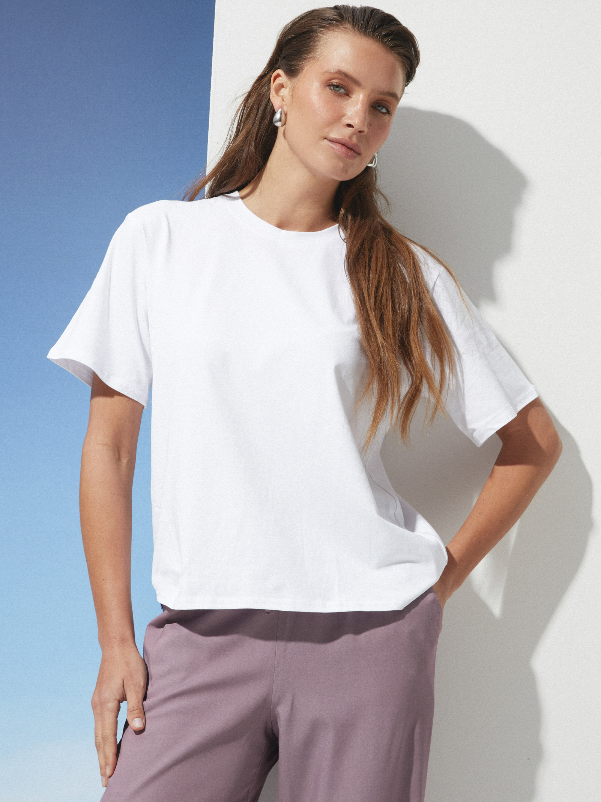 Базовая футболка на лето Фасон этой футболки создан для тех, кто ценит свободу движений и минимализм в деталях. Прямой крой без лишних складок и облеганий дарит комфорт и легкость даже в жаркие дни. Длина изделия гармонично ложится на тело, а рукава средней длины подчеркивают сдержанный стиль, который легко сочетается с любым низом. Материал состоит из хлопка, вискозы и эластана, что обеспечивает мягкость и приятные ощущения на коже. Ткань дышит, позволяя телу оставаться прохладным и свежим даже в жару, а эластан добавляет изделию эластичности для комфортной посадки. Уход за футболкой простой и деликатный. Ручная или машинная стирка при температуре до 30 градусов сохранит форму и текстуру ткани, а избегание агрессивных средств и машинной сушки позволит сохранить мягкость и внешний вид даже после многократных стирок. Размерная сетка представлена тремя группами. Для S-M обхват груди составляет 84–88 см, талии 68–72 см, длина изделия 64 см, рукав имеет длину 23 см. Для L-XL параметры — 92–96 см в груди, 76–81 см в талии, длина изделия 65 см, рукав 23 см. Размеры XXL-3XL рассчитаны на обхват груди 100–105 см и талии 86–91 см, длина изделия 66 см, длина рукава остается такой же — 23 см. Эта футболка — выбор для тех, кто хочет ощущать легкость и комфорт каждый день, не жертвуя стилем. Она станет надежной базой для ярких образов и незаменимым атрибутом вашего гардероба.