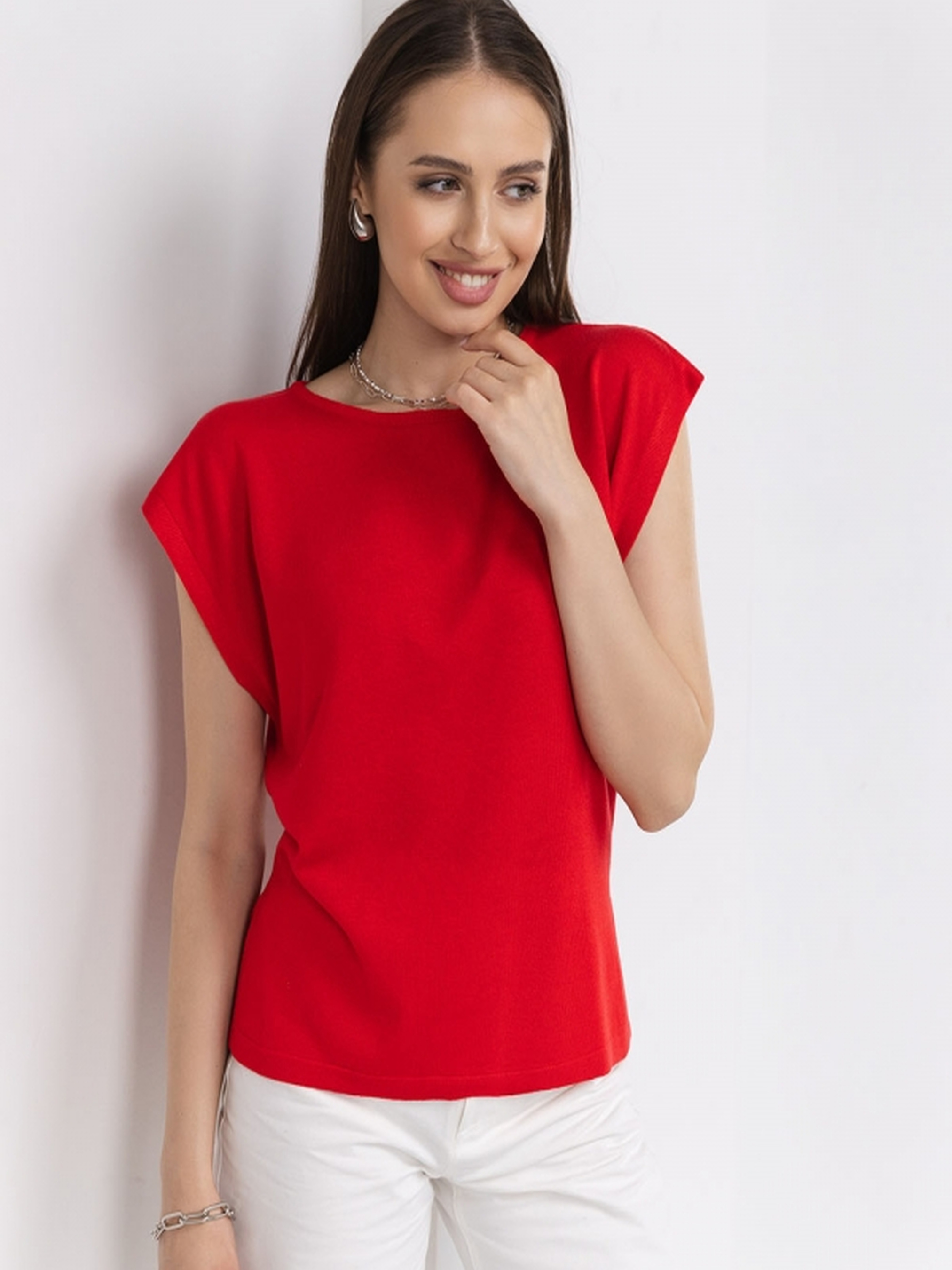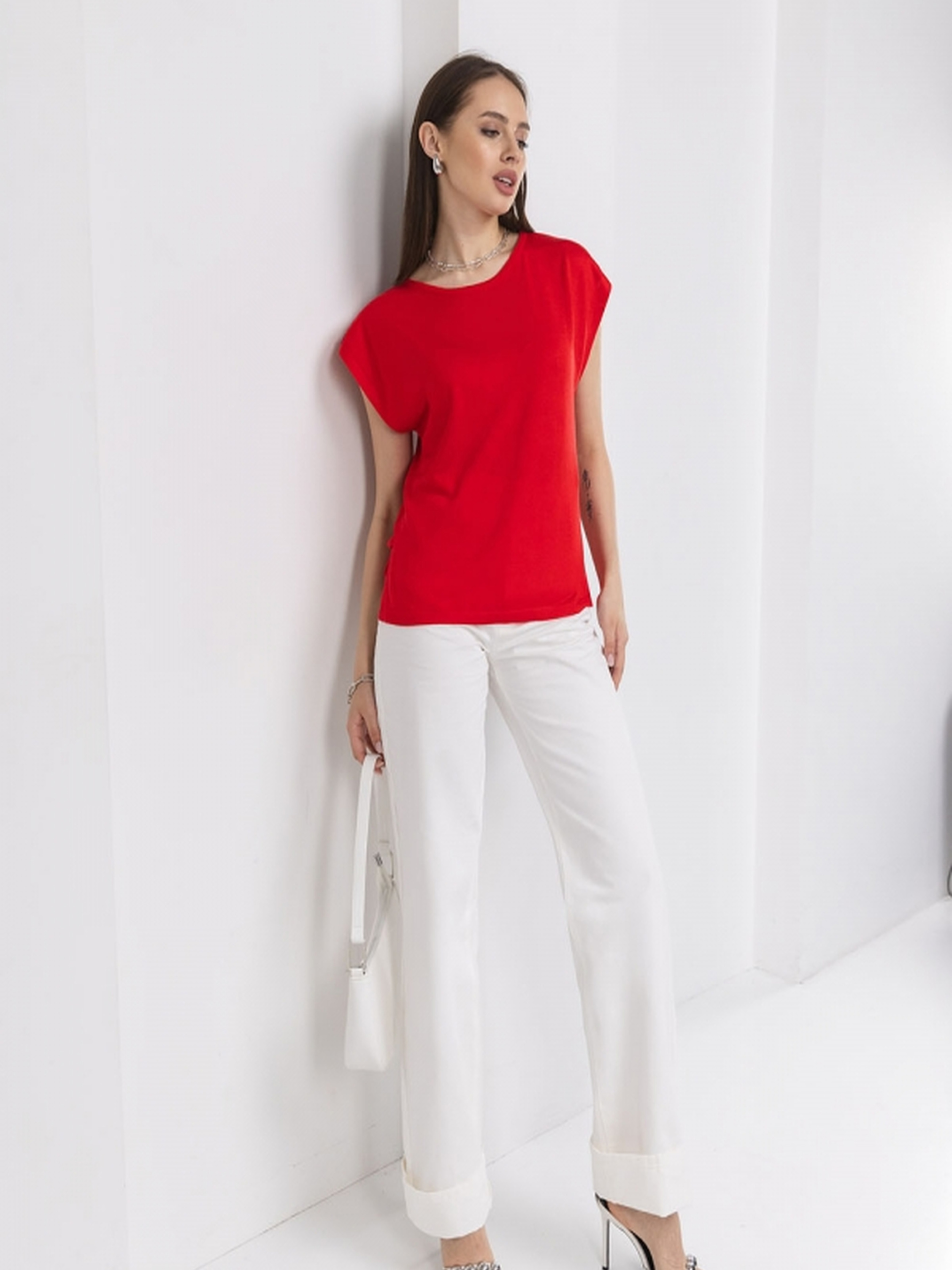 Легкий і ніжний топ із шовковистої пряжі з включенням бавовни та віскози — ідеальний варіант для повсякденного образу. Комфортний вільний крій та делікатна фактура забезпечують зручність протягом усього дня. Гармонійно поєднується як із трендовими широкими брюками, так і з класичними вузькими фасонами. . Натуральна пряжа з віскозою та бавовною . Вільний комфортний силует . Еластична планка по горловині . Ідеальний для багатошарових образів . Довжина: близько 57–58 см (+- 2 см) . Ширина під проймою: 51–56 см / 53–58 см . Ширина у талії: 47–49 см / 49–51 см . Ширина по низу: 48–50 см / 50–52 см . Ширина плеча: 16–18 см