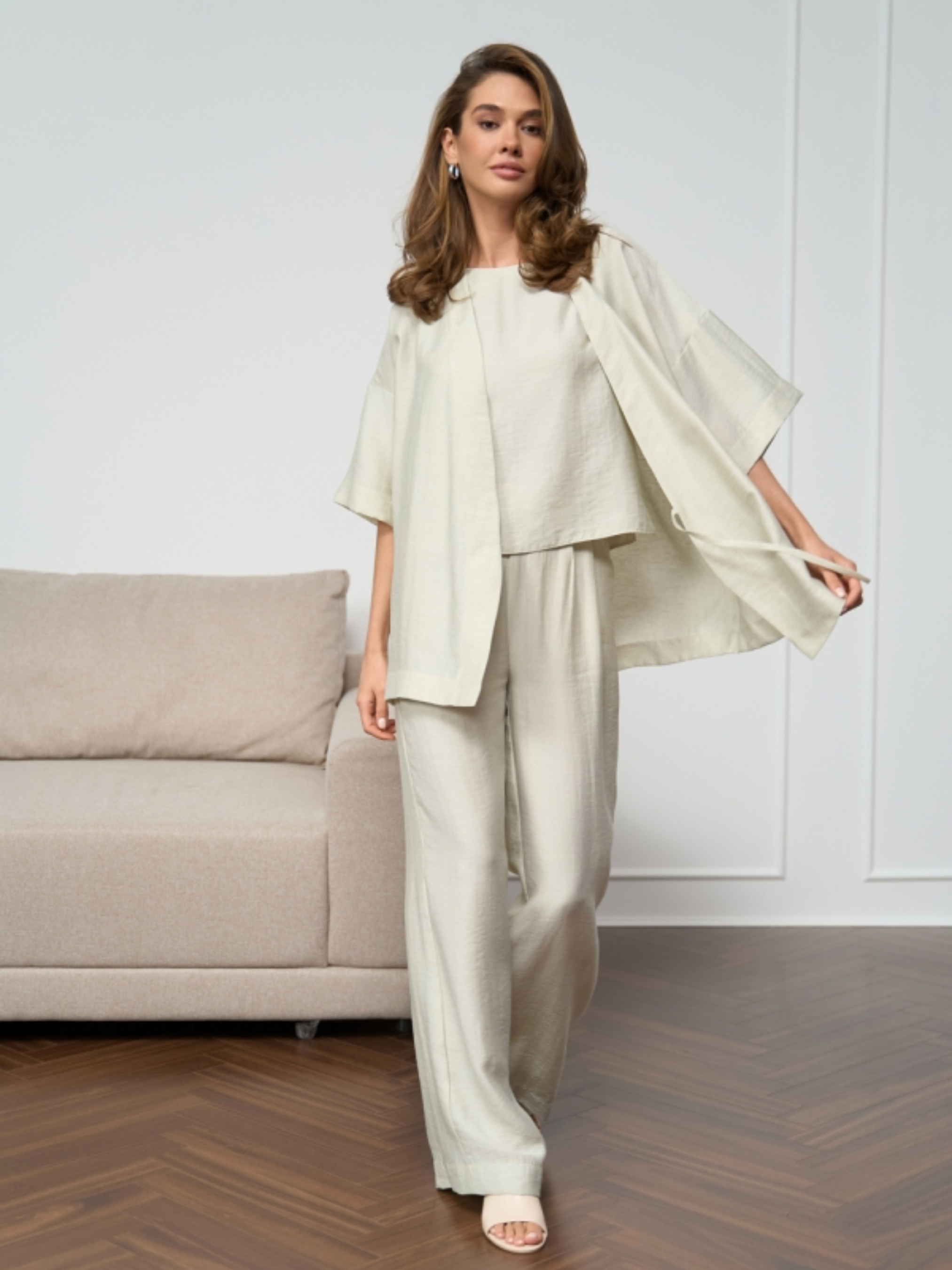 Легкий, дихаючий топ з натуральної тканини — ідеальний вибір для спекотної погоди. Виготовлений із суміші віскози та льону, цей топ забезпечує максимальний комфорт, приємний на дотик і добре пропускає повітря. Модель має прямий крій, що підходить для будь-якого типу фігури, та охайні бічні розрізи, які додають зручності у русі. Завдяки лаконічному дизайну та натуральному складу, топ легко комбінується з брюками, джинсами, шортами чи спідницями. Основні характеристики: Прямий силует Натуральна тканина з віскозою та льоном Дихаючий, легкий і приємний до тіла Акуратні бокові розрізи (довжина 6–6,5 см) Довжина виробу: 54–55–56 см (±2 см) Ширина під проймою: 47–51–55 см Ширина по низу: 52–56–60 см Ширина плеча: 7–7,5 см Висота пройми: 22–24–26 см Цей базовий топ — ідеальний варіант для літнього гардеробу: мінімалізм, комфорт і натуральність в одному виробі.