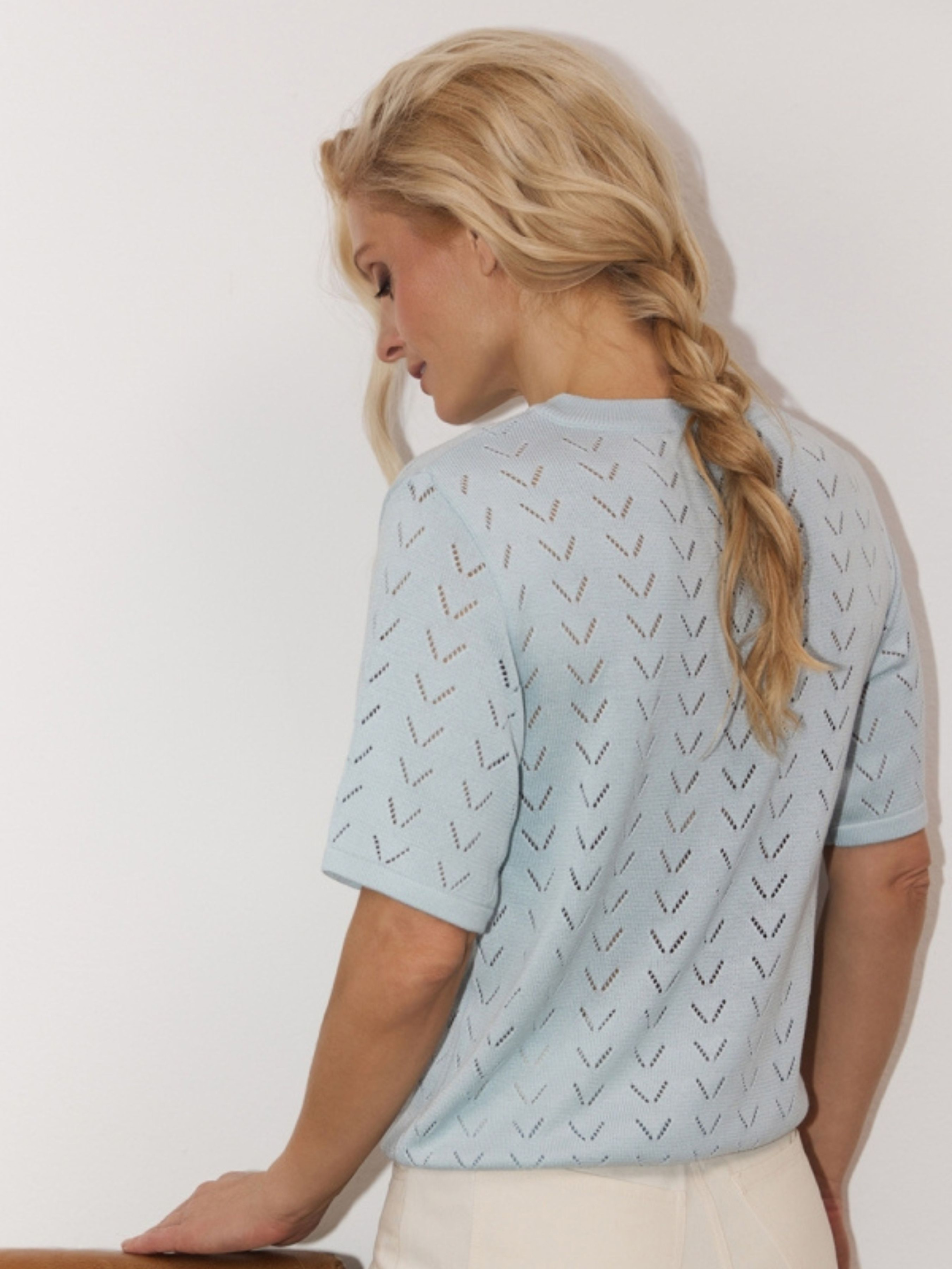 Жіночий ажурний топ із віскози, Блакитний TrikoBakh (2915) модель 2915-nebesnij