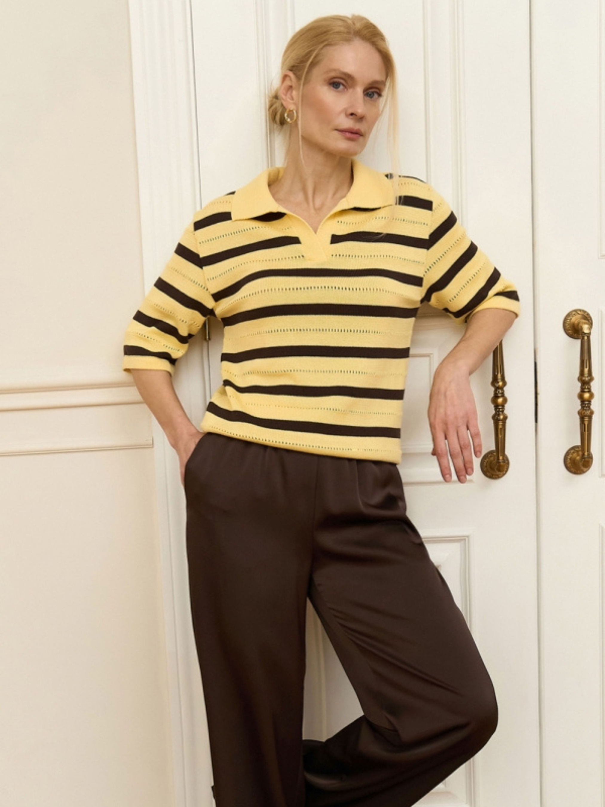 Жіноче поло у смужку з коротким рукавом, Лимонний TrikoBakh (2947) модель 2947-limon-shokolad