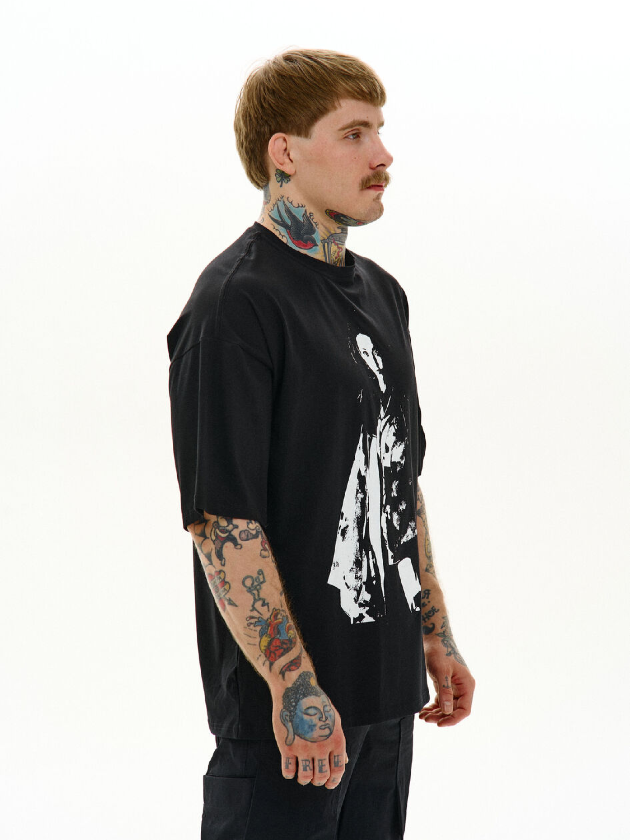 Состав ткани: 95% котон, 5% полиэстер Описание материалов и фурнитуры: Хлопок с небольшим добавлением полиэстера – приятный к телу, лучше сохраняет форму, меньше садится после стирки. Идеальный баланс комфорта и износостойкости. Ключевые особенности модели: Футболка свободного кроя с круглым воротником и удлиненными рукавами. На груди большой шелкотрафаретный принт, задающий настроение с первого взгляда. Рекомендации по уходу: Машинная стирка при макс. 30 ºC Нельзя использовать отбеливатель Глажка при макс. 150 ºC Химчистка не допускается Не сушить в сушилке