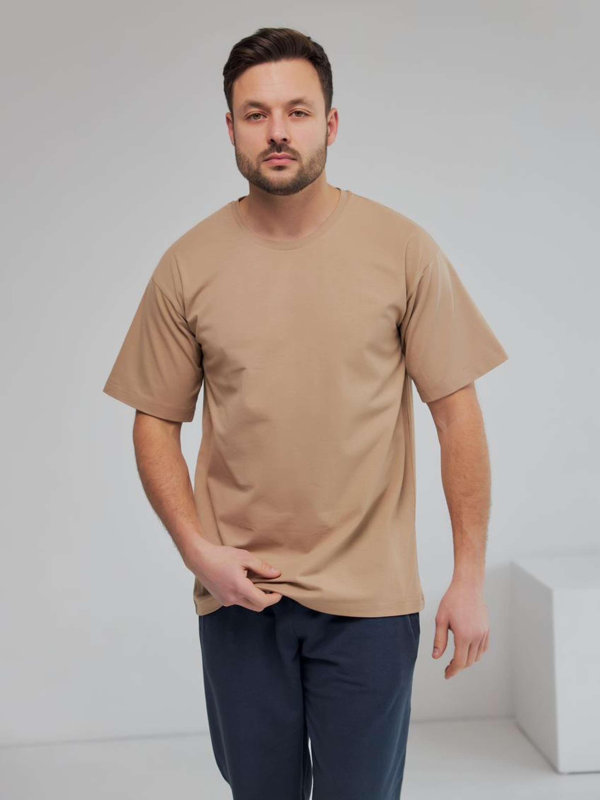 Мужская однотонная футболка — стиль и комфорт на каждый день Стильная однотонная футболка из хлопкового трикотажа с добавлением эластана — идеальный выбор для повседневного гардероба. Мягкий, приятный к телу материал обеспечивает комфорт в течение всего дня, а эластан помогает футболке сохранять форму после множества стирок. Материал: 95% хлопок — дышащий, натуральный и износостойкий материал; 5% эластан — придаёт ткани лёгкую эластичность и обеспечивает идеальную посадку. Детали и крой: Классический прямой крой, подходящий для любого типа фигуры; Круглый вырез горловины — лаконично и удобно; Фирменная бирка с логотипом бренда вшита в боковой шов — акцент на деталях. Сезонность: Подходит для круглогодичного ношения — одинаково комфортна летом и зимой.