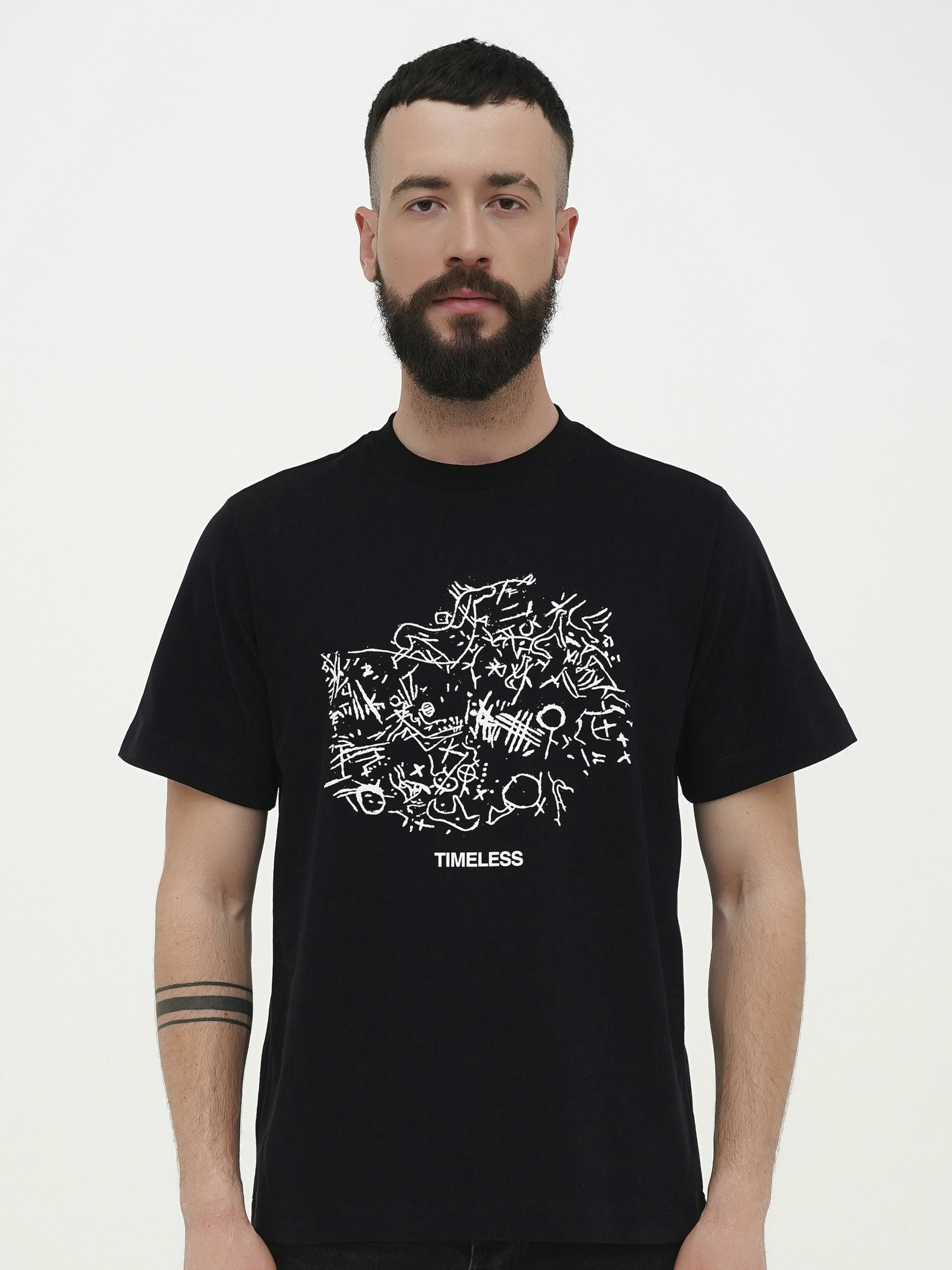 Петроглифы — древние резьбы на камне. Но это не просто рисунки. Это воспоминания, прошедшие сквозь тысячелетия — не на бумаге, а на скале. Каждый петроглиф зафиксировал действие, ритуал, целый мир. Это не иллюстрации — это реальность другого порядка. Там, где ещё не существовало письма, уже жила осознанность. Её вырезали на камне с помощью кремня: небо, охотник, огонь, враг, дух. Всё, что имело значение, — оставалось. Петроглифы — это наш древнейший язык. Язык предков. Именно это мы отразили в принте “Timeless”. “Timeless” — это не просто слово. Это состояние. Мы создавали эту футболку, думая не о моде, а о вечности. О идеях, которые не стареют. О силе, неподвластной времени и трендам. UNCHAIN. Streetwear that speaks. Детали: • Классический крой • Цвета: молочный или чёрный • Шёлкотрафаретная печать: — Спереди: принт “Timeless” на фоне неолитических петроглифов (Азовский регион) • Материал: 100% хлопок высокой плотности (300 г/м²) • Модель на фото в размере: M Рекомендации по уходу: • Машинная стирка до 30°C • Не использовать отбеливатель • Гладить с изнанки при температуре до 150°C • Не использовать сушильную машину