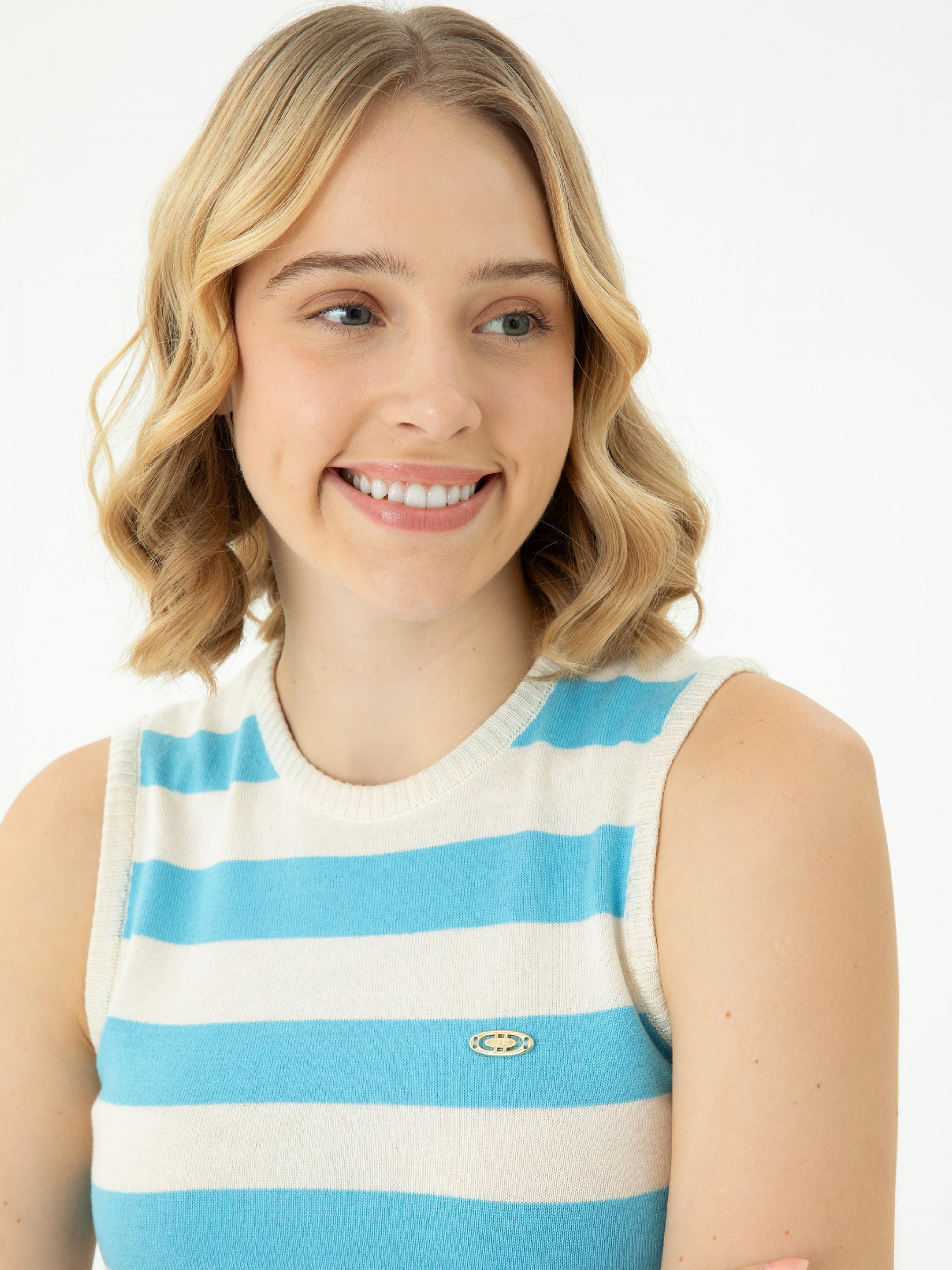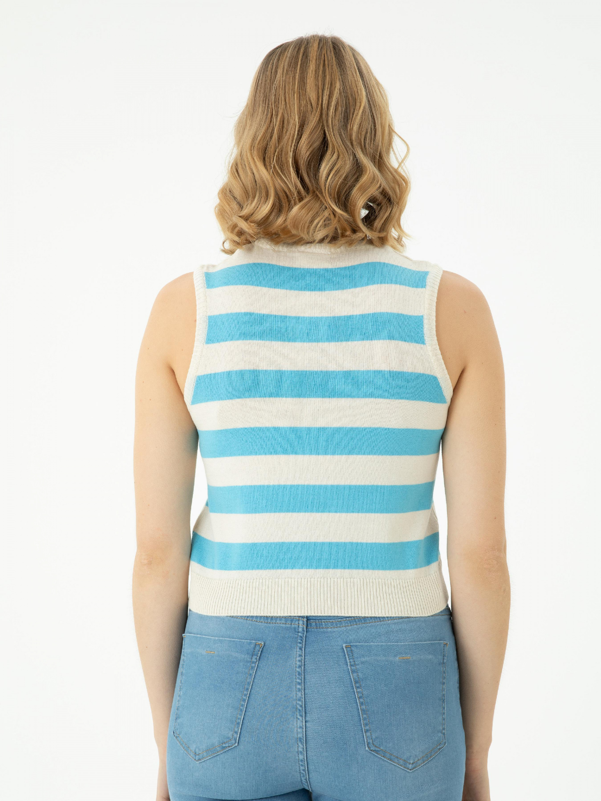 Цвет: бирюзовый Состав: 100% хлопок Вырез горловины: круглий Длинна рукава: без рукава Фасон: прямой Обхват груди: 83см Обхват талии: 65 см Размер на модели: ХS LID-2254