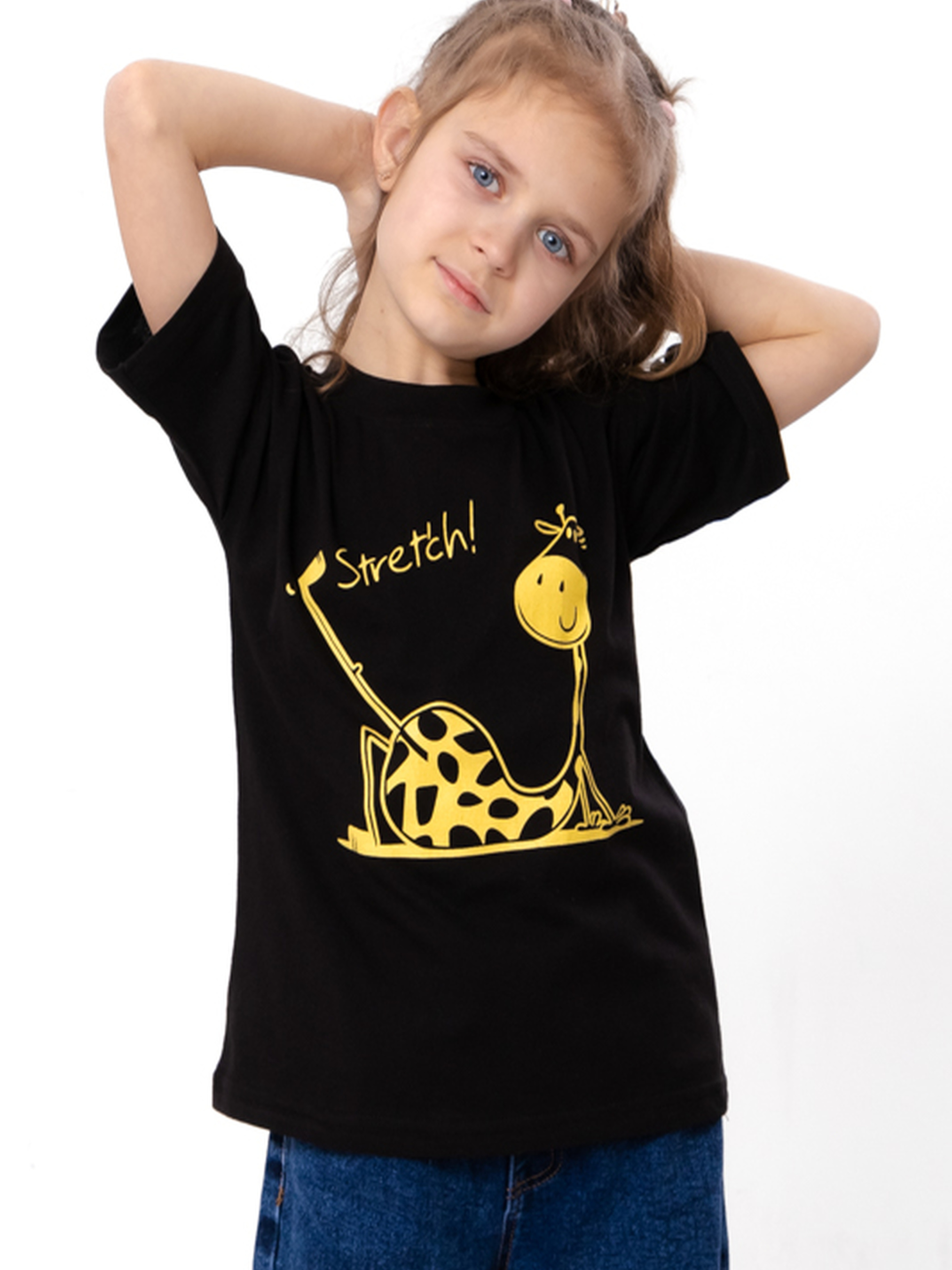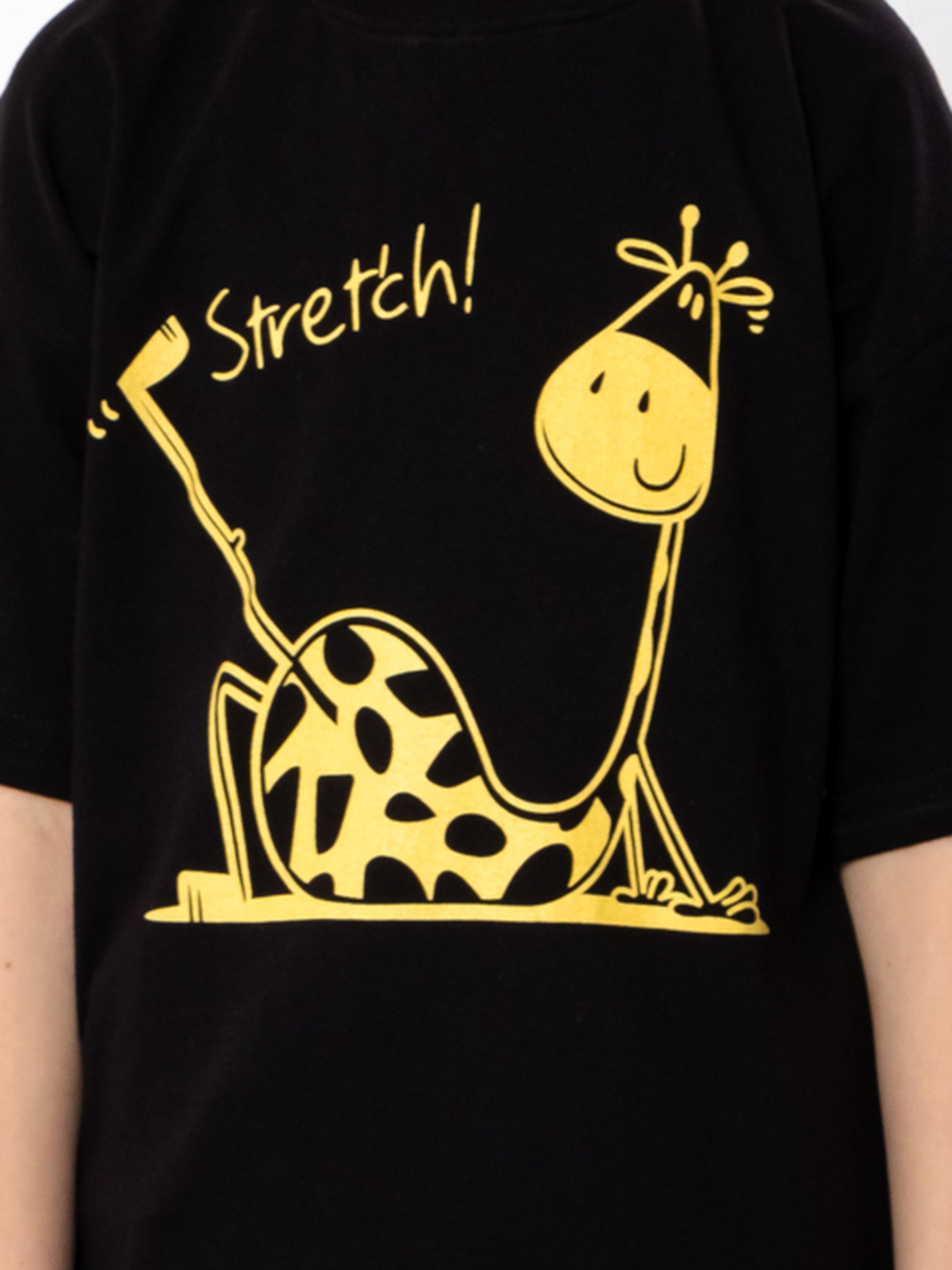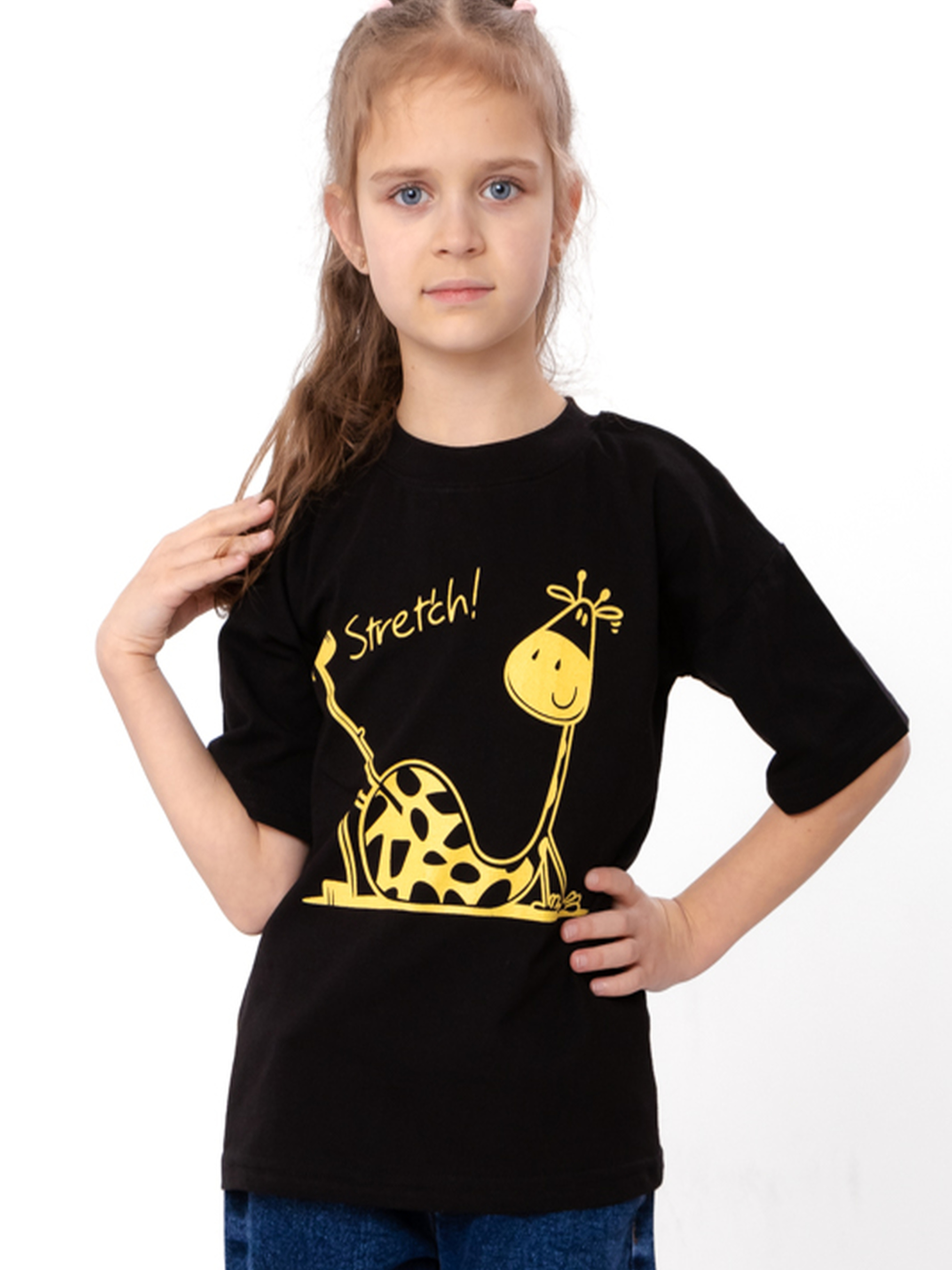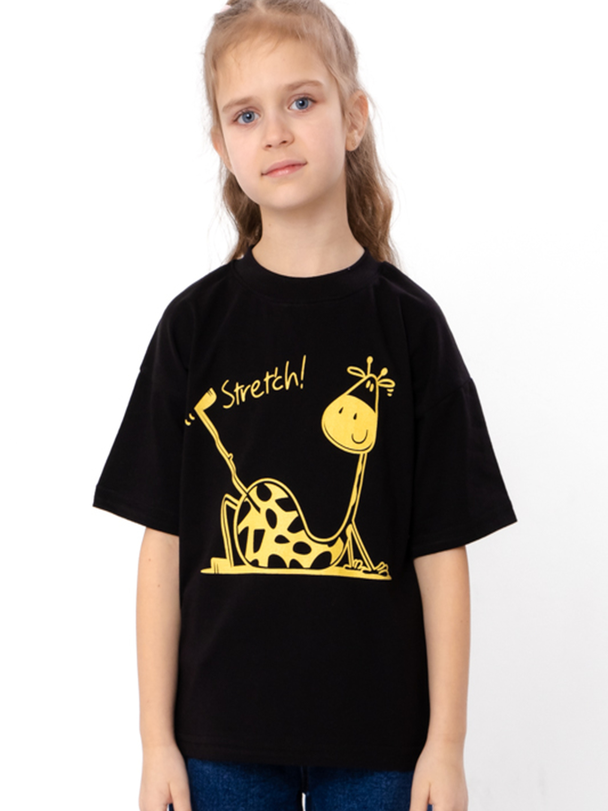 Футболка для дівчинки з принтом жирафа та написом Stretch, Чорний Носи Своє (6414-001-33-5-4) модель 6414-001-33-5-4-chornij-zhirafa