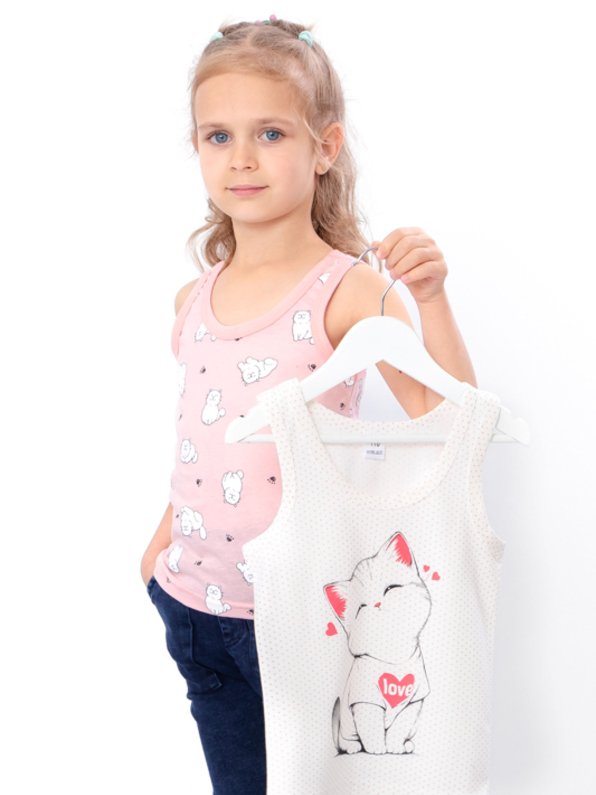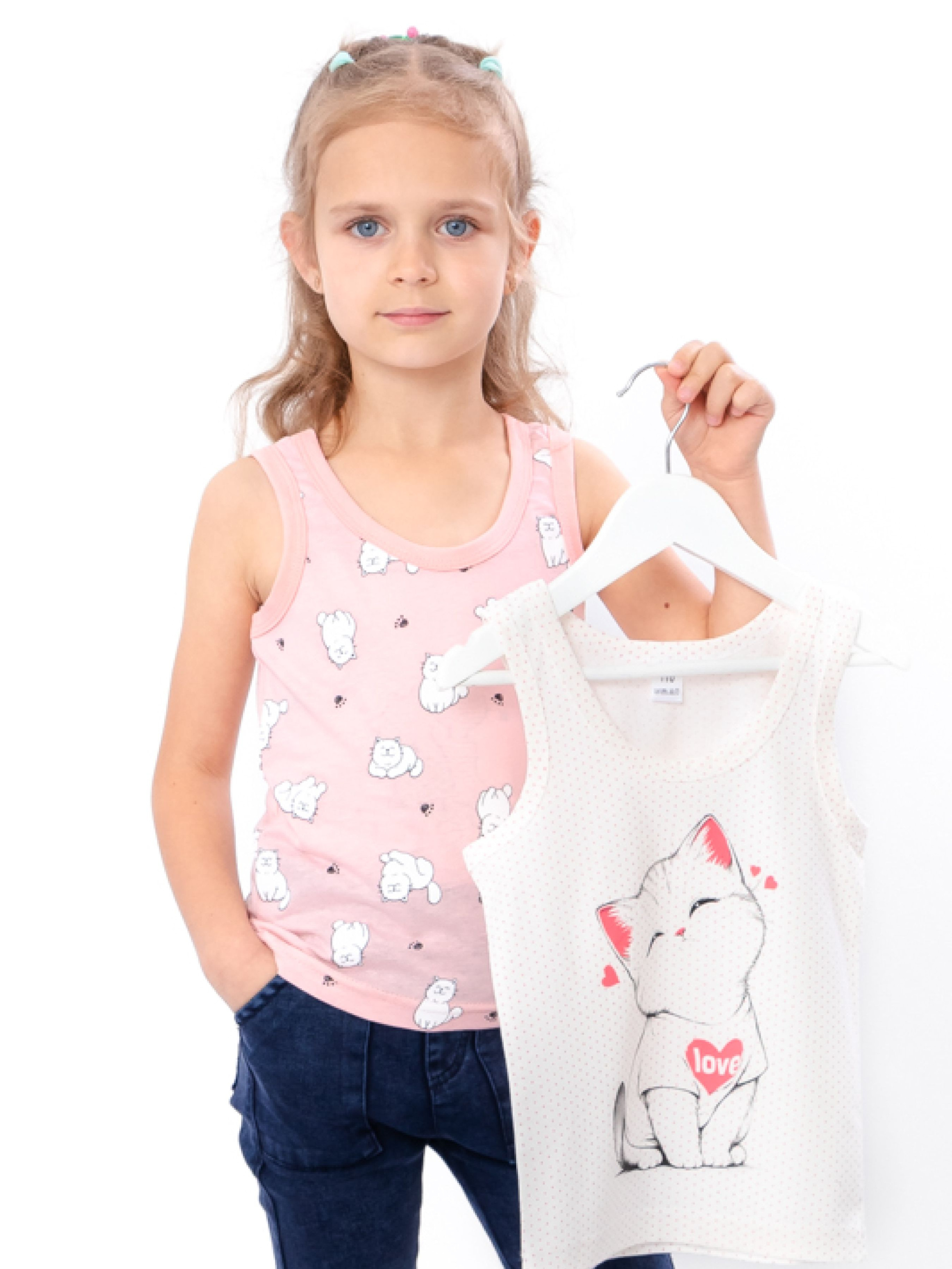 Полотно: кулір однотонний, кулір принтований Склад полотна: 100% бавовна Зріст: 98-110 Комплект з двох майок для дівчинки – ідеальний вибір для літнього гардеробу. Виготовлений з високоякісних, м'яких та дихаючих матеріалів, цей комплект забезпечує комфорт та зручність протягом усього дня. Майки мають стильний дизайн і модні кольори, які легко комбінуються з іншими елементами одягу. Вони підійдуть для прогулянок, ігор на вулиці та активного відпочинку. Замовте комплект майок для дівчинки та подаруйте їй стильний та зручний одяг для кожного дня.