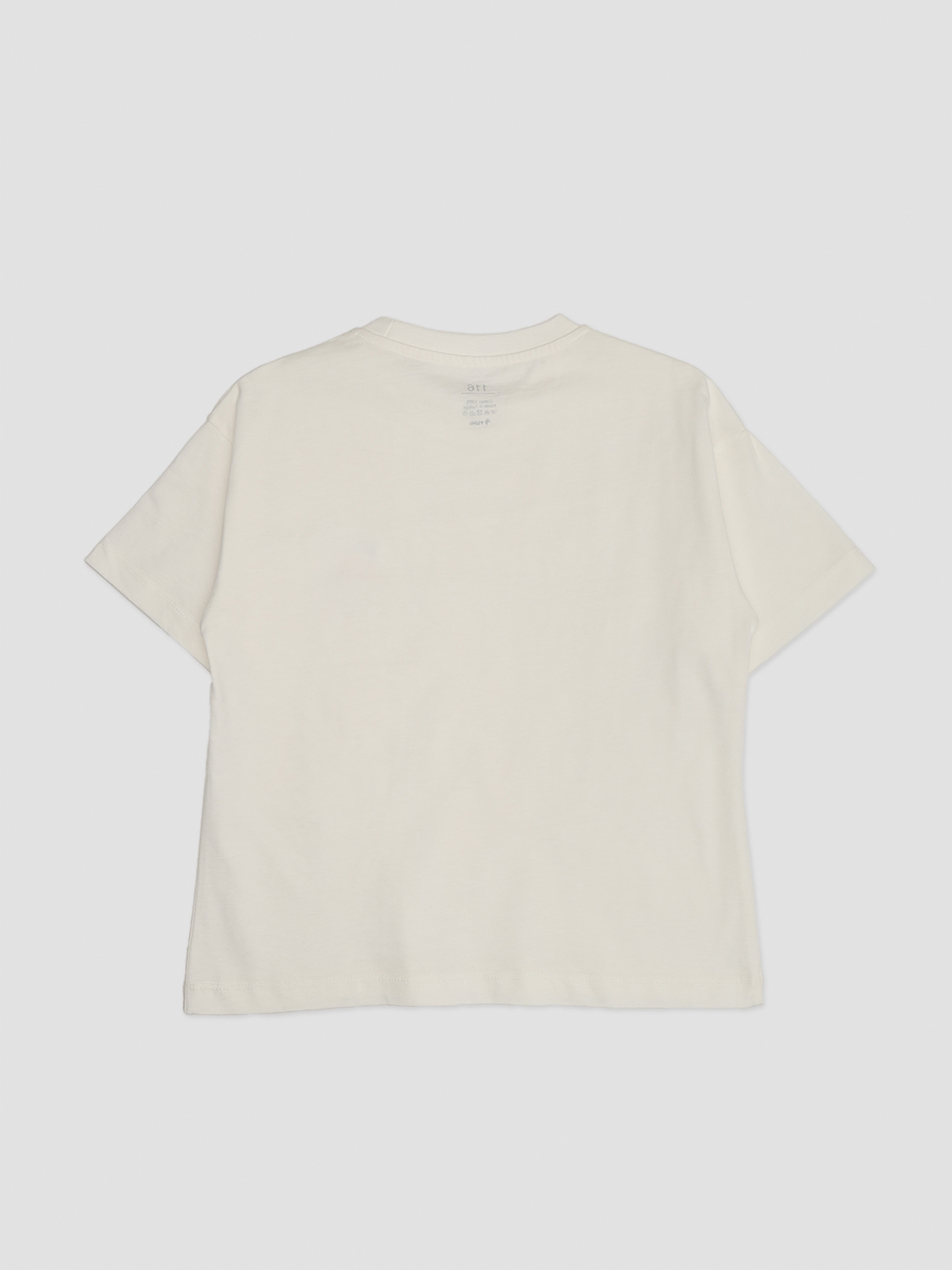 Футболка с коротким рукавом для девочки – идеальный выбор на каждый день. Она сочетает в себе комфорт и современный дизайн, что делает ее отличным дополнением к детскому гардеробу. Легкая и приятная на ощупь ткань позволяет коже дышать, обеспечивая комфорт даже в жаркие дни. Благодаря удобному крою футболка не сковывает движений, что особенно важно для активных детей. Спокойный цвет добавляет стильный акцент, позволяя создавать модные образы. Идеально подходит для прогулок, игр и отдыха, сочетаясь с джинсами, шортами или спортивными штанами. Особенности изделия: Цвет: молочный. Материал изготовления: трикотаж. Состав: 100 % хлопок. Крой: оверсайз. Длина футболки: средняя. Размерный ряд: 116 – 152. Сезон: лето. Страна производитель: Турция.