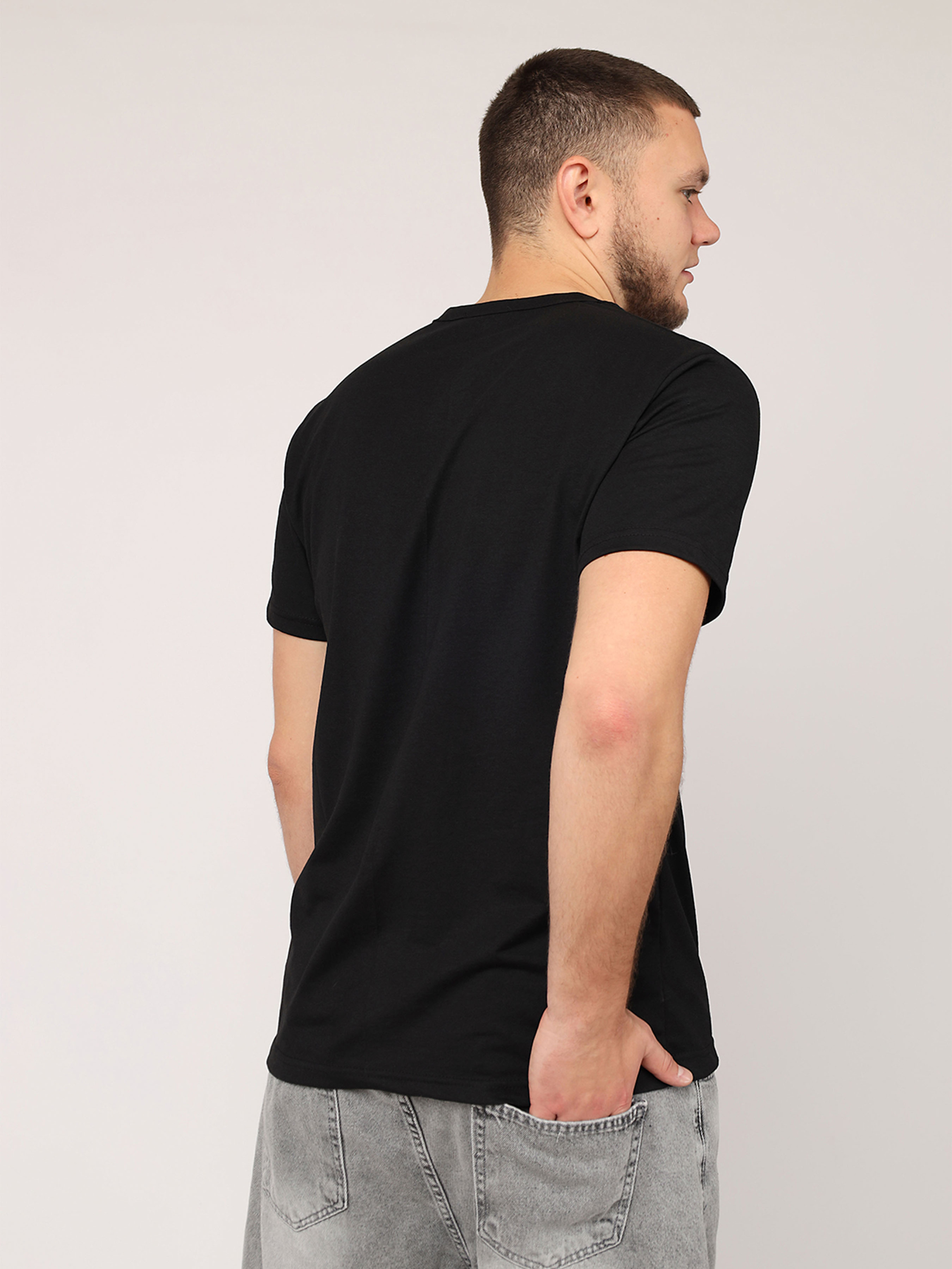 Футболка с коротким рукавом мужская - это универсальный элемент гардероба, который идеально подходит для повседневной носки. Ее простой, но стильный дизайн делает ее незаменимой для создания комфортных и непринужденных образов. Изготовленная из мягкой, приятной к телу ткани, она обеспечивает удобство в течение всего дня, будь то прогулка по городу, встреча с друзьями или отдых дома. Удобный крой подчеркивает мужественность силуэта, а короткие рукава добавляют легкости и свободы движений. Эта футболка легко сочетается с джинсами, шортами или спортивными штанами, позволяя создавать разнообразные образы на любой вкус. Она станет базовой вещью для тех, кто ценит практичность и стиль в повседневной жизни. Особенности изделия: Цвет: черный, с декоративным принтом. Материал изготовления: трикотаж. Состав: 50 % хлопок, 50 % полиэстер. Крой: прямой. Длина футболки: средняя. Сезон: лето. Параметры модели: Рост: 185 сантиметров. Размер на модели: 50. Страна производитель: Турция.