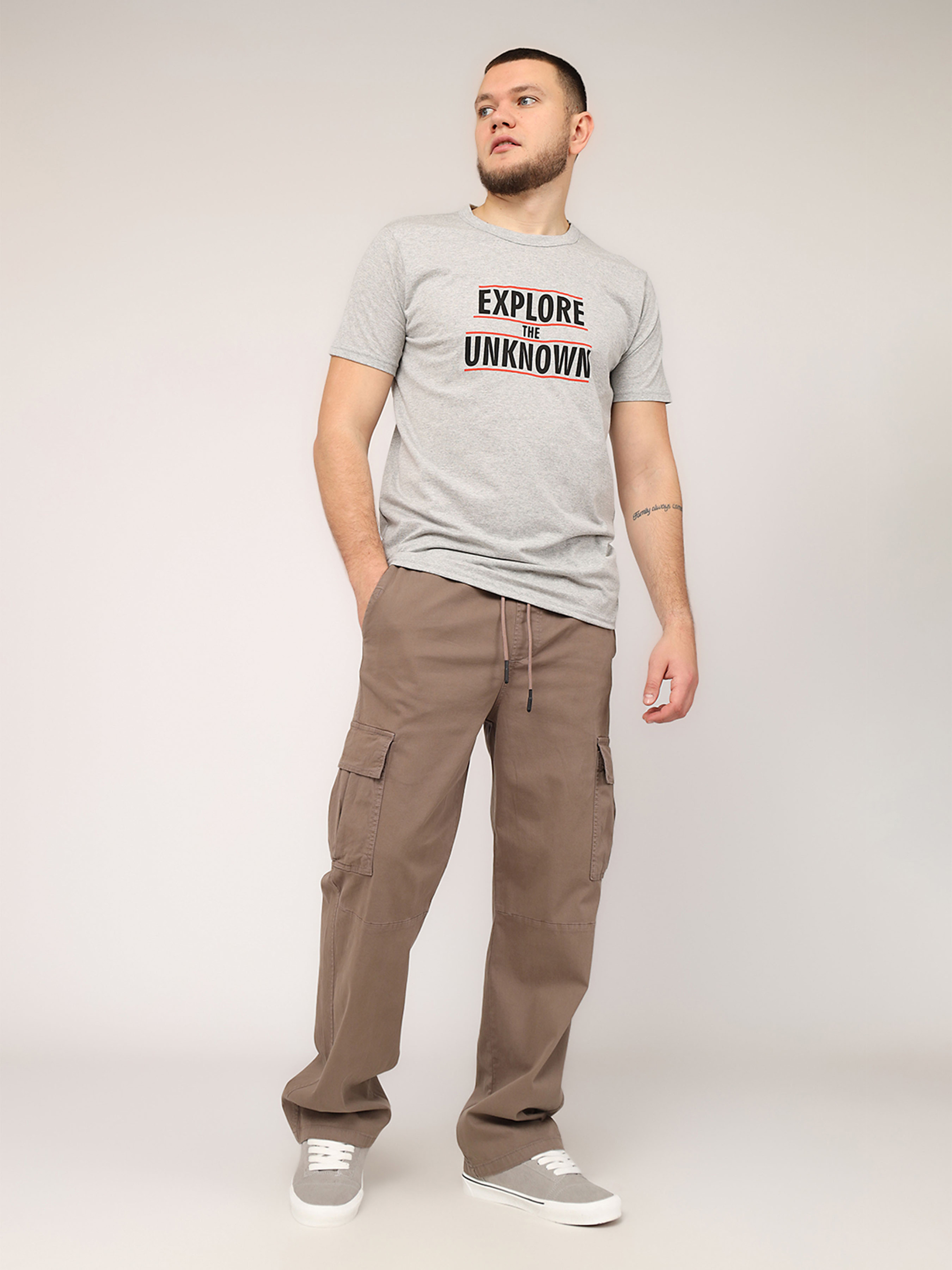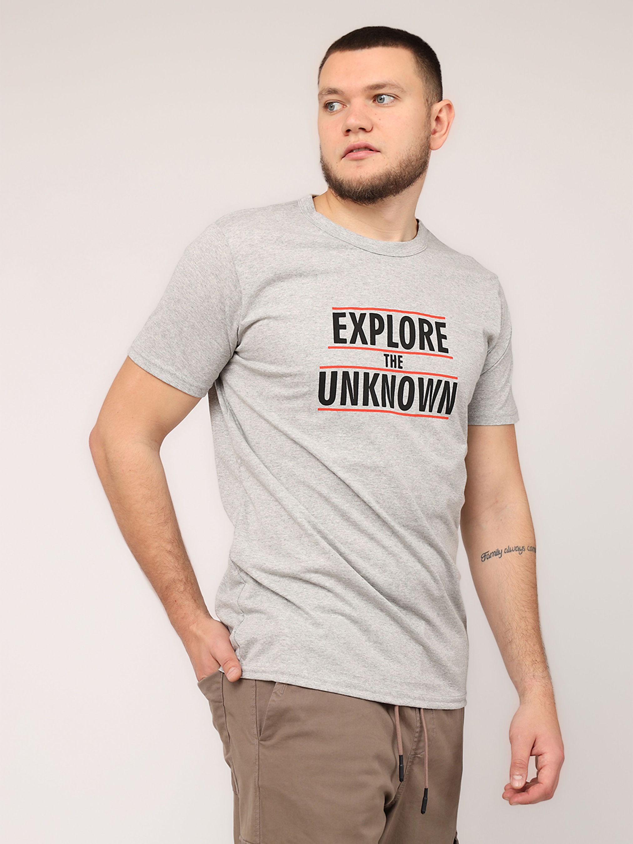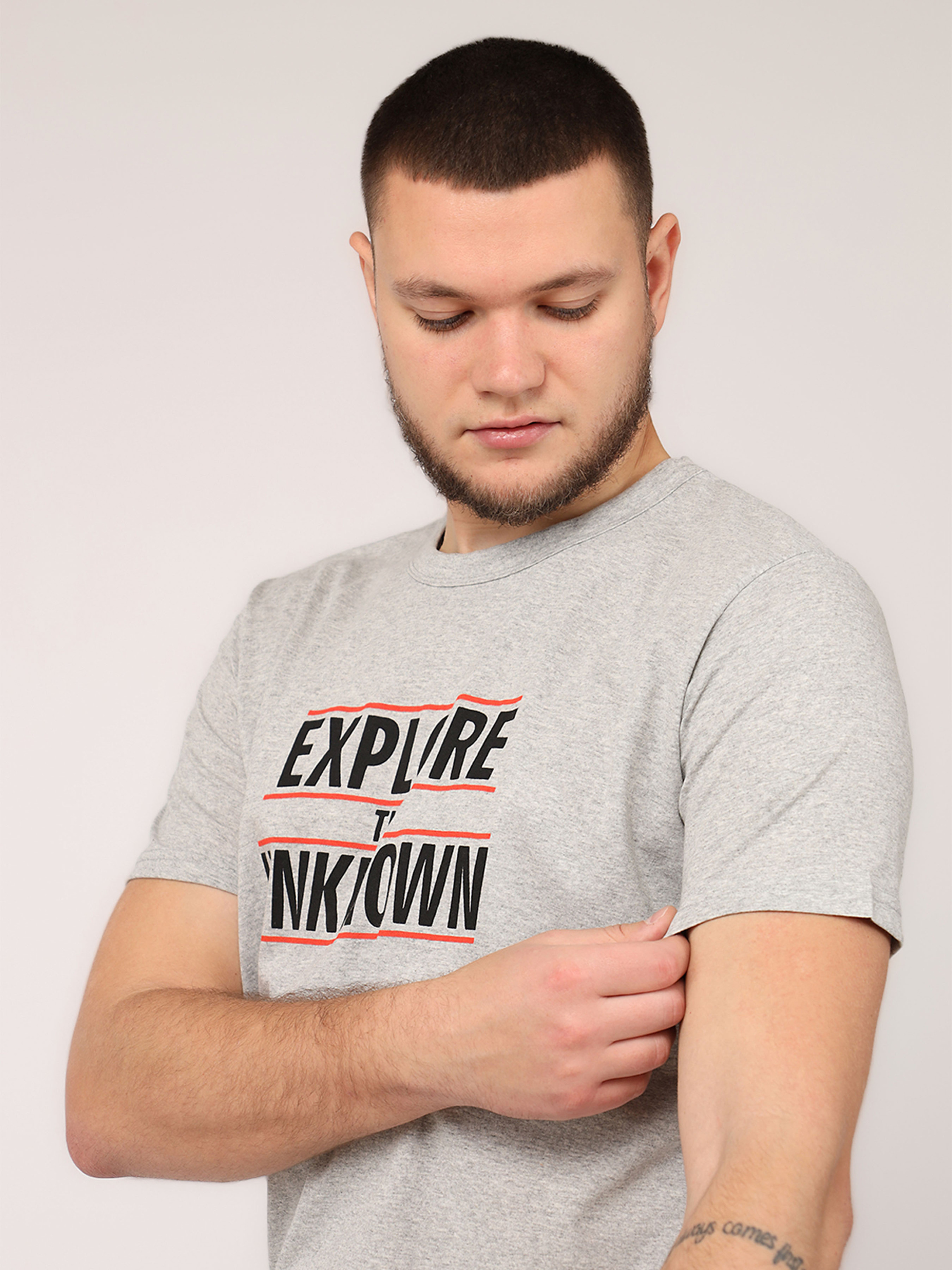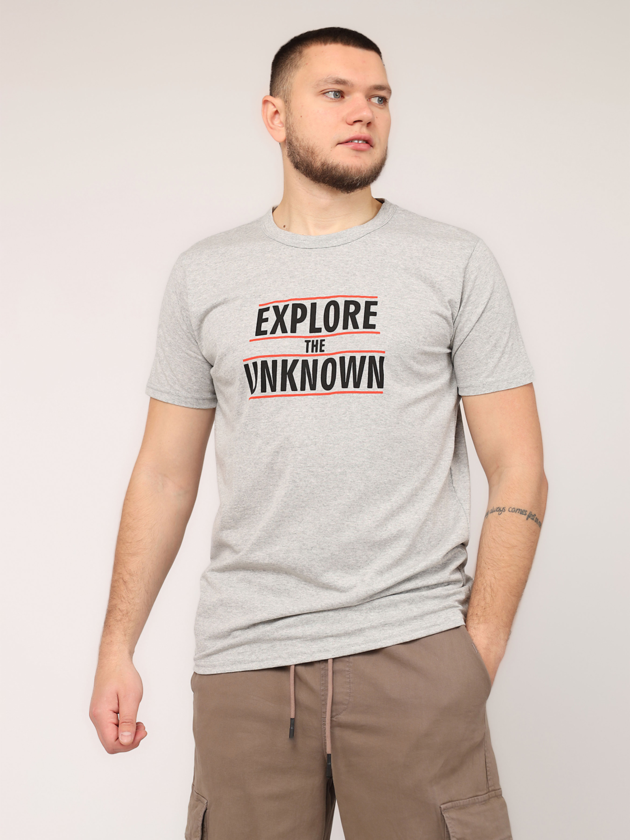 Футболка с коротким рукавом мужская - это универсальный элемент гардероба, который идеально подходит для повседневной носки. Ее простой, но стильный дизайн делает ее незаменимой для создания комфортных и непринужденных образов. Изготовленная из мягкой, приятной к телу ткани, она обеспечивает удобство в течение всего дня, будь то прогулка по городу, встреча с друзьями или отдых дома. Удобный крой подчеркивает мужественность силуэта, а короткие рукава добавляют легкости и свободы движений. Эта футболка легко сочетается с джинсами, шортами или спортивными штанами, позволяя создавать разнообразные образы на любой вкус. Она станет базовой вещью для тех, кто ценит практичность и стиль в повседневной жизни. Особенности изделия: Цвет: светло-серый, с декоративным принтом. Материал изготовления: трикотаж. Состав: 50 % хлопок, 50 % полиэстер. Крой: прямой. Длина футболки: средняя. Сезон: лето. Параметры модели: Рост: 185 сантиметров. Размер на модели: 50. Страна производитель: Турция.