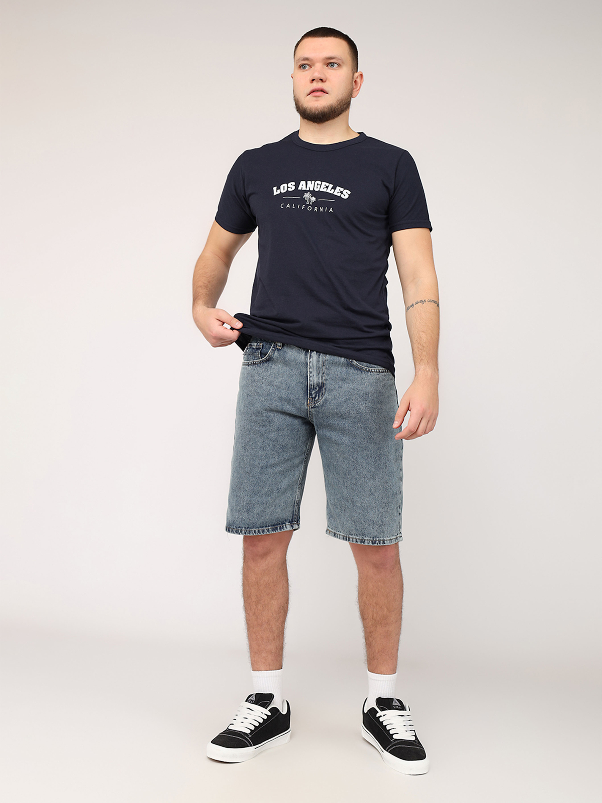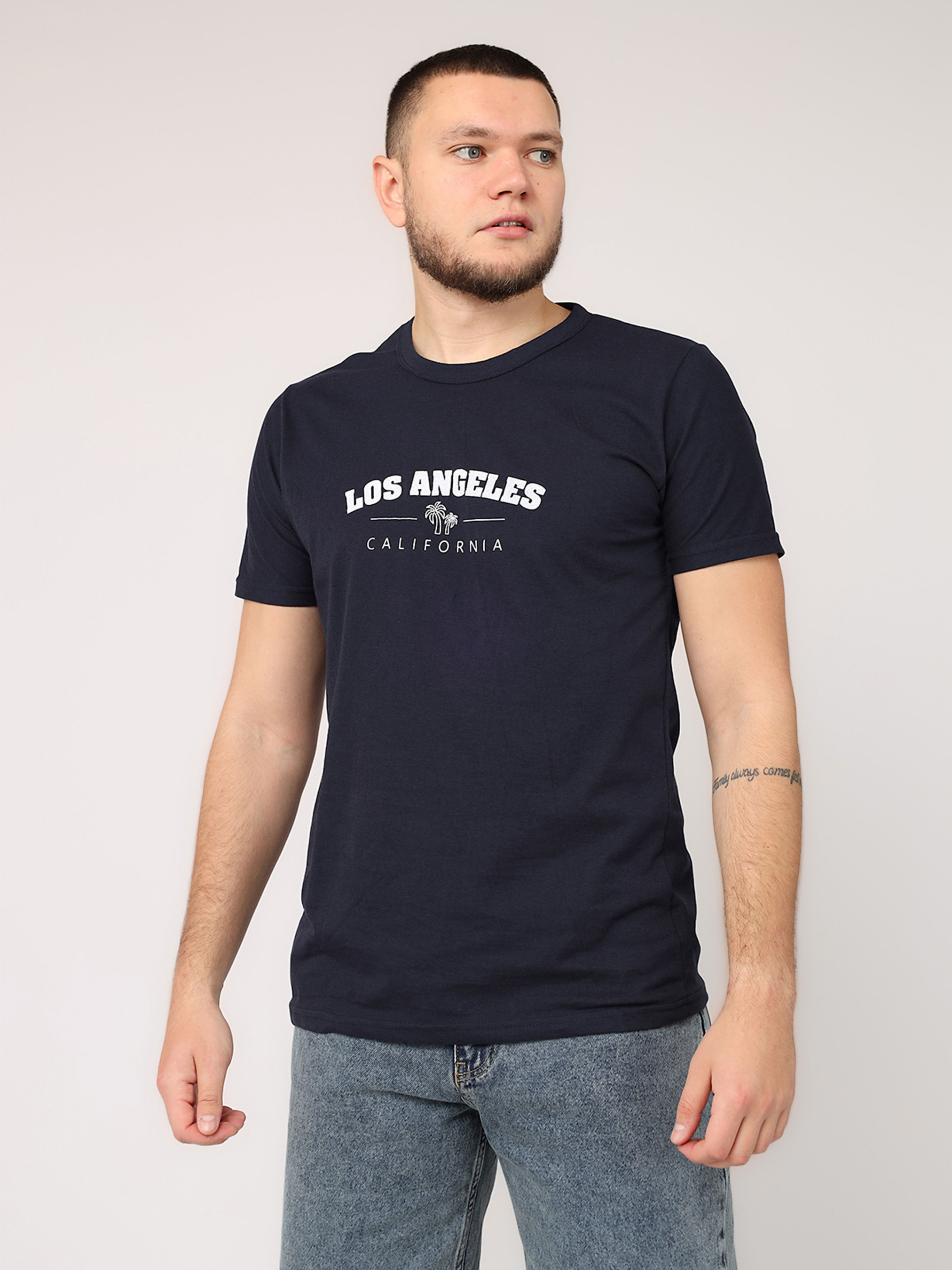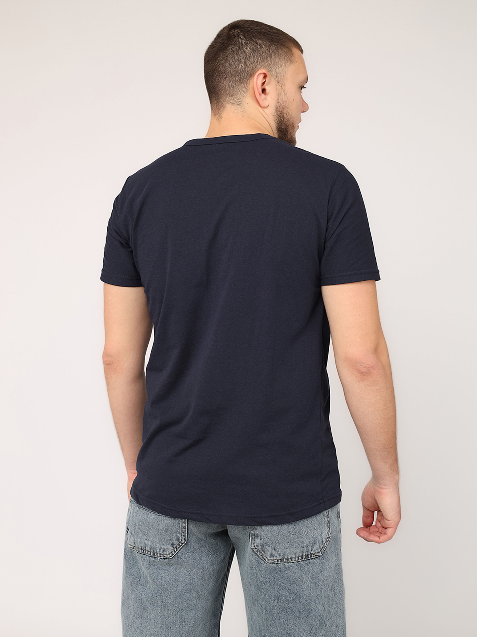 Футболка с коротким рукавом мужская - это универсальный элемент гардероба, который идеально подходит для повседневной носки. Ее простой, но стильный дизайн делает ее незаменимой для создания комфортных и непринужденных образов. Изготовленная из мягкой, приятной к телу ткани, она обеспечивает удобство в течение всего дня, будь то прогулка по городу, встреча с друзьями или отдых дома. Удобный крой подчеркивает мужественность силуэта, а короткие рукава добавляют легкости и свободы движений. Эта футболка легко сочетается с джинсами, шортами или спортивными штанами, позволяя создавать разнообразные образы на любой вкус. Она станет базовой вещью для тех, кто ценит практичность и стиль в повседневной жизни. Особенности изделия: Цвет: темно-синий, с декоративным принтом. Материал изготовления: трикотаж. Состав: 50 % хлопок, 50 % полиэстер. Крой: прямой. Длина футболки: средняя. Сезон: лето. Параметры модели: Рост: 185 сантиметров. Размер на модели: 50. Страна производитель: Турция.
