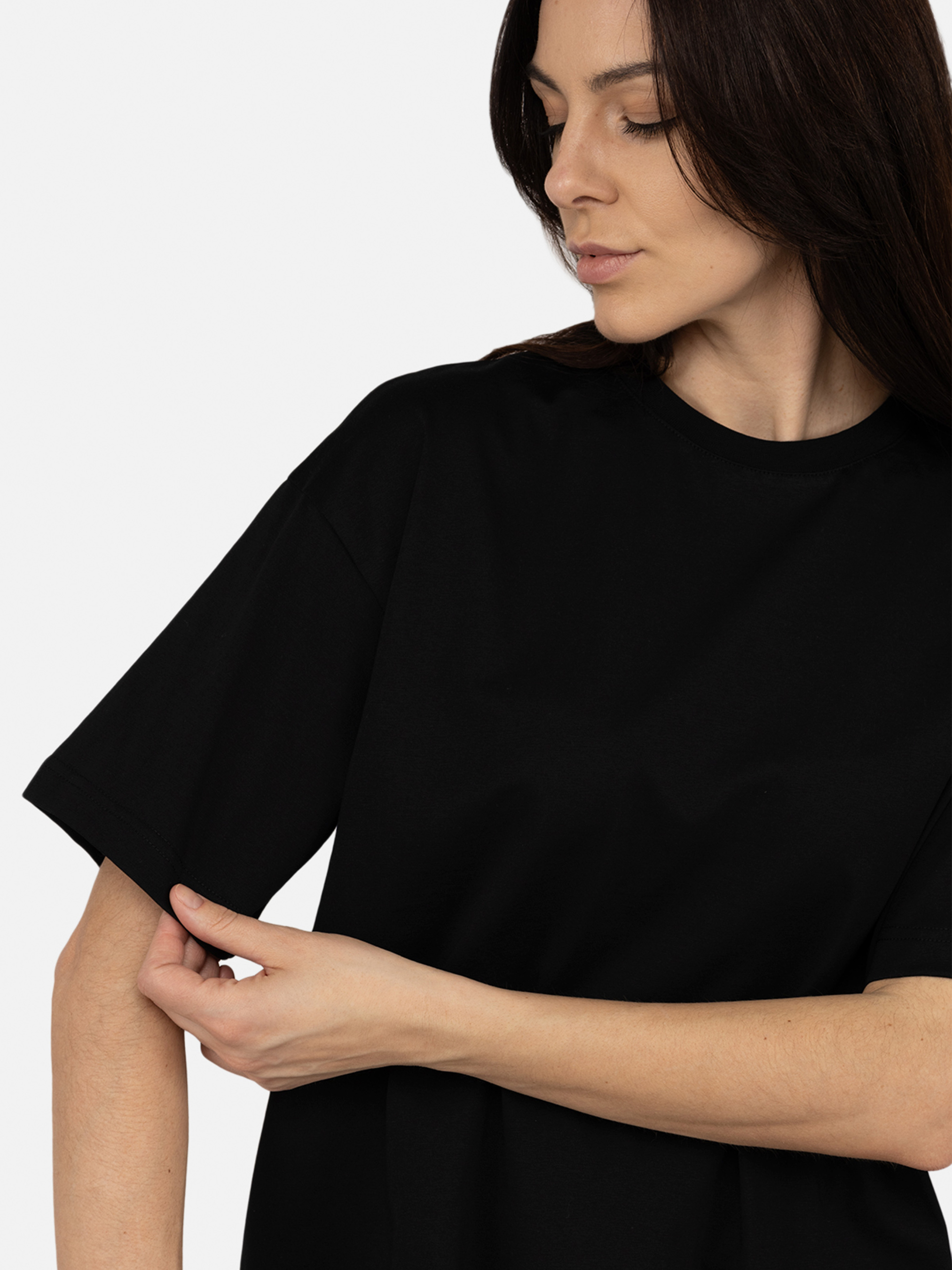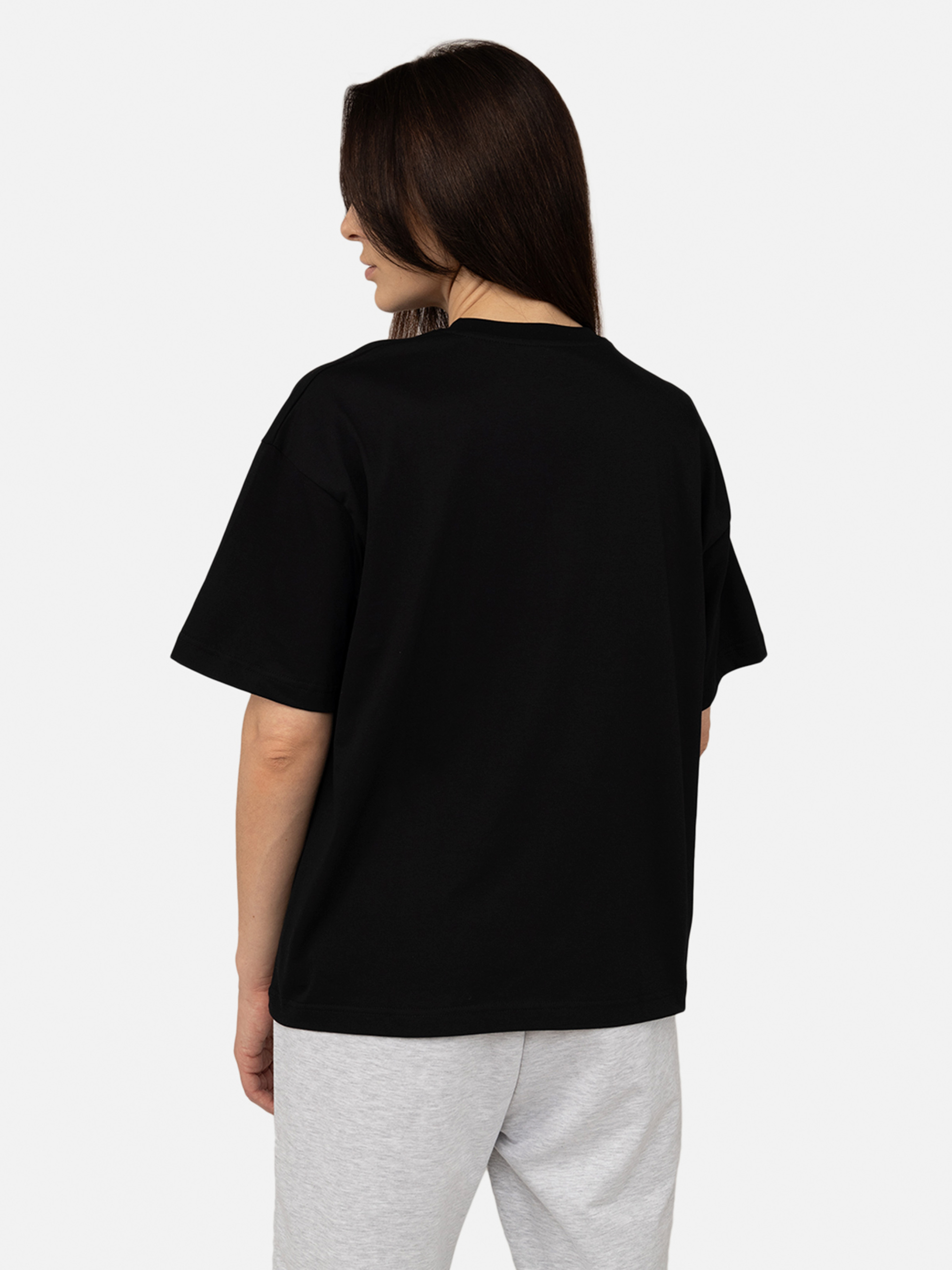 Футболка с коротким рукавом женская: стильный комфорт и современный вид. Женская футболка с коротким рукавом оверсайз кроя - это незаменимый элемент современного гардероба, сочетающий в себе комфорт, стиль и универсальность. Благодаря свободному крою, эта модель обеспечивает максимальное удобство и свободу движений, позволяя создавать трендовые и расслабленные образы. Она идеально подходит для разных типов фигуры, добавляя вашему стилю современного шарма и легкости. Футболка изготовлена из высококачественной ткани, такой как натуральный хлопок. Эта ткань гарантирует, что изделие остается приятным на ощупь, хорошо пропускает воздух и не вызывает дискомфорта даже в жаркие дни. Свободный силуэт обеспечивает хорошую терморегуляцию, что делает футболку идеальной для повседневной носки и активного образа жизни. Дизайн модели отличается простотой и минимализмом, что позволяет легко комбинировать ее с различными элементами гардероба. Футболка прекрасно смотрится как с классическими джинсами или шортами, так и с юбками, велосипедками или даже спортивными штанами. Свободный крой позволяет экспериментировать со стилями: ее можно носить навыпуск для создания расслабленного образа или заправить, чтобы подчеркнуть талию и добавить изящества. Короткие рукава и широкий вырез горловины обеспечивают комфортную посадку и добавляют легкости общему виду. Оверсайз крой выглядит трендово и дает возможность использовать футболку для создания многослойных образов. Например, вы можете сочетать ее с топами, майками или носить поверх рубашек для эффекта многослойности. Благодаря своей универсальности, эта футболка подходит для разных случаев: от прогулок и встреч с друзьями до путешествий или спортивных занятий. Женская футболка оверсайз кроя - это сочетание моды и функциональности. Ее можно носить летом как самостоятельный элемент гардероба или комбинировать с кардиганами или жакетами в прохладную погоду. Закажите эту футболку уже сейчас, и она станет вашим любимым выбором для стильного и комфортного вида каждый день! Особенности футболки: Цвет: черный, однотонный. Материал изготовления: трикотаж. Состав: 100 % хлопок. Крой: оверсайз. Футболка имеет короткие рукава. С классическим круглым вырезом горловины. Длина: средняя. Сезон: Всесезон. Параметры модели: Рост: 174 сантиметра. Размер на модели: 46. Страна производитель: Украина.