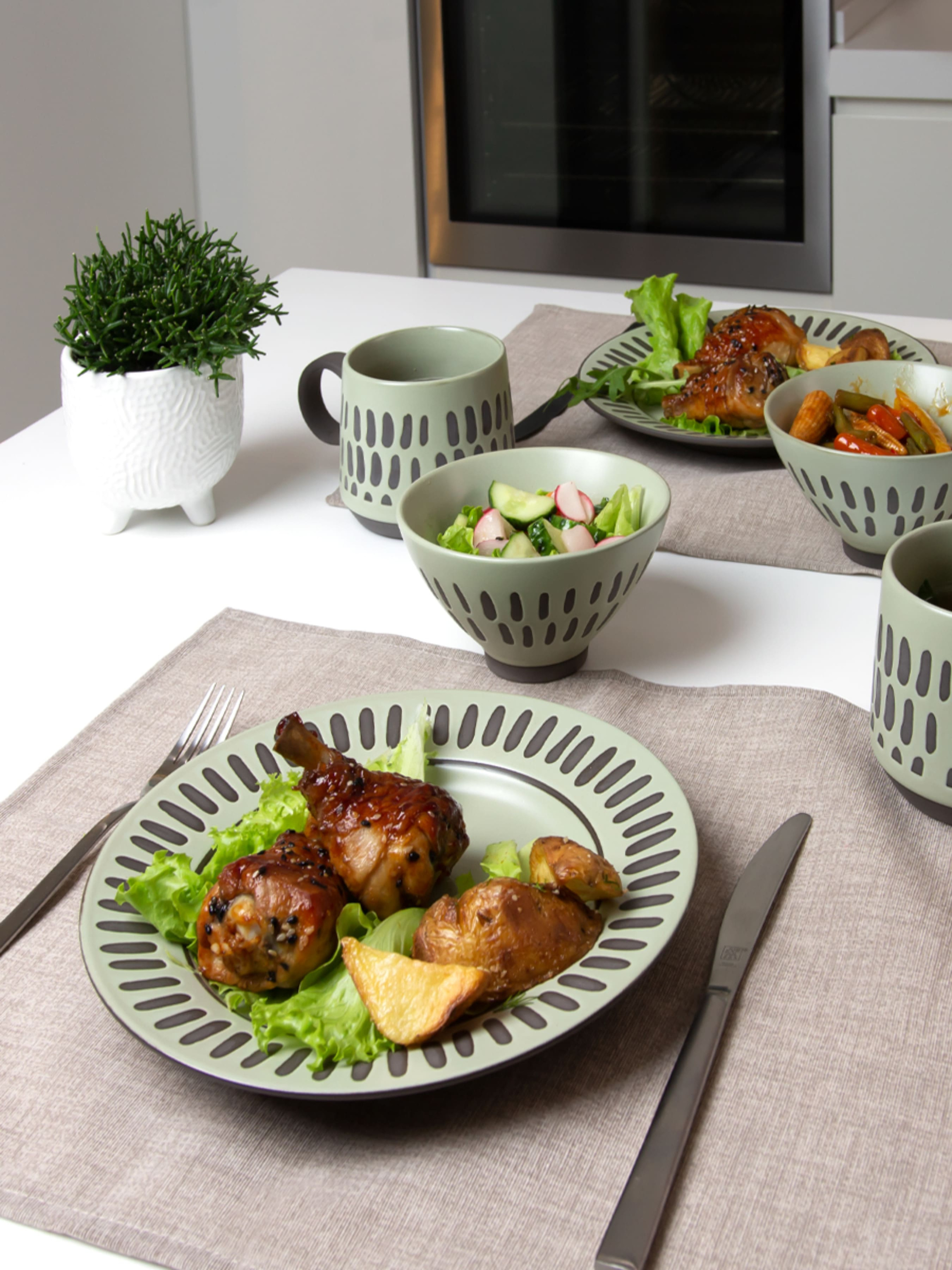 Тарелка обедняя ручной работы "Зеленое чудо" MBM HOME модель KP-40 OLIVE