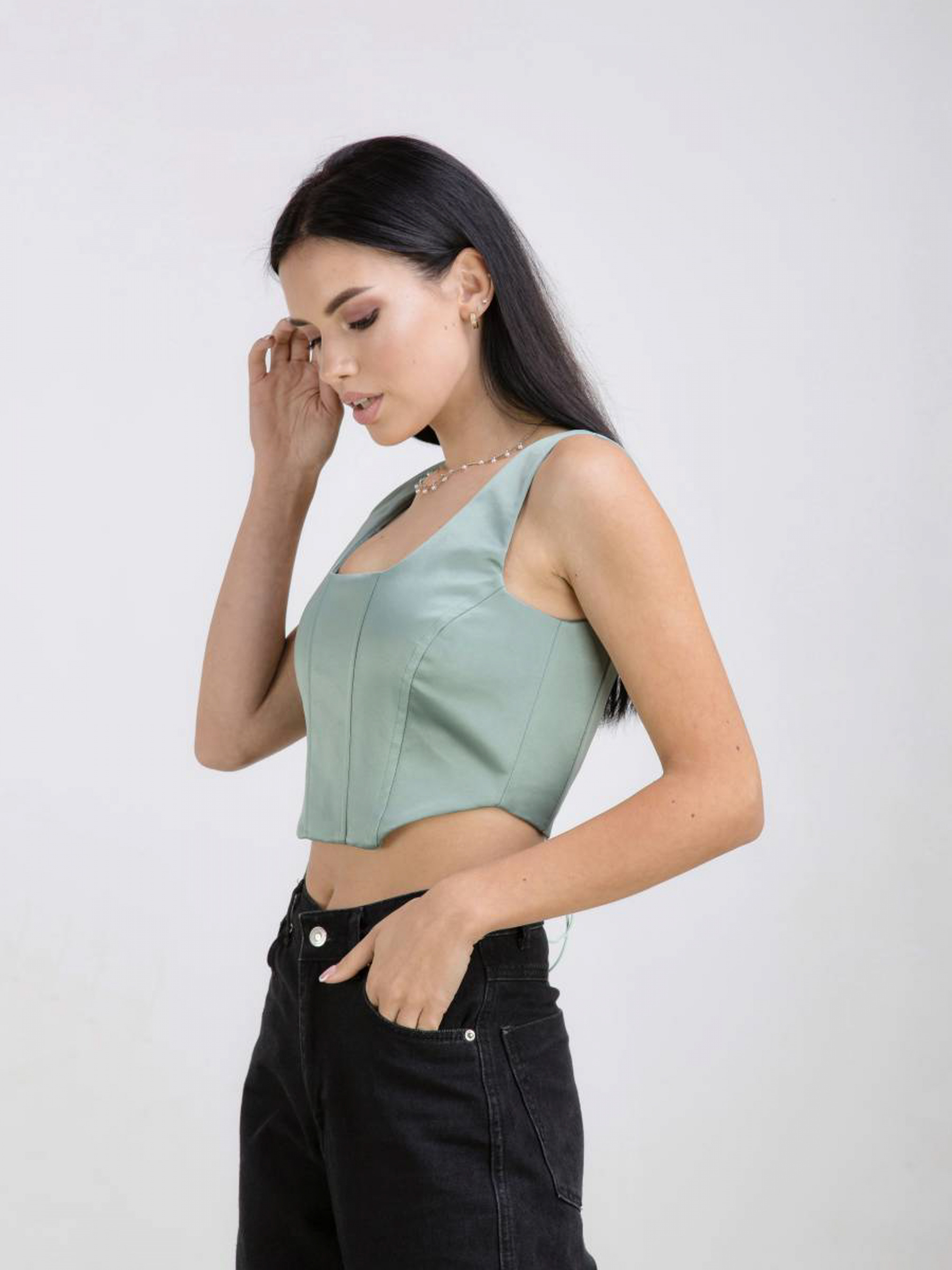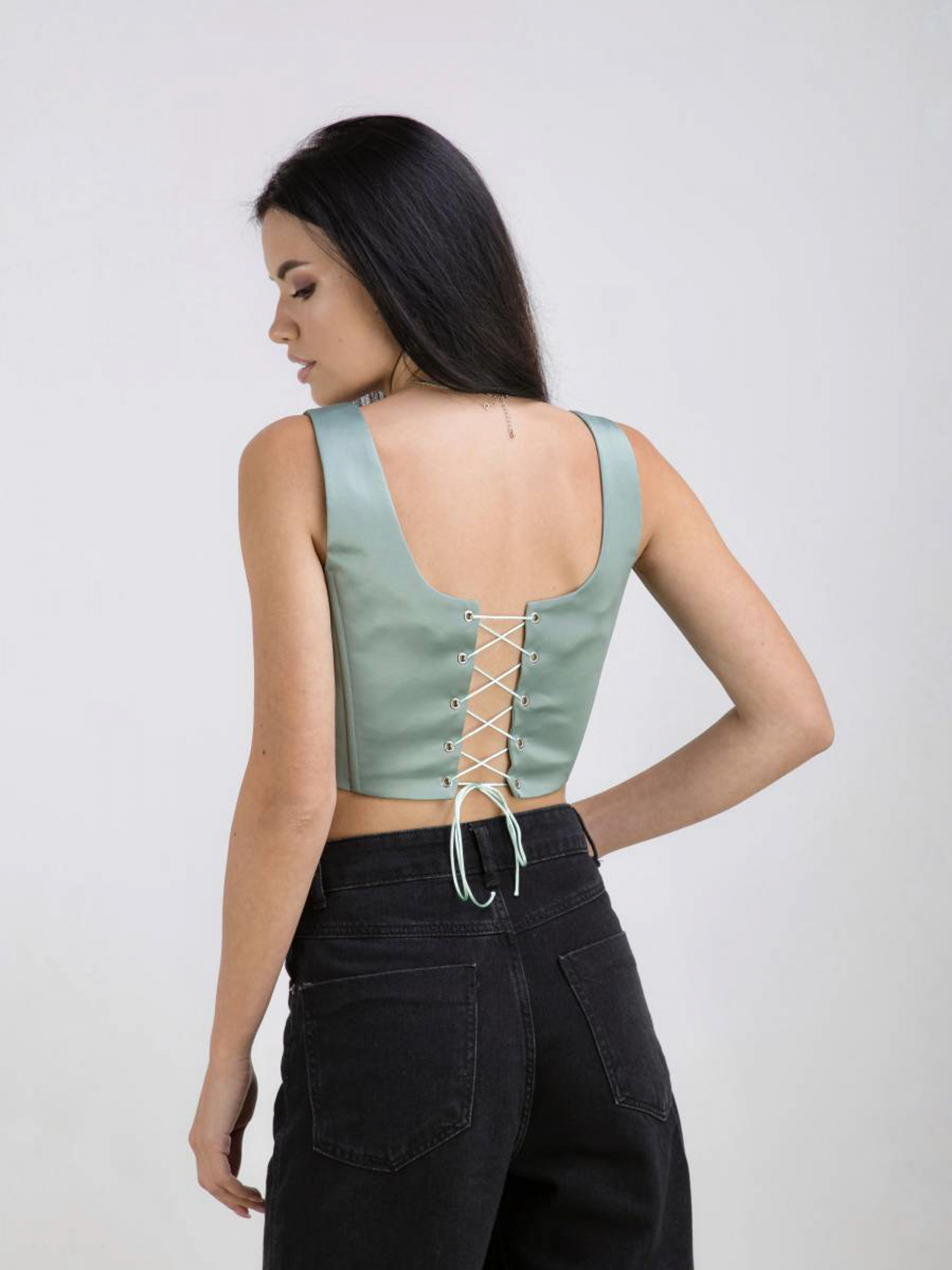 Топ-корсет в вечернем стиле. Имеет квадратный вырез и завязку сзади. Топ станет отличным дополнением лукам как с брюками, так и юбками. XS Длина по спине: 18 см Полуобхват груди: 38 см S Длина по спине: 18 см Полуобхват груди: 39 см M Длина по спине : 18 см Полуобхват груди: 40 см L Длина по спине: 18 см Полуобхват груди: 41 см