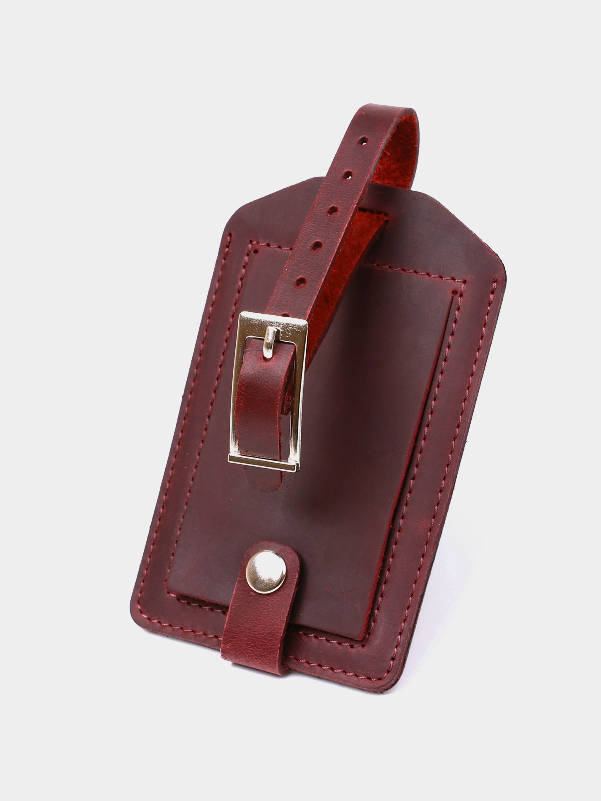 Материал: натуральная кожа. Цвет: бордовый. Размеры (ШхВхГ, см): 11,5х7 см. Страна производитель: Украина. Бренд: Shvigel. Описание: - регулируемый ремешок для крепления; - слот для информации закрывается откидным клапаном на кнопке. Добротная бирка на чемодан в практичном дизайне от украинского производителя. Материал изготовления - натуральная кожа высокого качества и сопротивляемости к износу. Цвет аксессуара - бордовый, фактура - матовая гладкая и очень приятная на ощупь. Крепится бирка с помощью регулируемого ремешка, информационный слот закрывается клапаном с кнопкой, что очень удобно и практично.