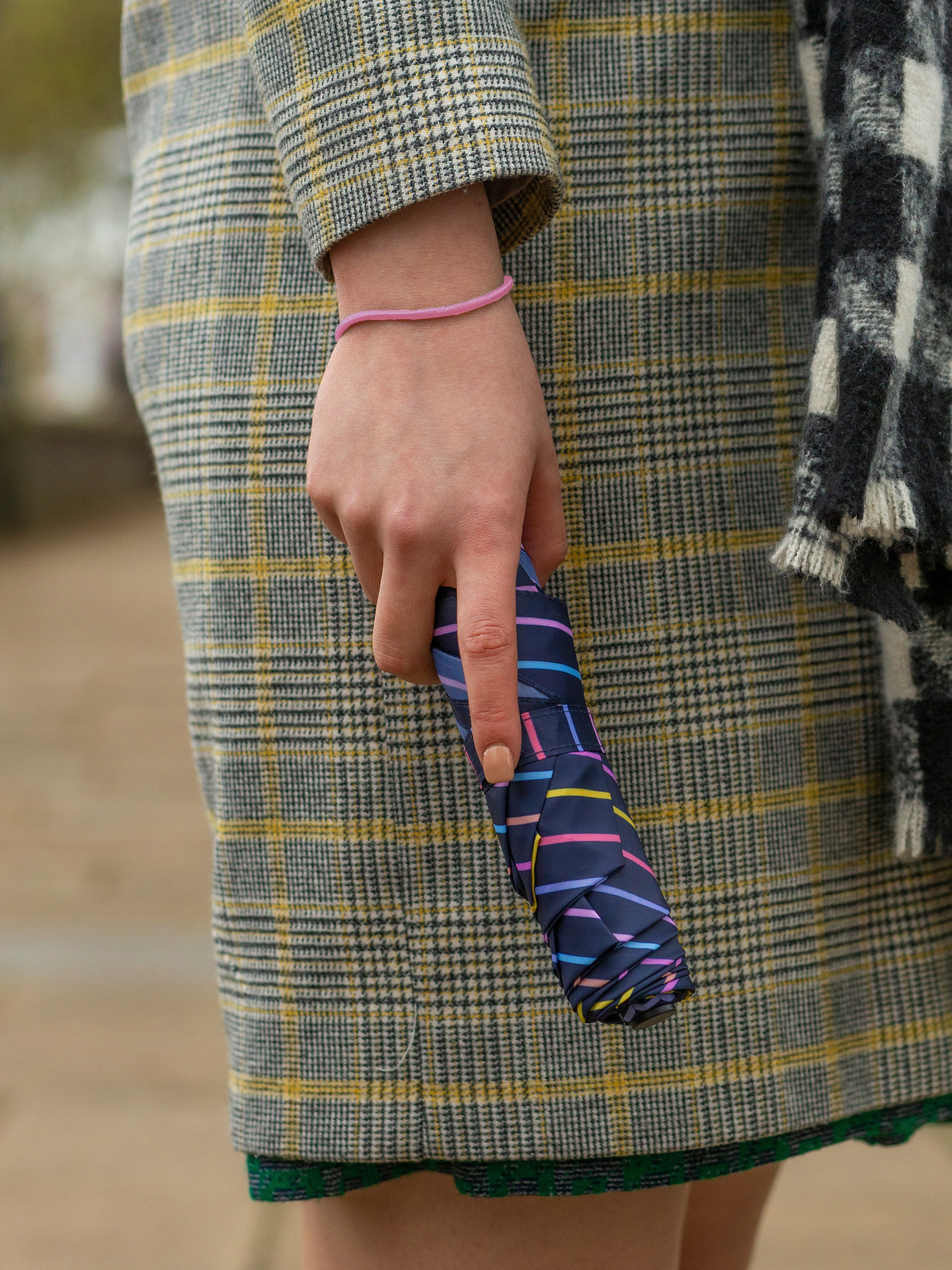 Суперлегкий зонтик Fulton Superslim-2 Rainbow Pinstripes L553 черного цвета в разноцветные полосы, подарит романтичное настроение во время хмурых дождливых дней. Вес и компактность этой модели позволяют его с легкостью носить в маленькой сумочке, кармане или даже клатче. Алюминиевый каркас и спицы из фибергласса на сегодняшний день являются флагманами в производстве самых практичных зонтов. Каркас зонта сделан из алюминия в сочетании с фиберглассом, благодаря чему спицы гибкие, это придает зонту ветроустойчивость. Вес этого зонтика составляет всего 158 грамм, а размеры в сложенном виде – 22х4х4 см. Механизм зонта: механика. Открытие и закрытие осуществляется вручную. Чтобы открыть зонт, потяните его бегунок вверх до полного открытия купола (вы услышите характерный щелчок). Для закрытия просто нажмите на фиксатор на стержне, аккуратно потяните бегунок вниз по направлению к ручке. Система 'Антиветер' не даст сломаться Вашему зонту, даже если его ветер вывернул наизнанку. Небольшие пружинки или гибкие элементы в спицах предотвращают поломку каркаса. При порывах ветра такие спицы будут только гнуться, но не ломаться. Если купол вывернулся наружу, важно не дергать за спицы в попытках вернуть их в первоначальное положение. Достаточно сложить зонт обычным способом.