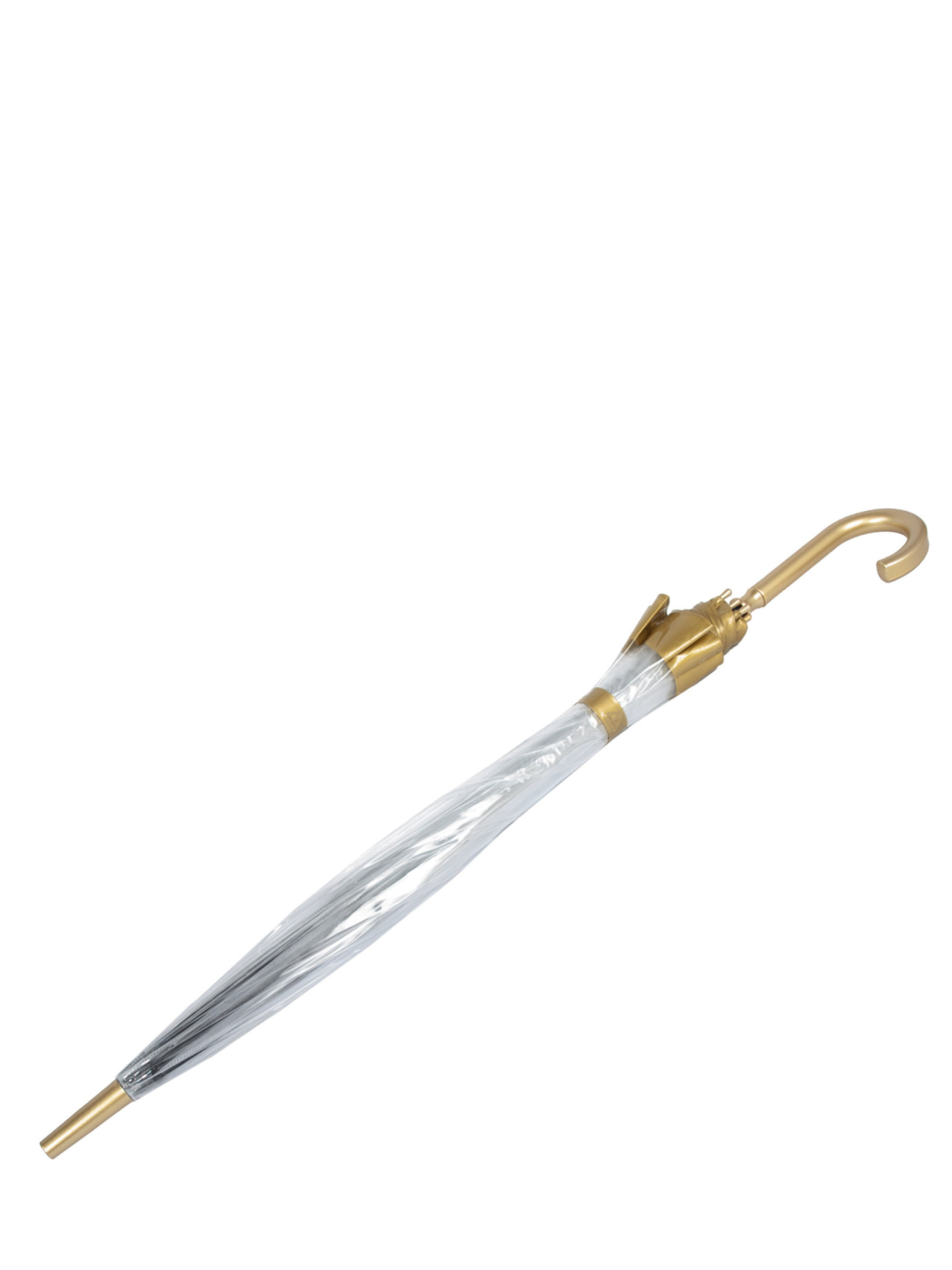 Трость Fulton Birdcage-1 L041 Gold - по истине золотая новинка от английского бренда Фултон. Отлично сочетается с повседневным и выходным стилем, подчеркивая вашу оригинальность и любовь к качественным аксессуарам. Данная модель - точная копия любимой модели аксессуара королевы Великобритании, разработанной Фултоном по заказу королевской семьи. Прозрачный купол из полихлорвинила с розовыми вставками диаметром 84 см имеет оригинальную конструкцию birdcage и обеспечивает надежную защиту от непогоды, полностью скрывая свою владелицу от дождя и ветра. Зонт открывается и закрывается вручную (механика). Все элементы конструкции модели обладают высокой прочностью: стальной стержень, спицы из фибергласса, практичная пластиковая ручка. С таким зонтом вы всегда будете в центре внимания, вызывая восхищенные взгляды прохожих. Приобретая прозрачные зонты Fulton, следует помнить об их особенностях: На купол зонта наносится тальк, который помогает избежать склеивания лепестков зонта во время длительного хранения. Поэтому не следует поспешно удалять его, если вы не собираетесь воспользоваться зонтом в ближайшее время. Расправляйте купол руками перед первым использованием зонта после длительного хранения. Характерный запах полиэтилена только что приобретенного зонта выветривается уже после пары прогулок под дождем.