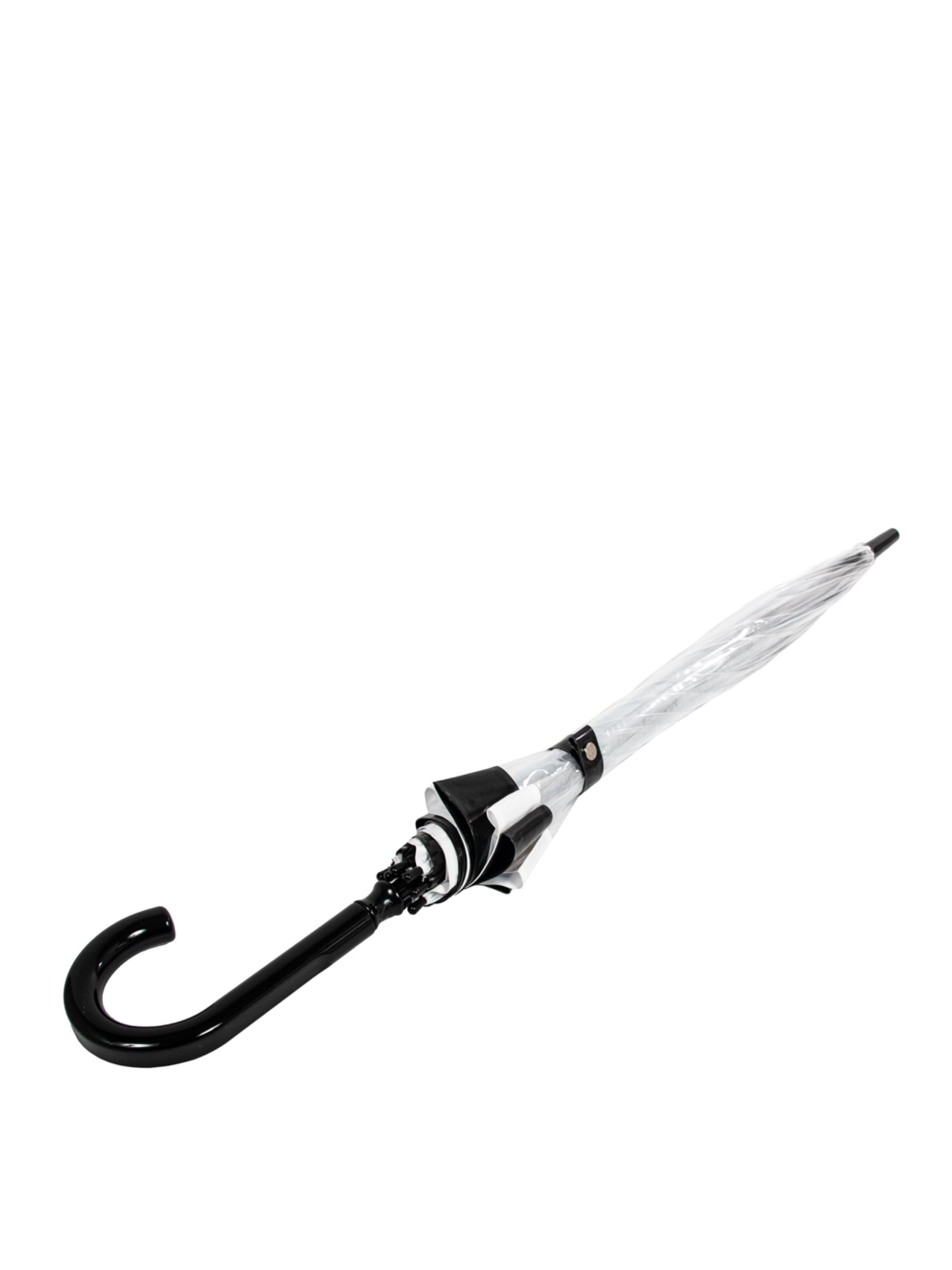 Прозрачная тросточка со стильными черно-белыми вставками Fulton Birdcage-1 L041 Black White - знаменитая модель зонта, который был спроектирован специально для королевы Великобритании и других членов британской королевской семьи. Все элементы аксессуара, начиная от его дизайна и заканчивая отдельных частей конструкции, отвечают максимально высоким требованиям. Трость с куполом диаметром 84 см из полихлорвинила полностью скрывает свою хозяйку от проливного дождя. А сквозь прозрачный купол здорово наблюдать за стекающими каплями, при этом чувствуя себя в полной безопасности. Тип механизма зонта - механика, предполагающий ручное открытие и закрытие. Стержень модели выполнен из стали, что в дополнении со спицами из фибергласса обеспечивают высокую прочность и ветроустойчивость. Шикарный прозрачный зонт будет лучшим дополнением романтического образа и будет выгодно выделять вас из толпы, подчеркивая вашу оригинальность и отменный вкус в выборе аксессуаров. Приобретая прозрачные зонты Fulton, следует помнить об их особенностях: На купол зонта наносится тальк, который помогает избежать склеивания лепестков зонта во время длительного хранения. Поэтому не следует поспешно удалять его, если вы не собираетесь воспользоваться зонтом в ближайшее время. Расправляйте купол руками перед первым использованием зонта после длительного хранения. Характерный запах полиэтилена только что приобретенного зонта выветривается уже после пары прогулок под дождем.