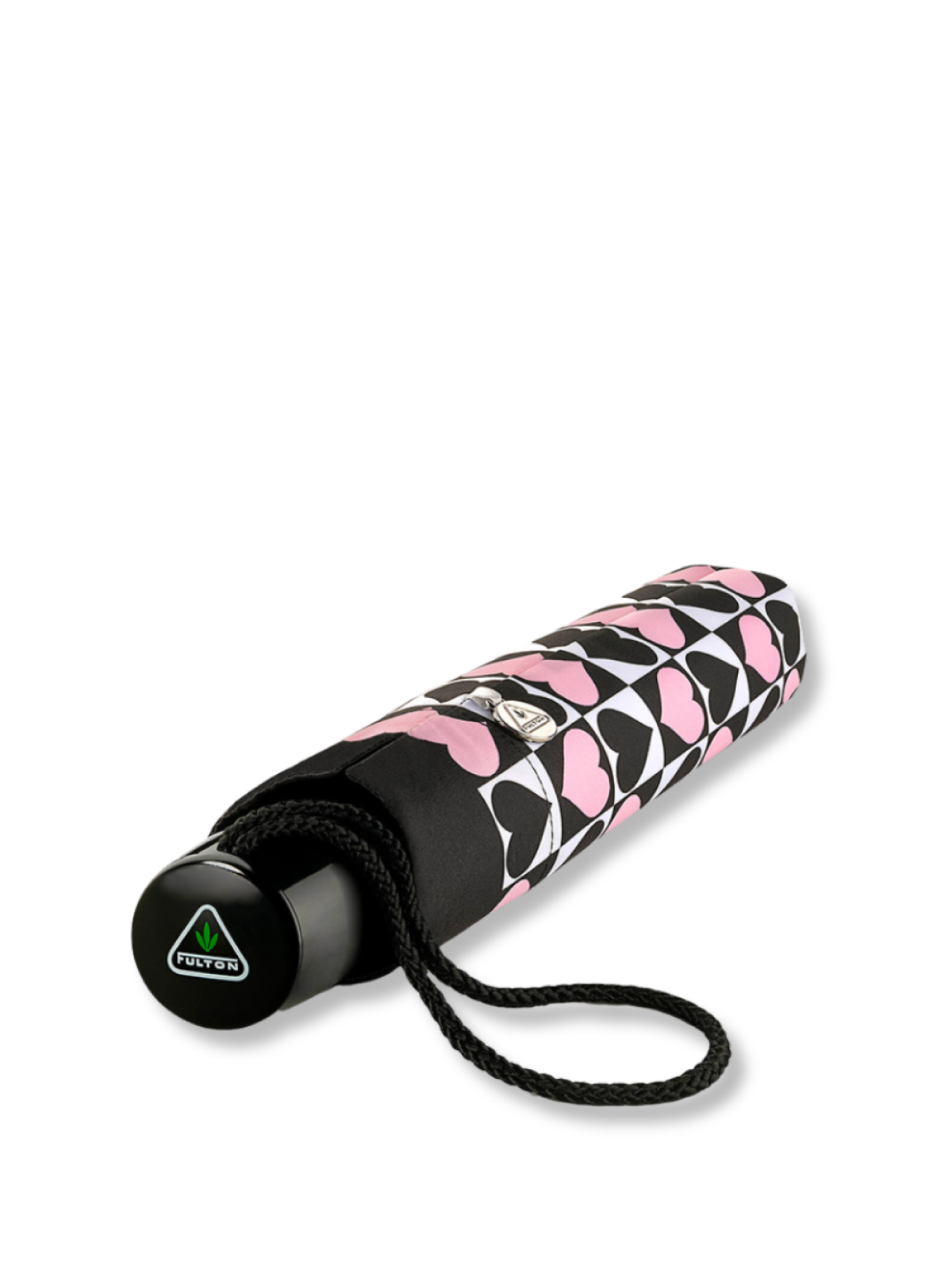 Женский зонт Fulton L354 Minilite-2 Harlequin Heart (Сердце Арлекина) — это легкий и компактный аксессуар, декорированный черно-белыми и розовыми сердцами на белом куполе. Купол выполнен из высококачественного полиэстера, который быстро сохнет и не теряет цвета. Зонт оснащен запатентованным защитным бегунком, предотвращающим травмы. Каркас из алюминия в сочетании с фиберглассовыми спицами обеспечивает легкость и ветроустойчивость этой модели, а также делает ее устойчивой к ржавчине. Надежная механическая конструкция и удобная каучуковая ручка гарантируют комфортное использование. Этот стильный зонт прекрасно дополнит любой наряд и станет надежным защитником от непогоды. Большой купол диаметром 96 см полностью укрывает голову и плечи, обеспечивая отличную защиту. При этом его вес составляет всего 238 граммов, что делает его невероятно легким. Открытие и закрытие осуществляется вручную: просто потяните бегунок вверх для открытия, а для закрытия нажмите на фиксатор на стержне и аккуратно потяните бегунок вниз к ручке.
