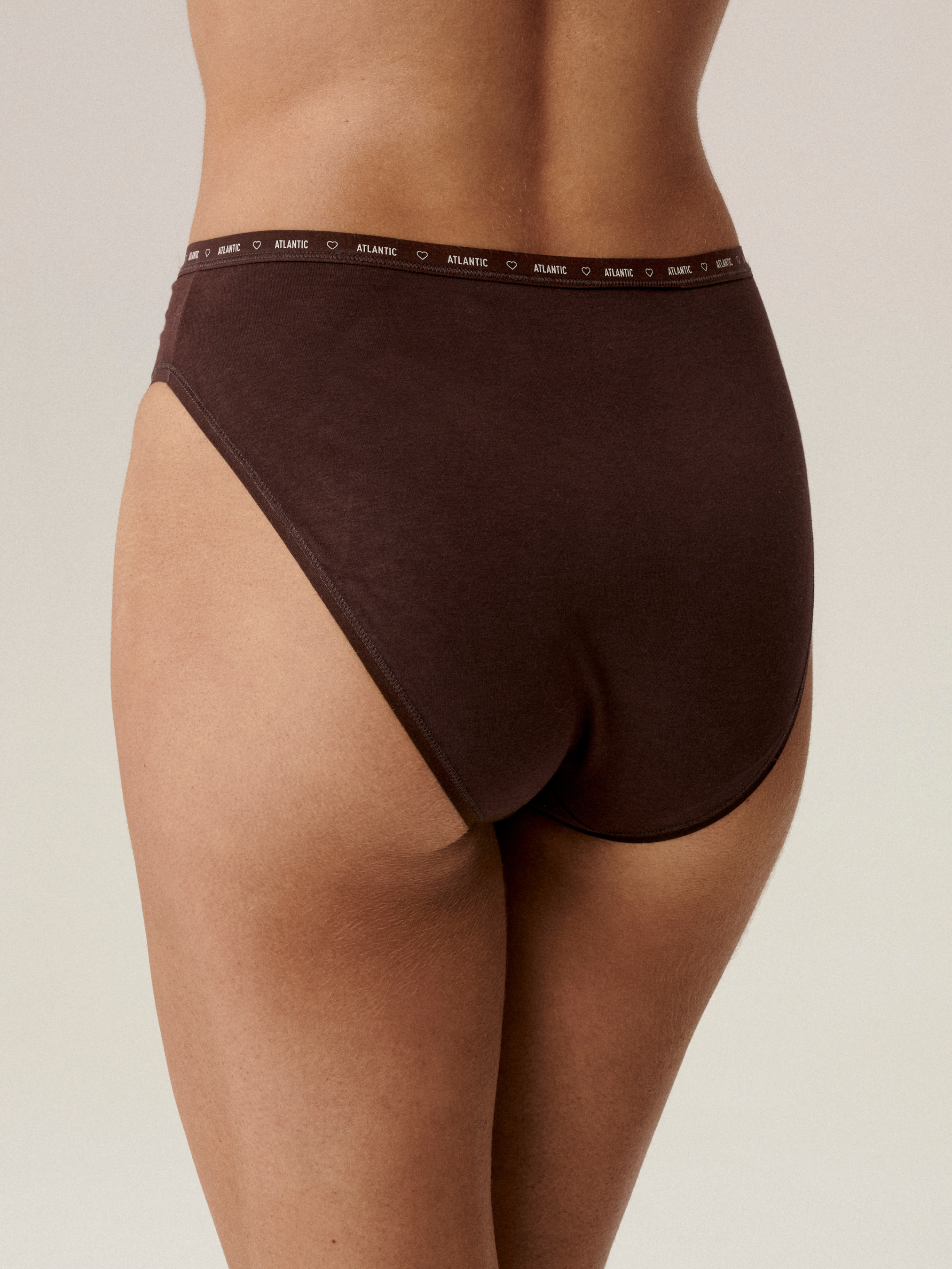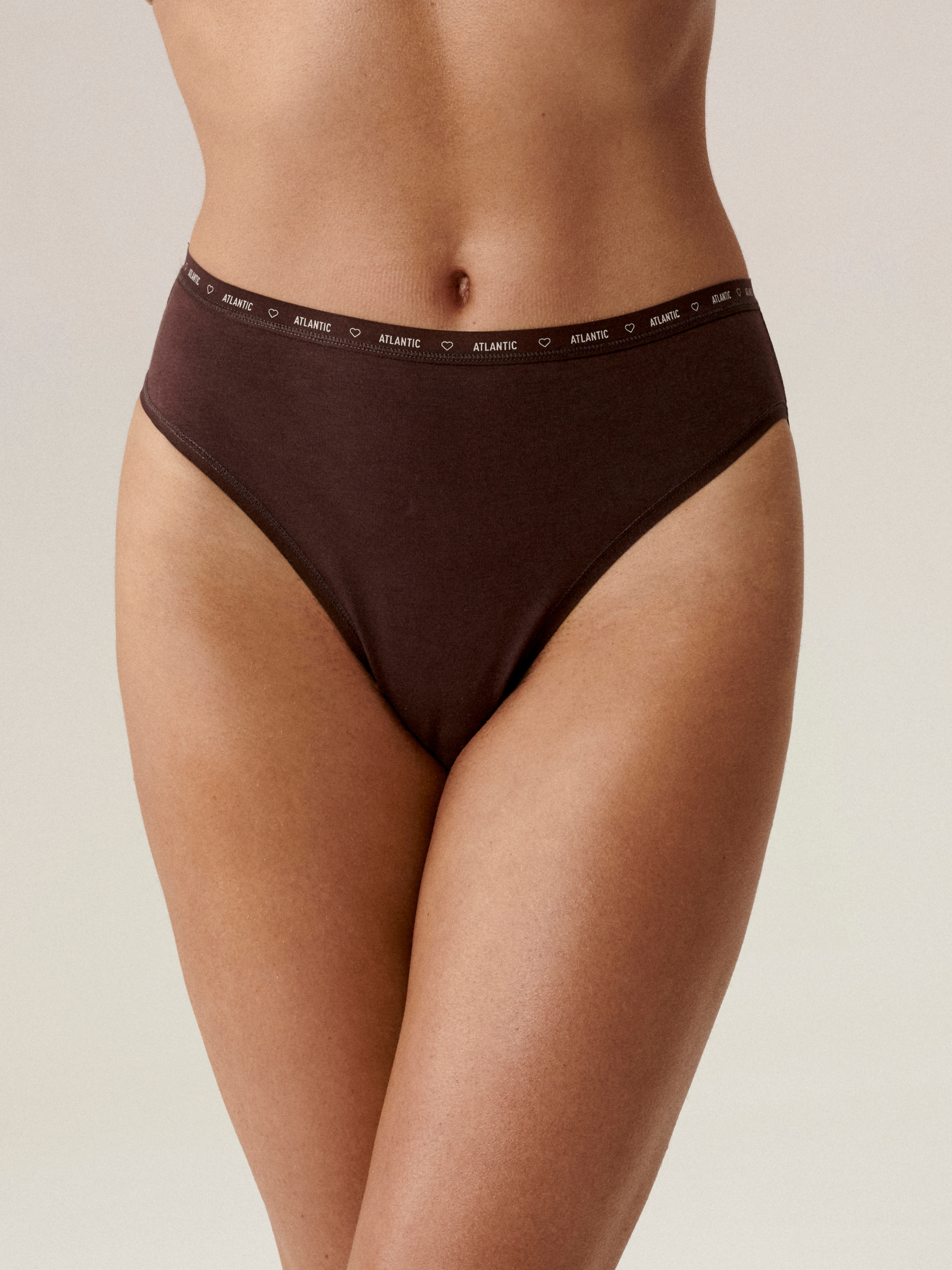 Трусы с высокой посадкой, мягкой плоской резинкой с надписью Atlantic и достаточно глубокими боковыми вырезами. Женские трусы High Leg идеально подчеркивают фигуру благодаря высокому вырезу, который визуально удлиняет ноги и создает комфорт на весь день. Трусы изготовлены из мягкого трикотажа, который представляет собой сочетание мягкого и очень приятного на ощупь хлопка с эластаном. Трикотаж прекрасно адаптируется к фигуре, приятен к коже и благодаря своей воздухопроницаемости не вызывает дискомфорта во время ношения. Подробности: Состав: 95% хлопок, 5% эластан Мягкий и приятный на ощупь материал Завышенная талия и боковые вырезы Облегающий крой В наборе 3 пары трусиков